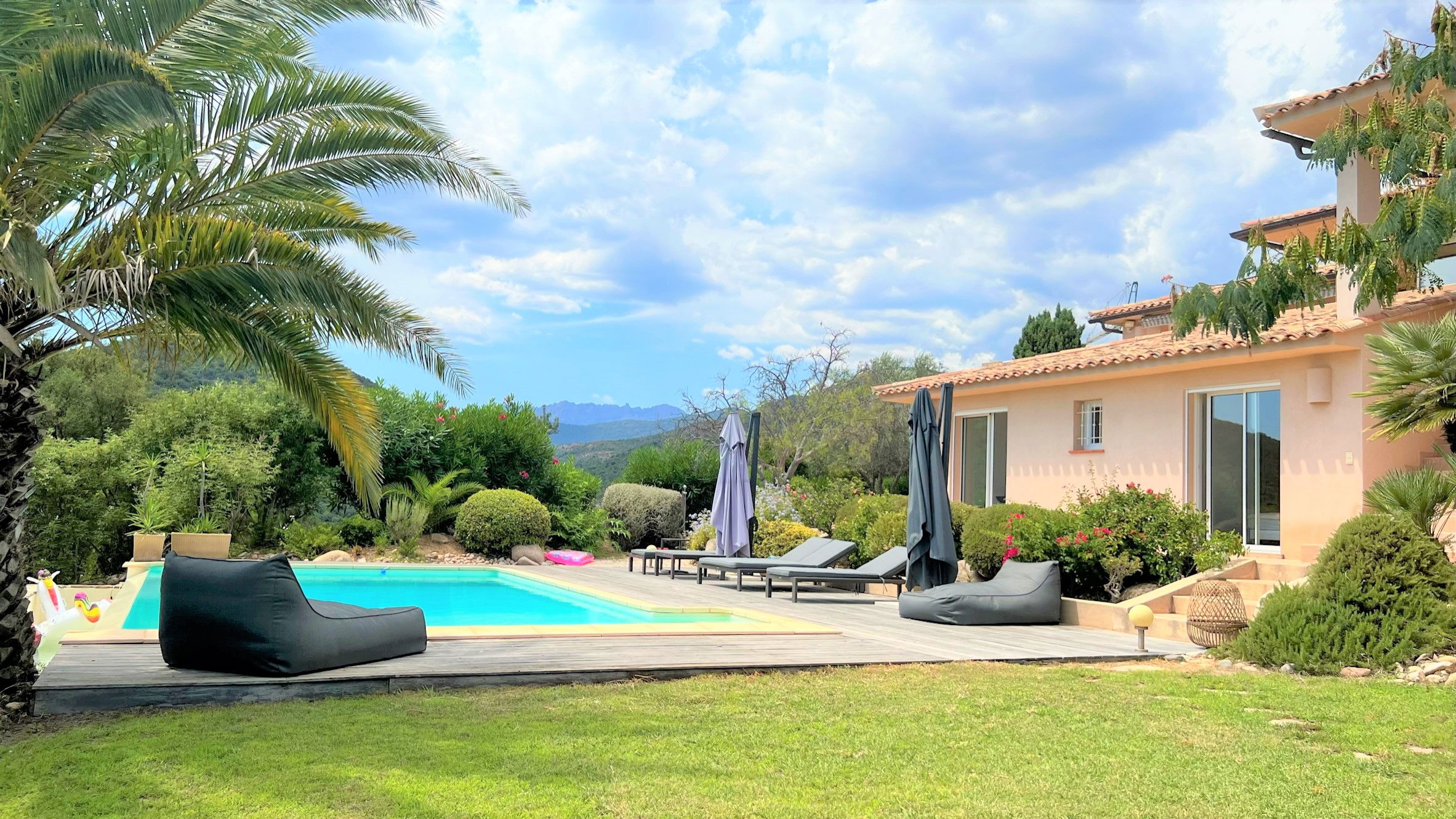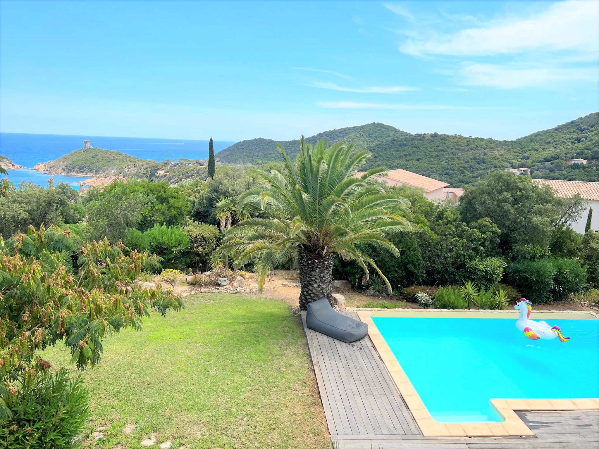 Beautiful sea view villa with 4 bedrooms and a very nice outdoor area with a swimming pool and view of the Genoese tower of Fautea. Beach access on foot in 5 minutes via stairs.