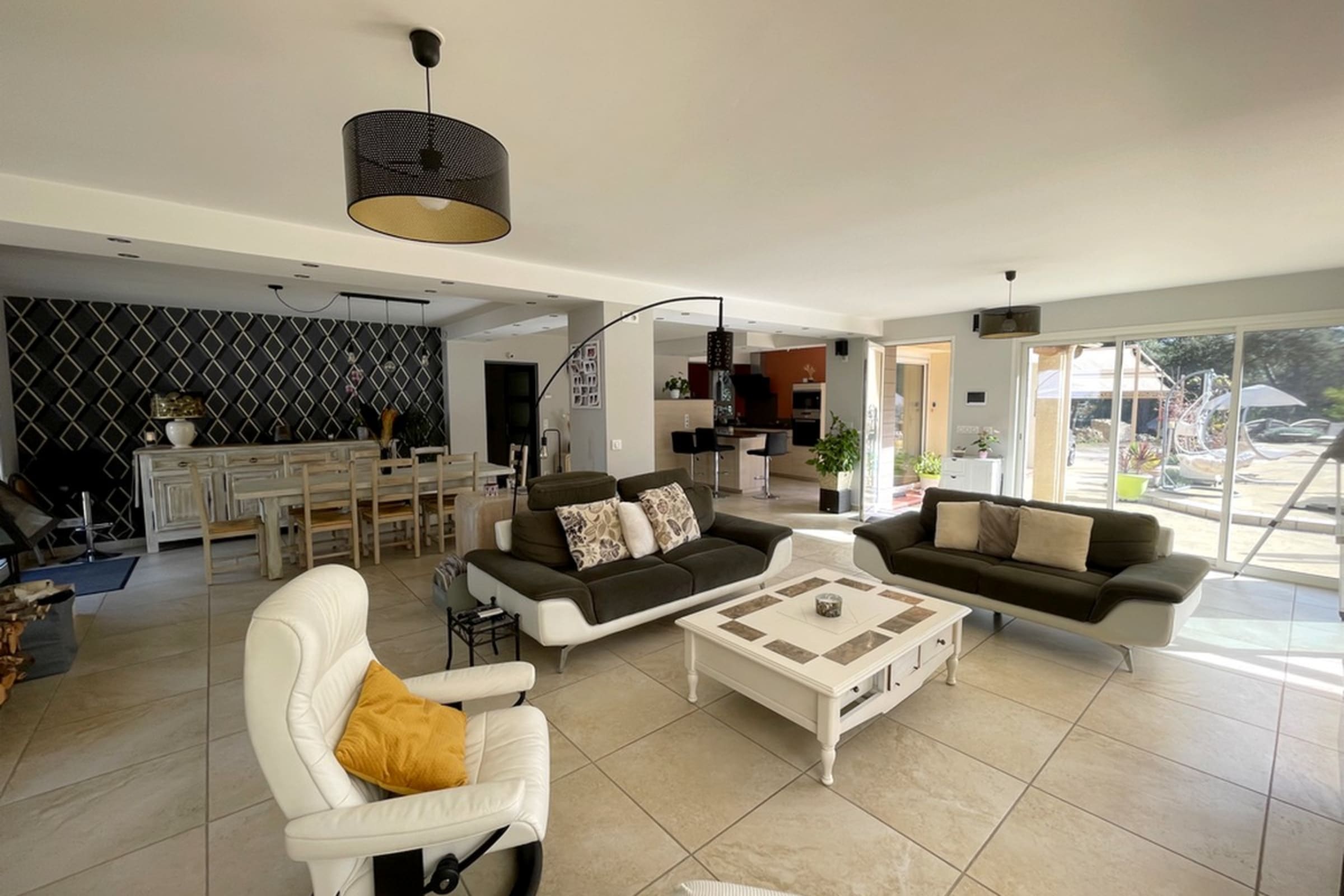 * Beautiful living room with fully equipped and fitted open kitchen. Comfortable living room and bright dining room opening onto the magnificent shaded terrace.