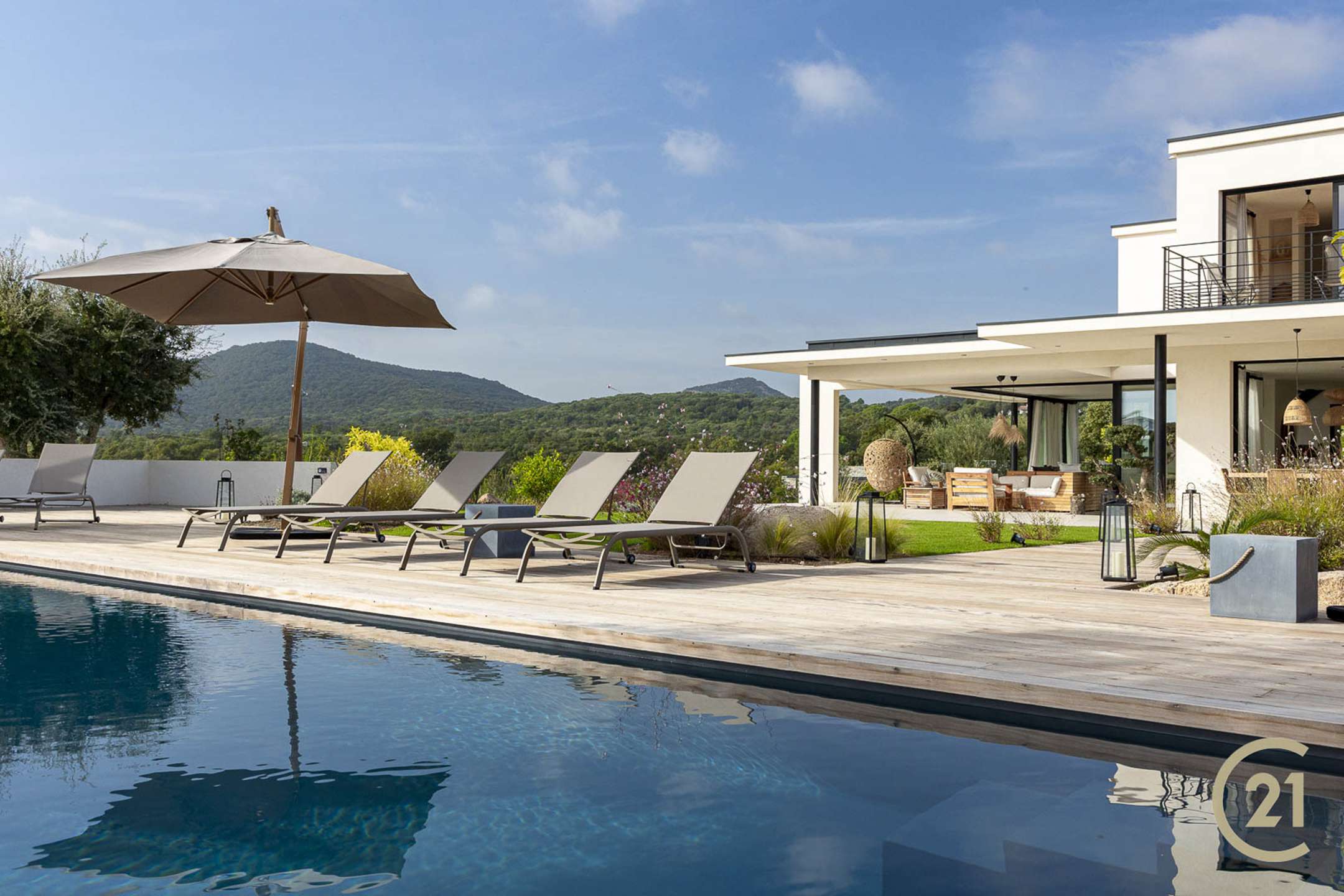 The luxury villa has a very spacious living area, a large garden, a beautiful swimming pool overlooking the sea and a petanque court. It is a new build, situated just a few kilometres from Porto Vecchio.
