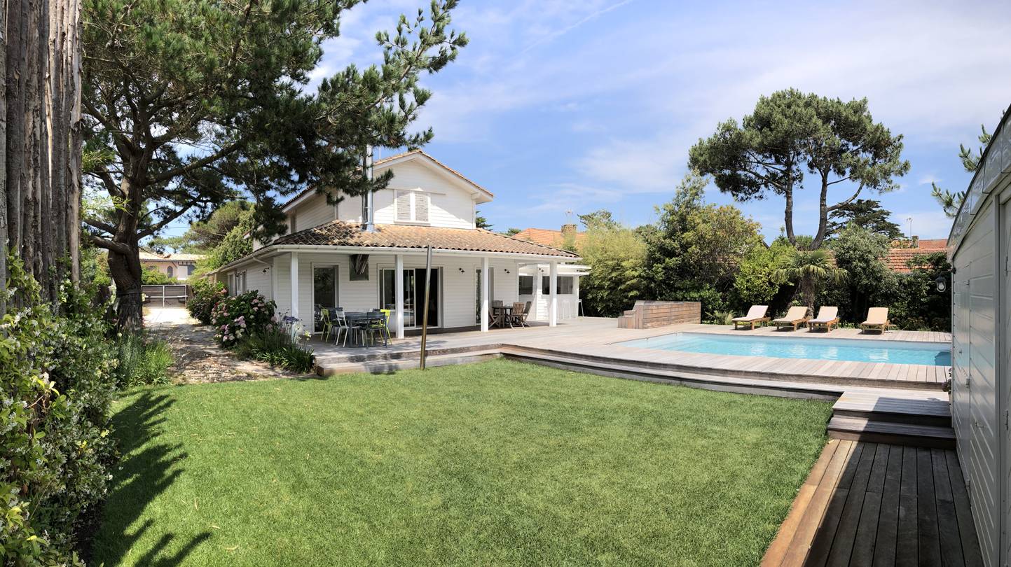 This magnificent villa in the center of Cap-Ferret with heated swimming pool and large sunny south-facing terrace surrounded by a landscaped and enclosed garden.