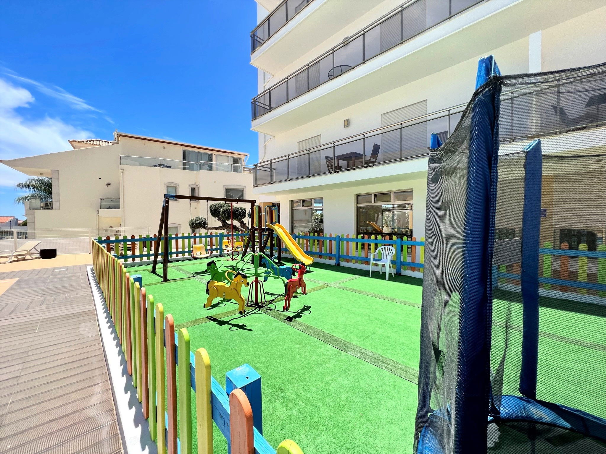 This cozy 1-bedroom accommodation is perfect for those seeking comfort and fun in a tranquil environment. The room is well-decorated, providing an intimate and comfortable space to rest. The private terrace offers an ideal outdoor area to relax or enjoy meals, while the nearby children's zone ensures safe fun for kids. The swimming pool is another great attraction, offering a refreshing spot for the whole family to enjoy or relax. Combining convenience, leisure, and a family-friendly atmosphere, this accommodation is perfect for those wanting a laid-back and pleasant stay.