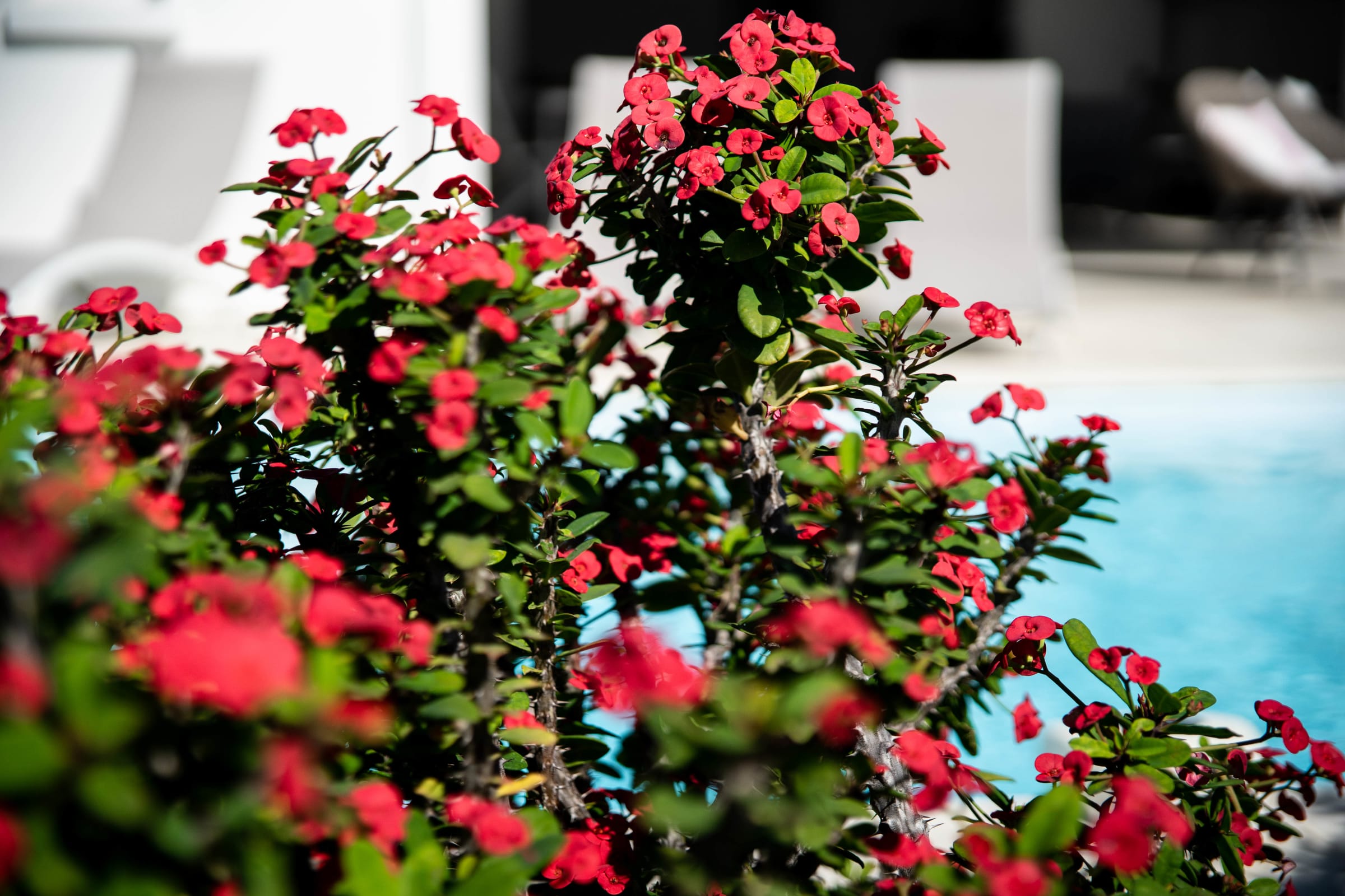 Close to the beach and shops. Large garden with trees surrounding the pool.