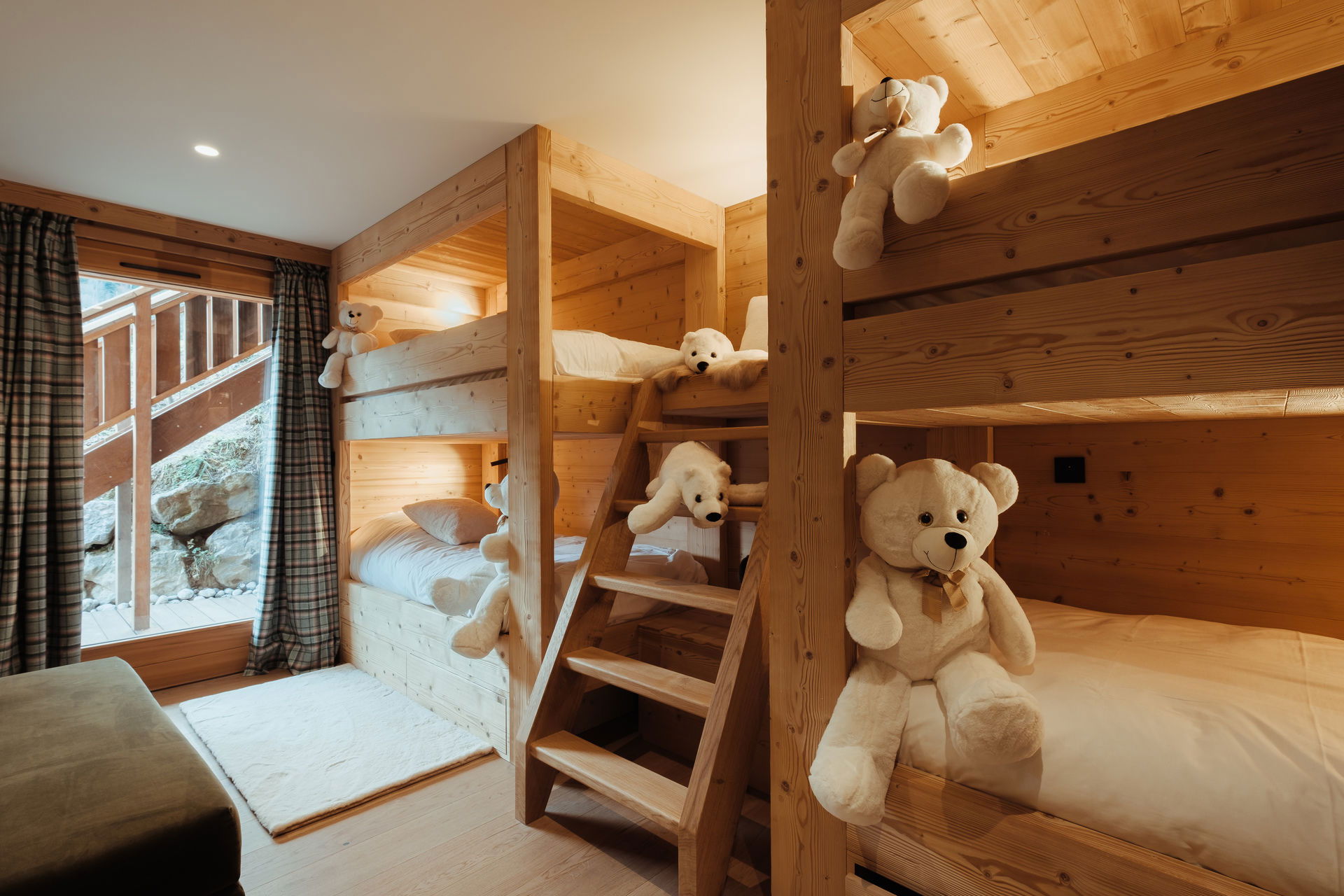 - BEDROOM (10.44 m²) : 2X2 BUNK BEDS (90) -> upper bed forbidden under 6 years old, south french window, mountains / next door chalets view