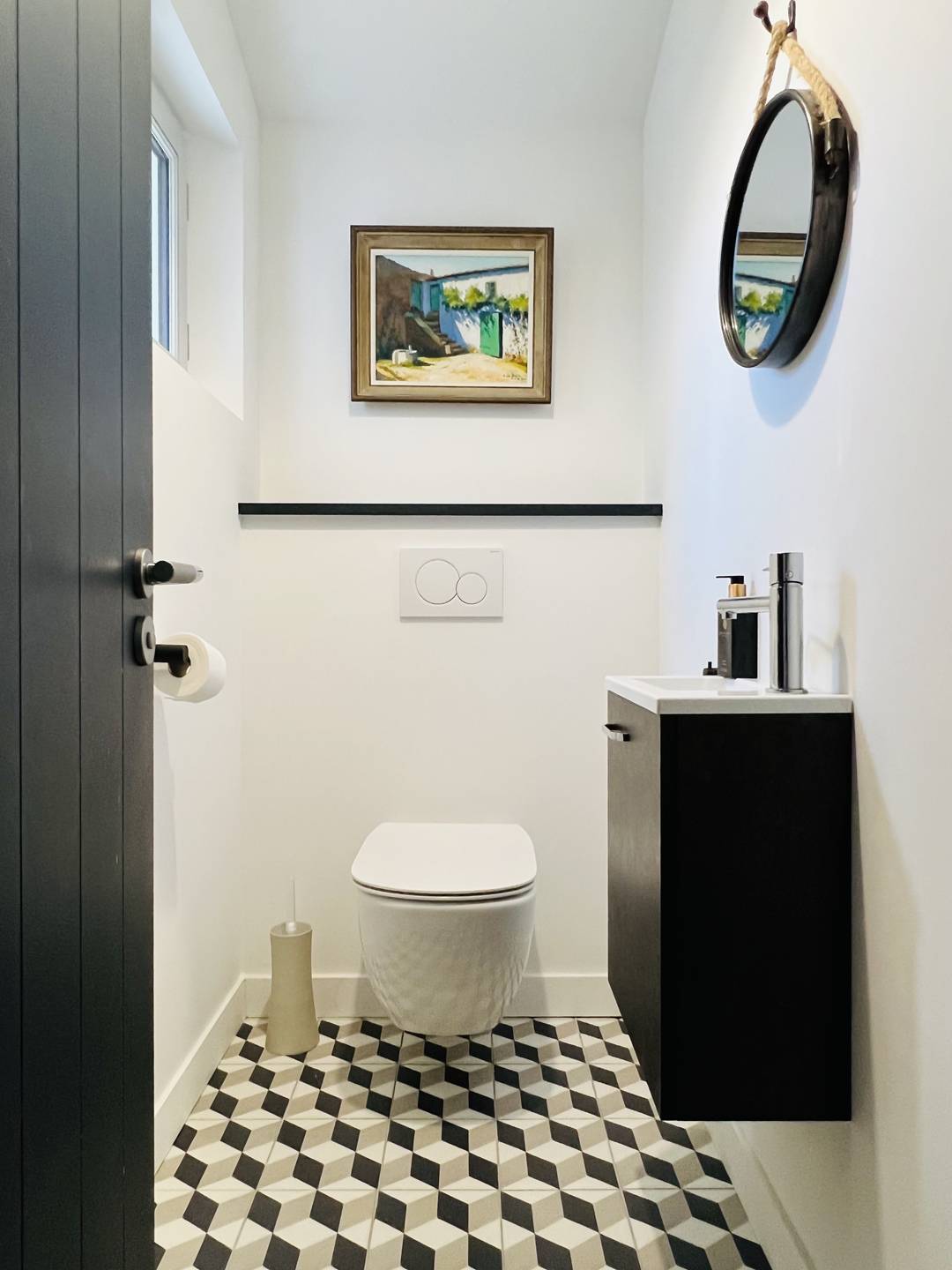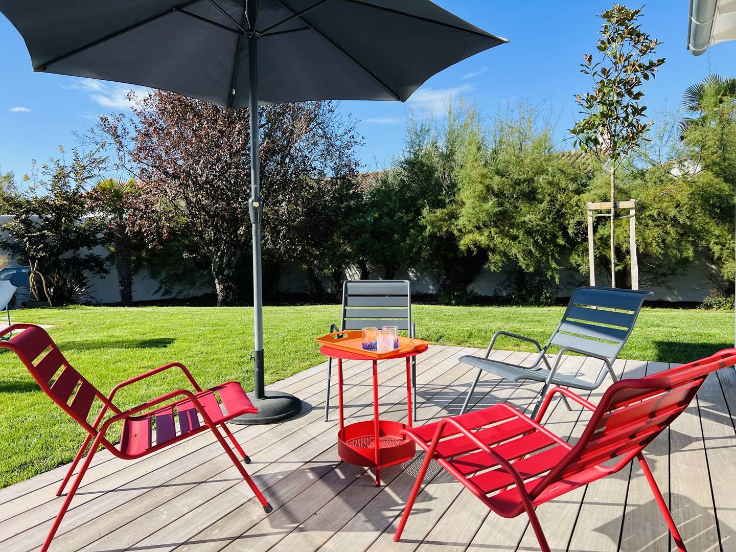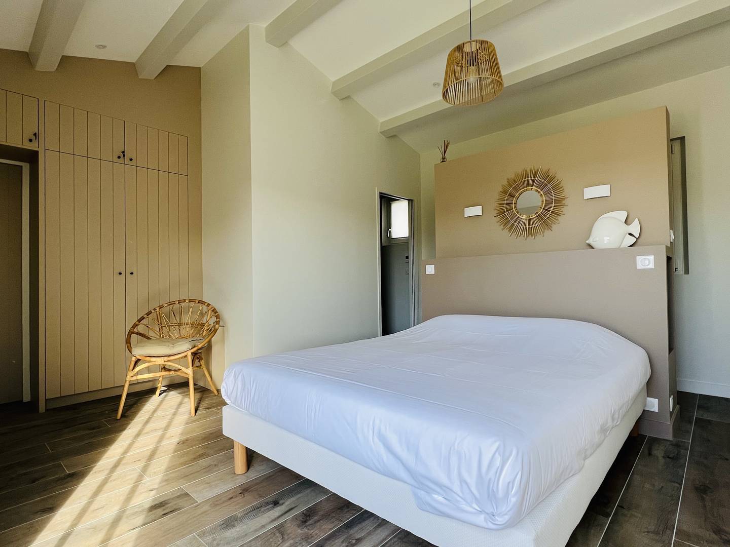 Enjoy the volumes of the living spaces open to the garden with terrace, garden furniture, summer courtyard with plancha allowing lunch/ dinner outside, and pool area with deckchairs. The pool is heated (from April to October depending on the weather) and secured by an electric shutter.