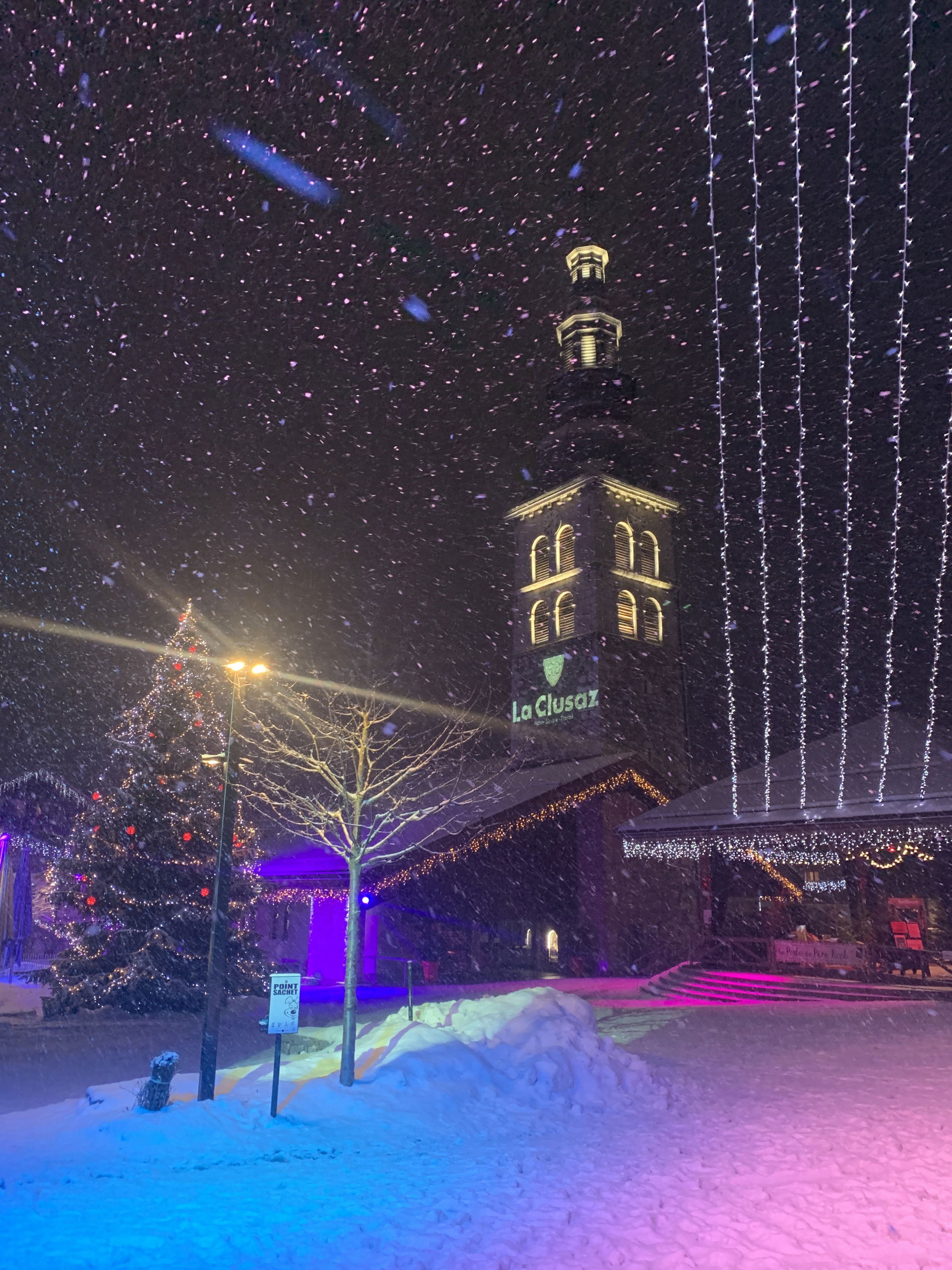 Apartment in a residence of 5 apartments, located in the center of LA CLUSAZ. Close to shops, nurseries and activities for children, swimming pool and ice rink open in summer and winter, From the Crêt du Merle chairlift, close to cross-country skiing (at the Beauregard gondola). View on little square with shops.