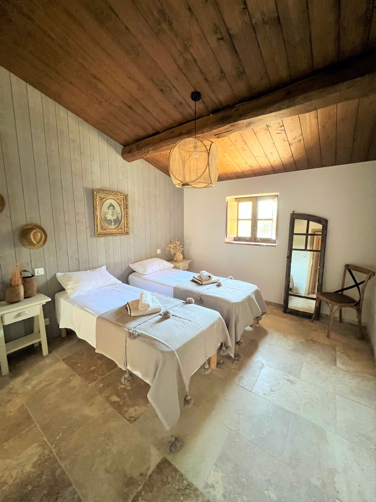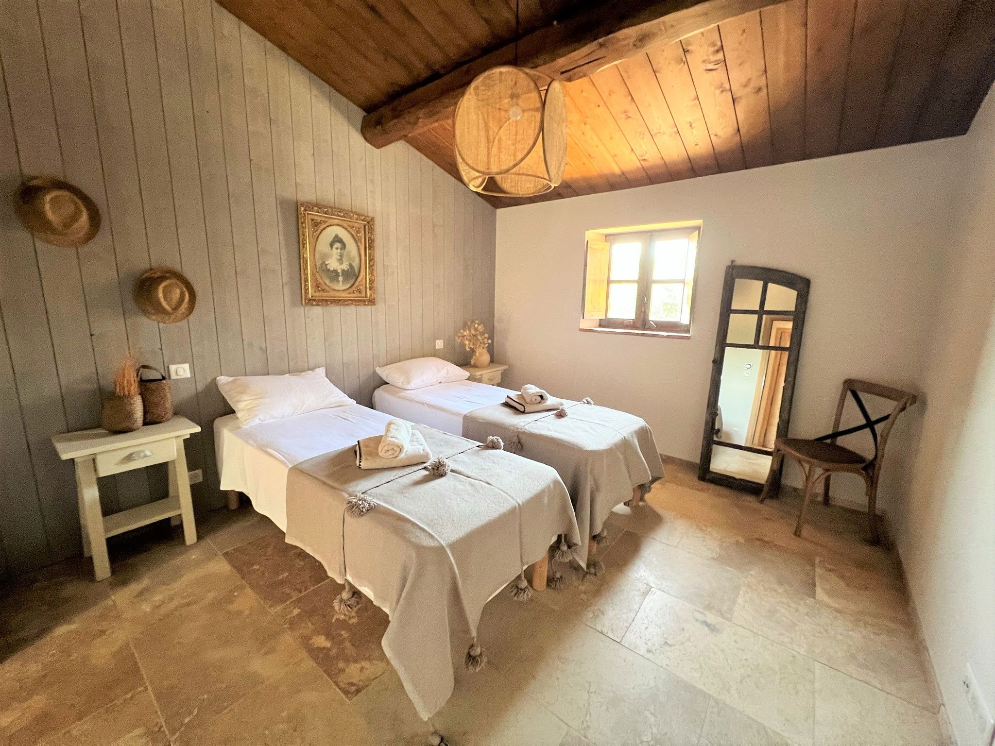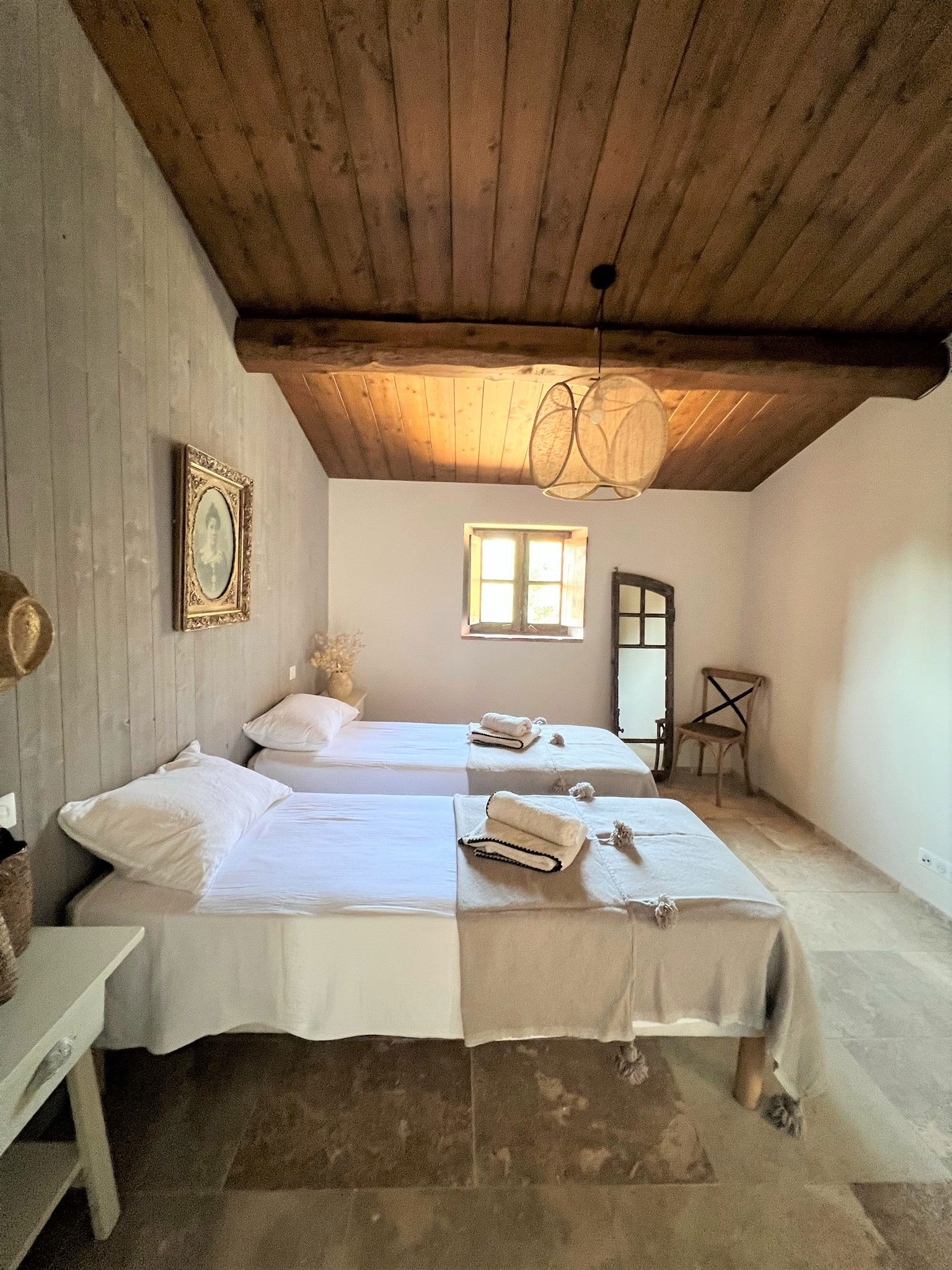 - A second bedroom with two 80 * 190 beds (possibility of bringing them closer together) and an additional single bed 80 * 190 shower room, dressing room and toilet.