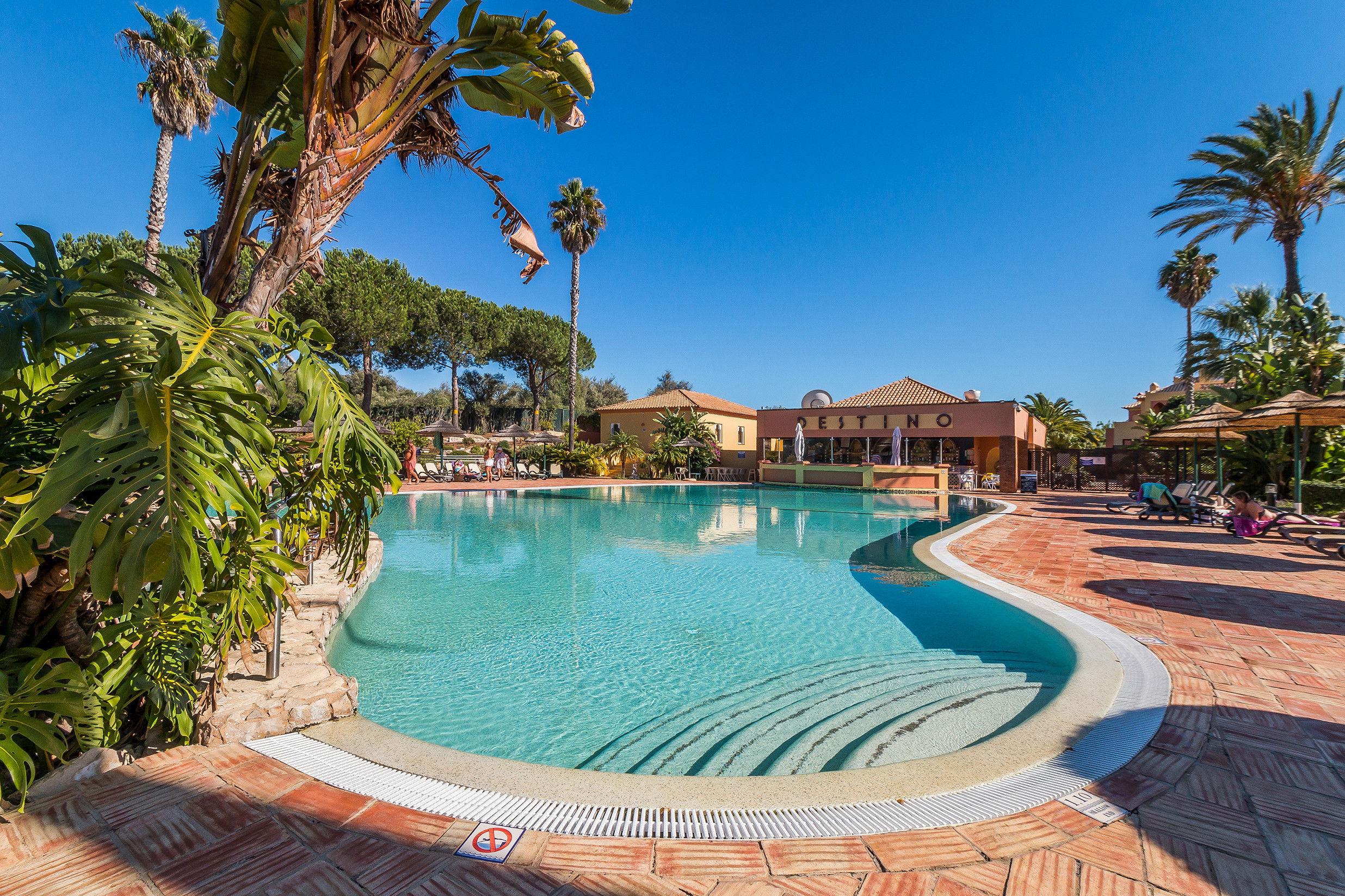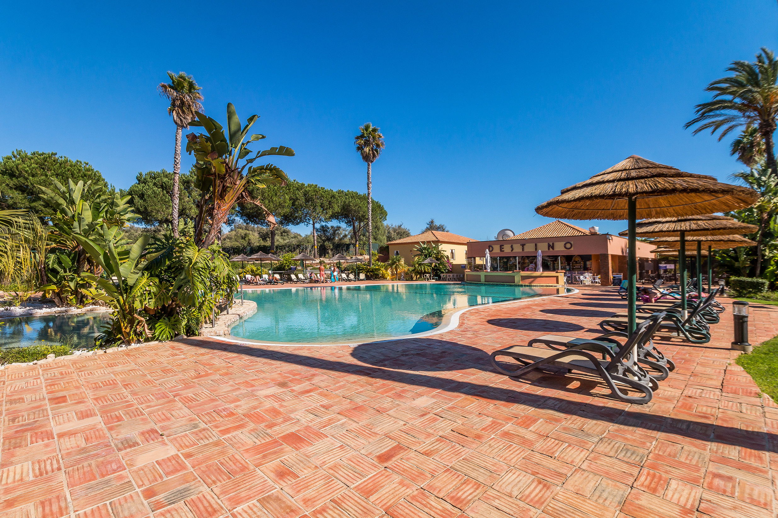 The resort's facilities include outdoor swimming pools for both adults and children, tennis (at an extra cost), restaurant, bar, extensive fields with a children's play area and tropical gardens.
