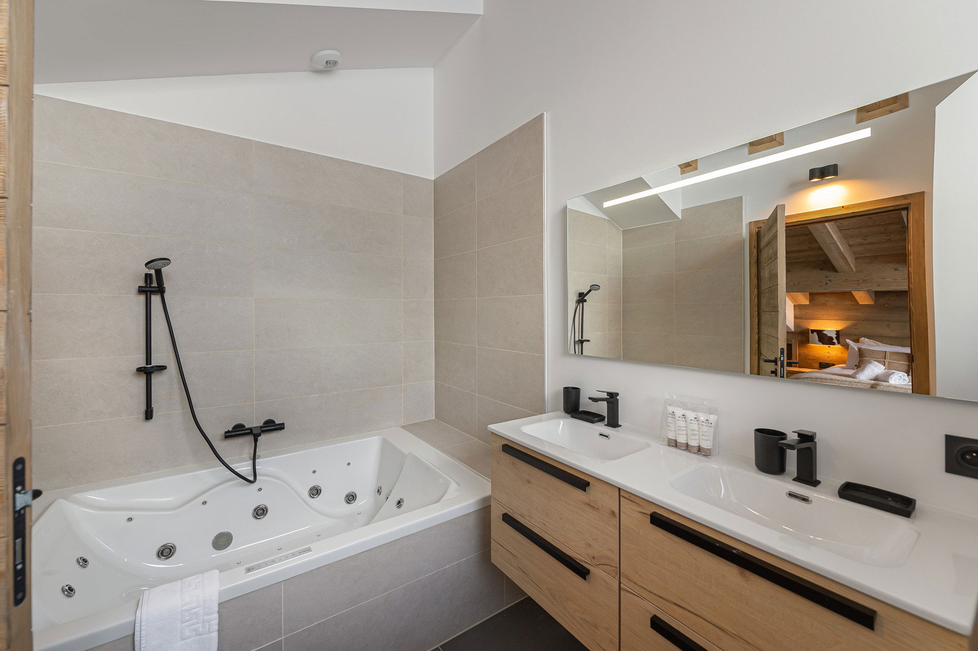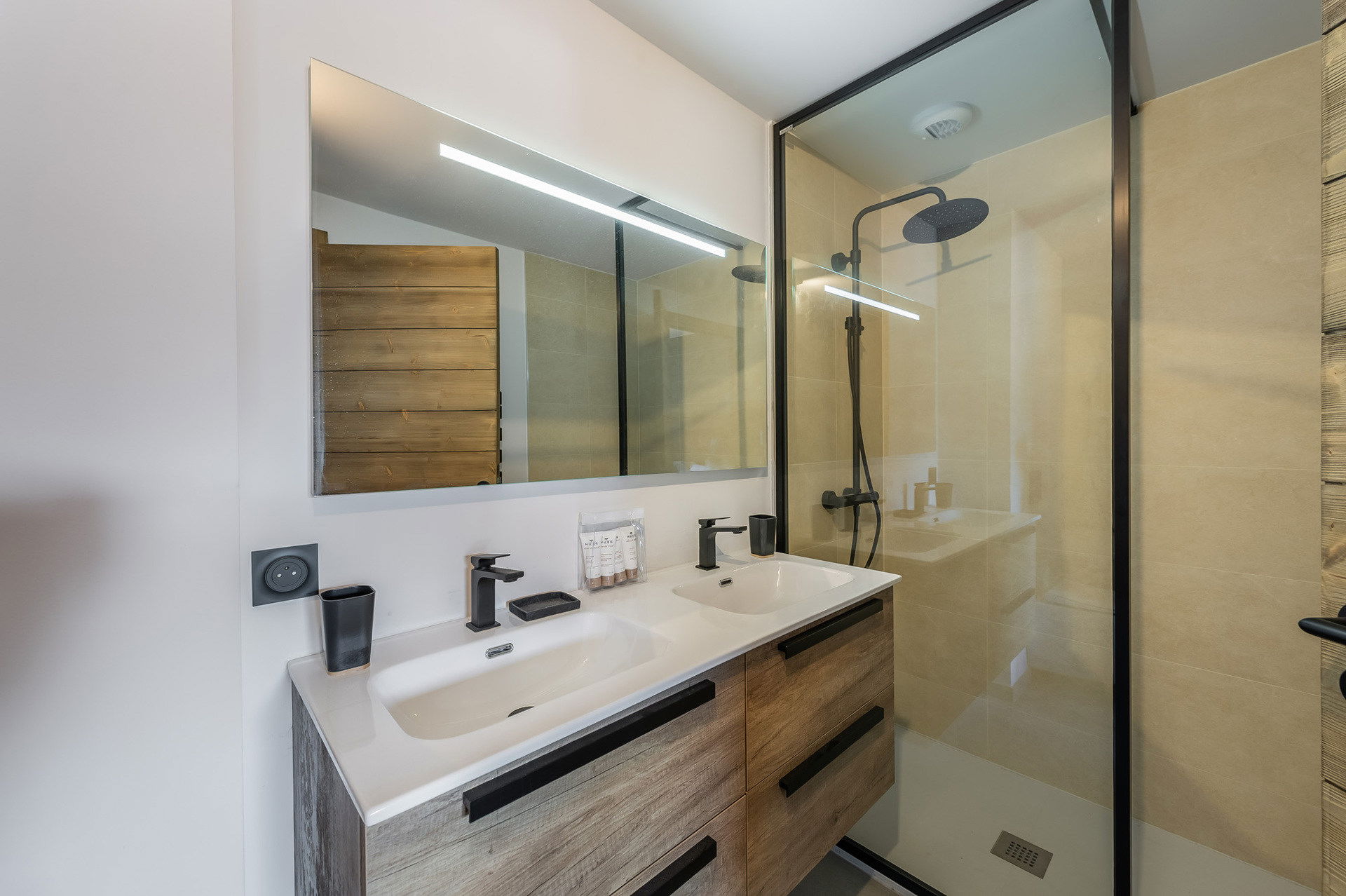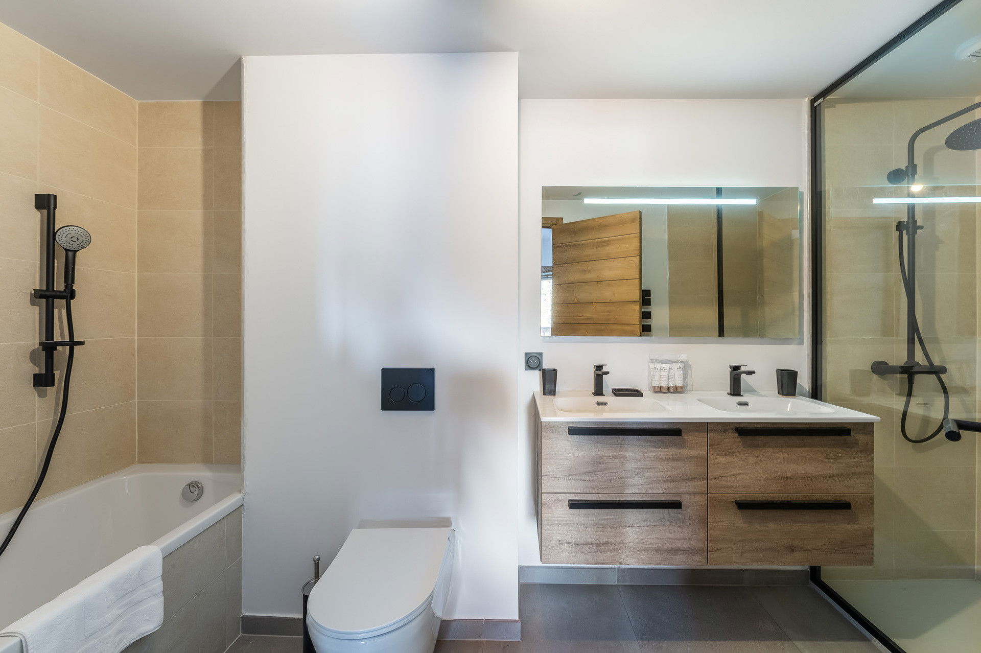 - Bedroom 2 : double bed separable 180x190, balcony, en-suite bathroom and toilet (shower+bath)