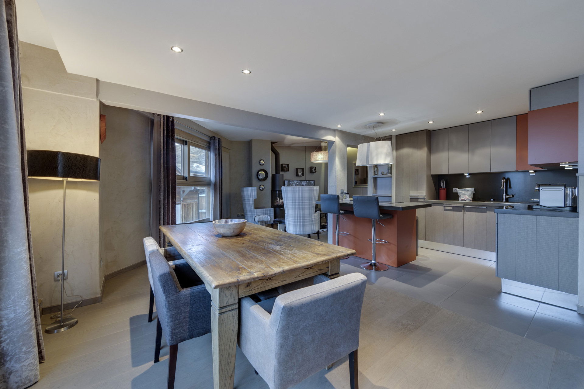 - Dining area (6 chairs)