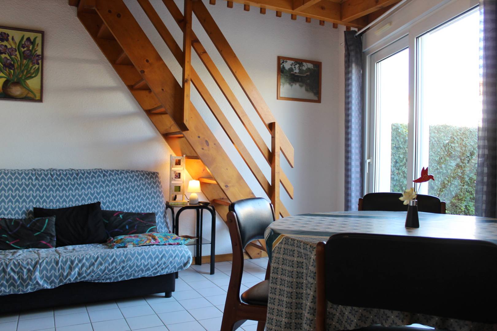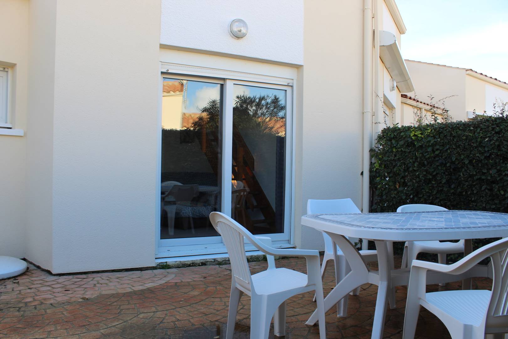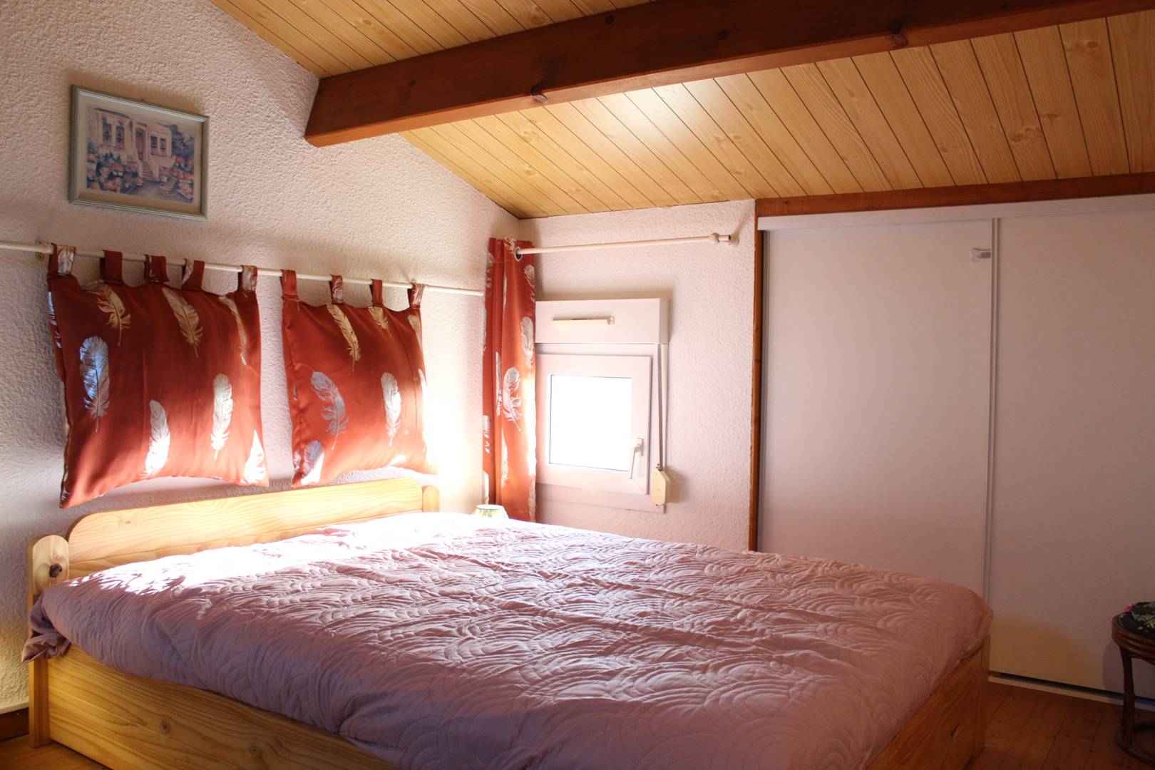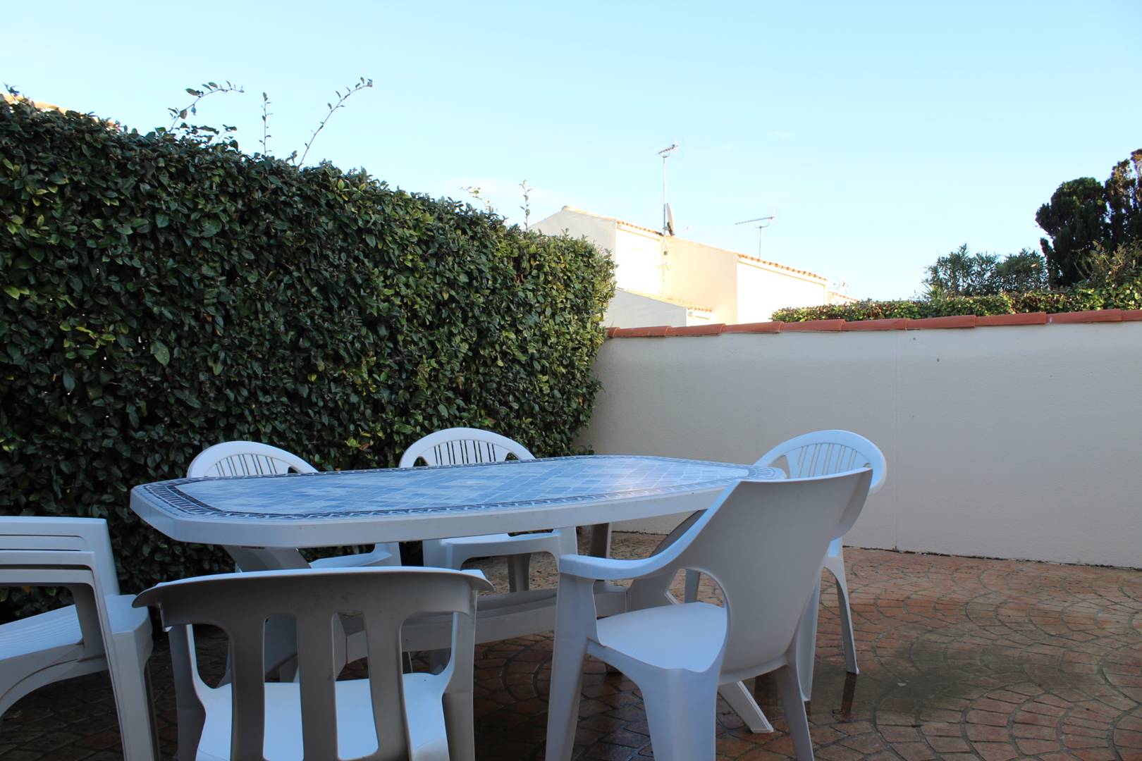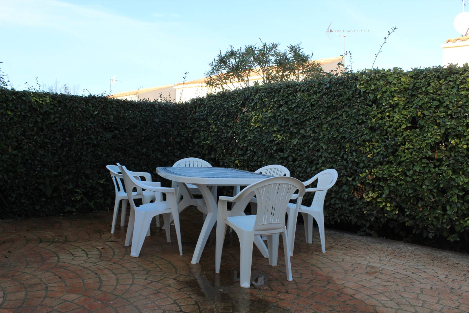 Dans une résidence avec piscine collective (ouverte de mi-juin à mi-septembre), jolie petite maison avec cour privative se composant d’un séjour avec coin cuisine, d’une chambre deux couchages (140), d’une salle d’eau avec douche, d’un WC indépendant, d’une mezzanine à usage de chambre avec quatre couchages (deux lits 90) et un lit double (140). En extérieur, cour devant la maison avec cabanon à usage de cellier avec lave-linge et belle terrasse ensoleillée à l’arrière de la maison. Parking sur le terrain.