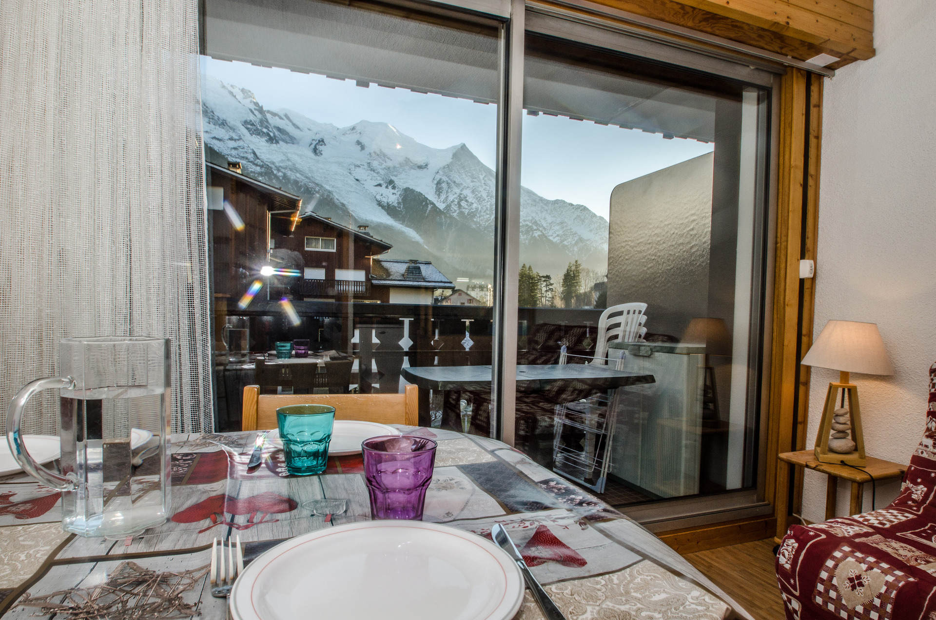 - Balcony equipped with garden furniture. Superb view of Mont-Blanc