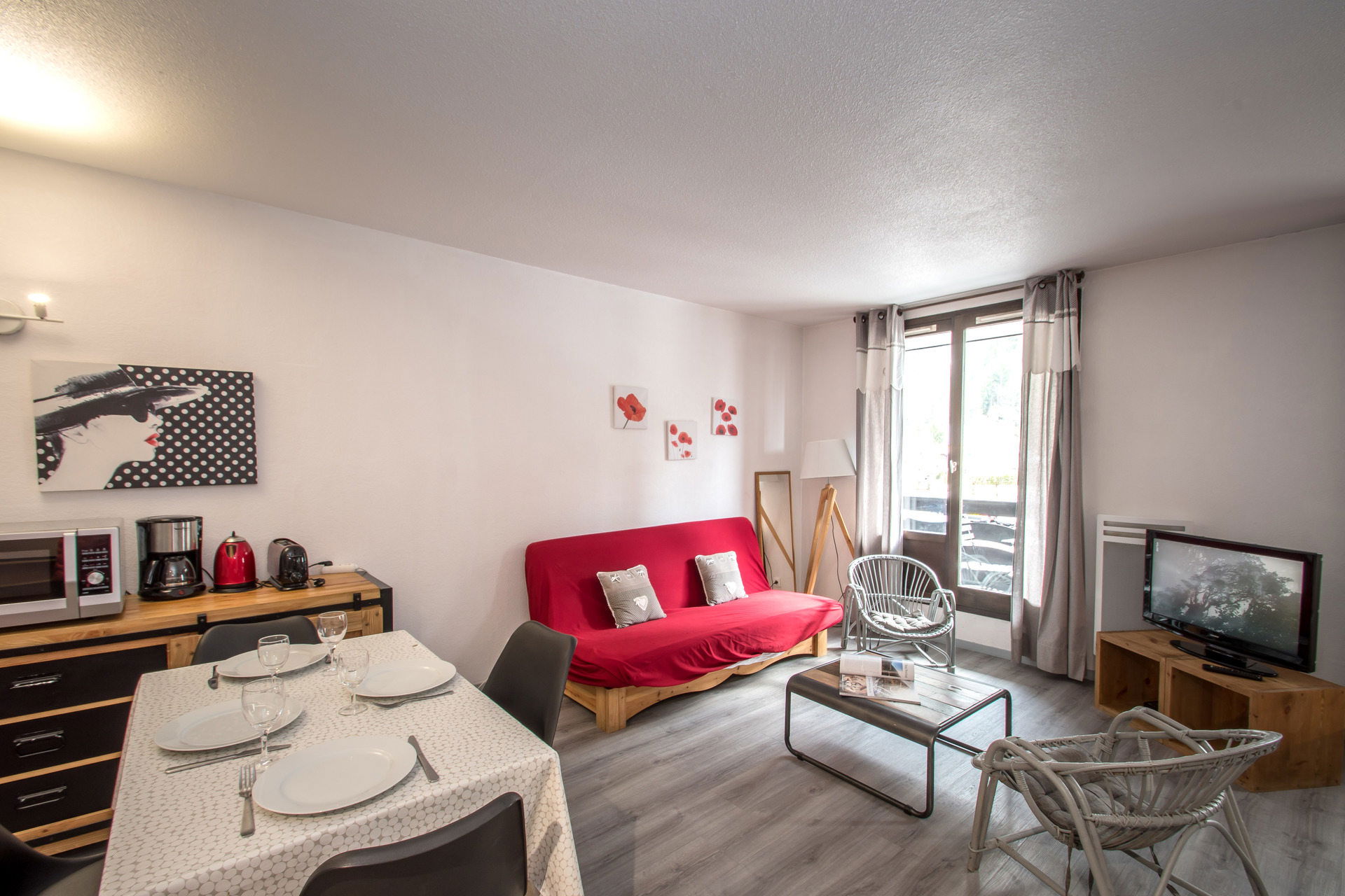 Beautiful 36sqm apartment for 4 people, 2 stars, on the 1st floor of a residence with lift located in the district of Chamonix Sud, 3 minutes walking from the pedestrian area.