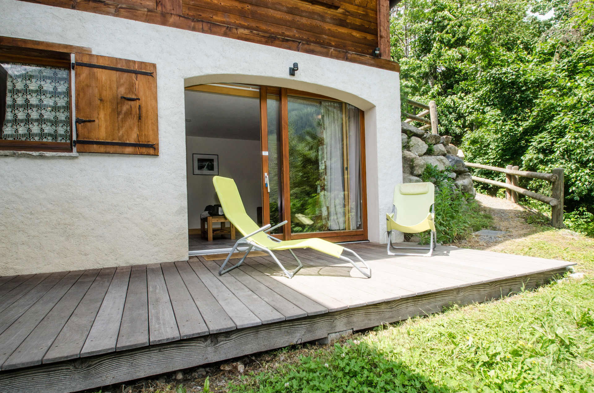 - Terrace equipped with garden furniture, southern exposure with a superb view on the chain of Mont-Blanc.