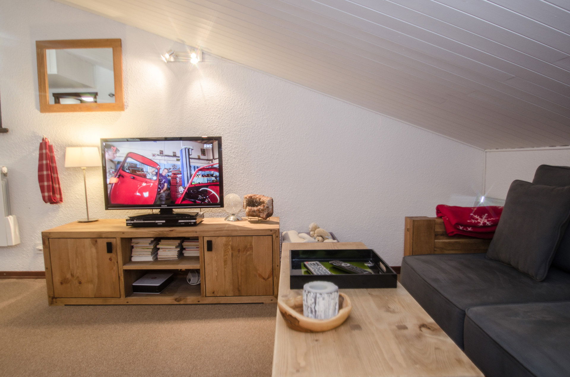 - Living room with TV, DVD player and a sofa bed for two people