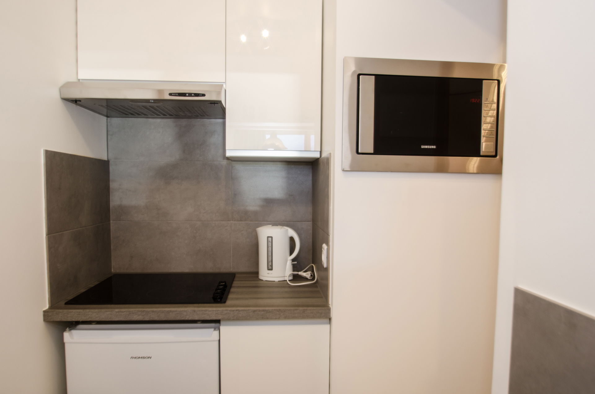 - Kitchenette equipped (refrigerator, dishwasher, microwave and ceramic hob)