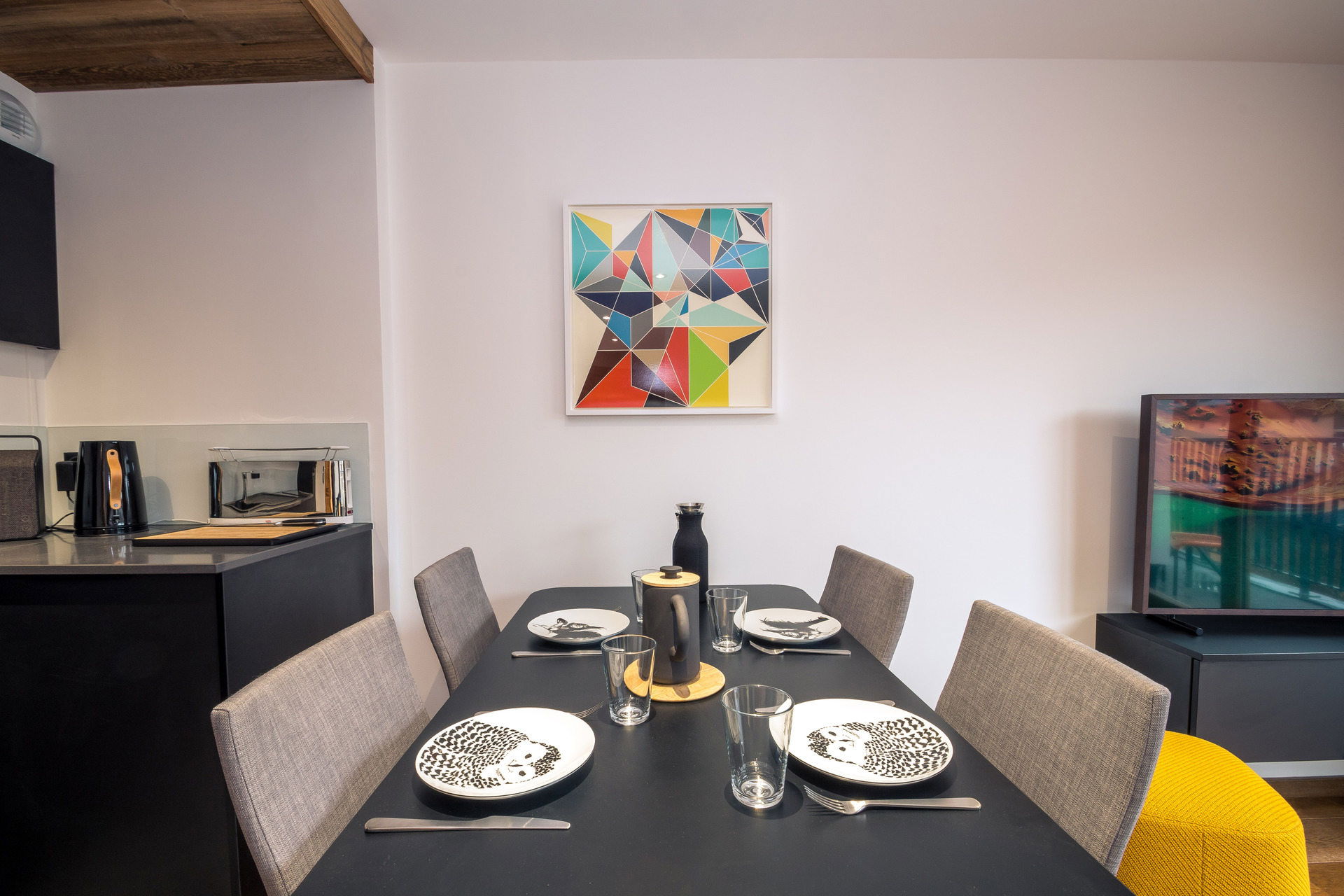 - Dining and lounge area with TV, bluetooth speakers and blueray DVD player