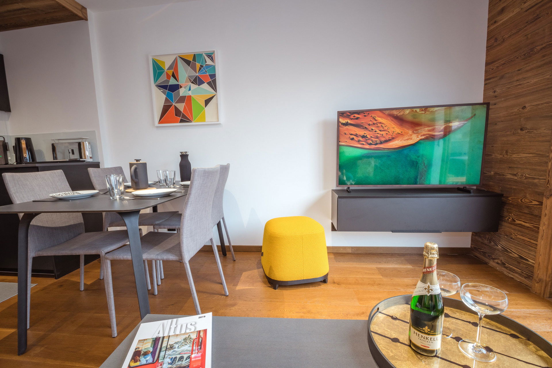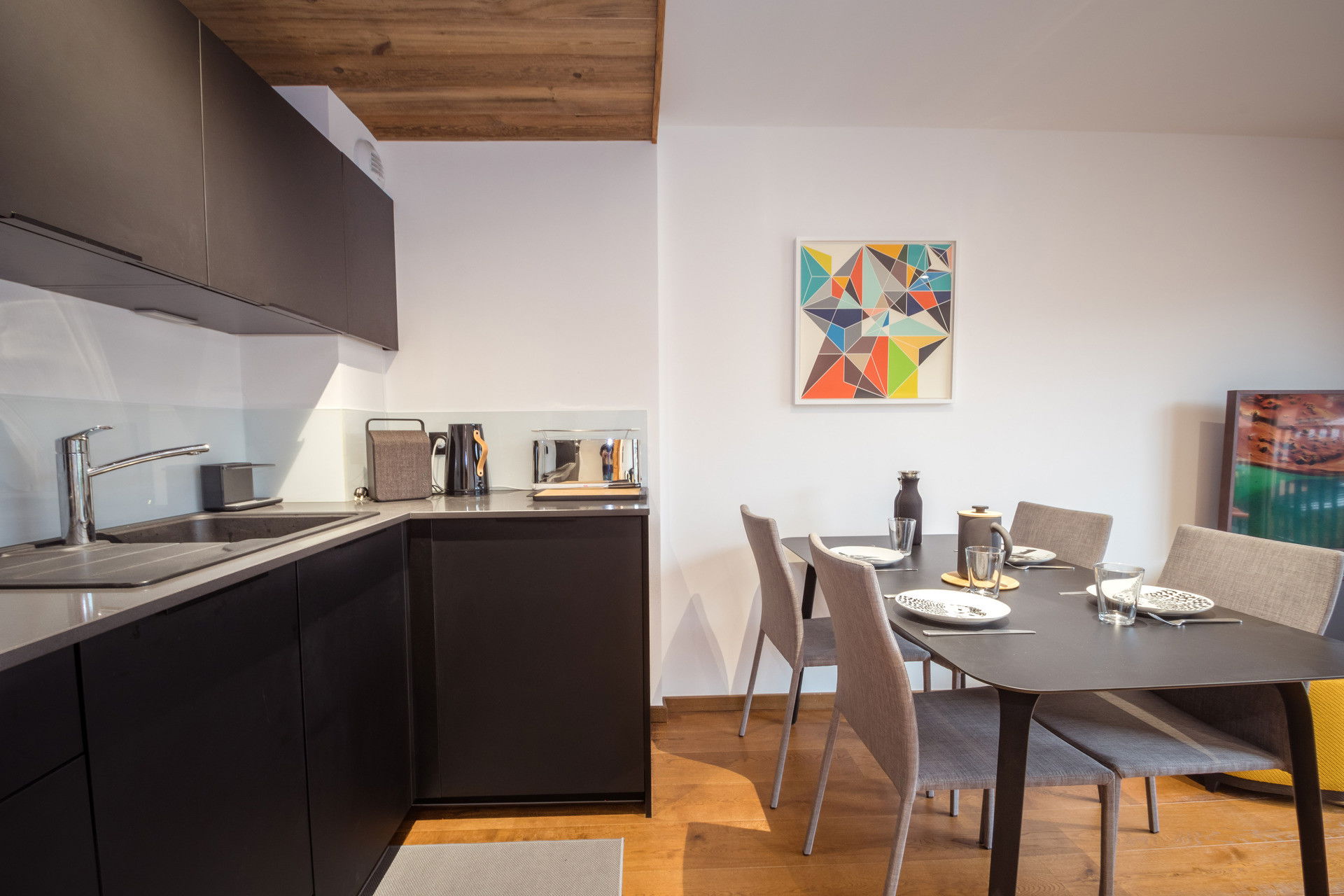 - Fully equiped kitchen (induction hob, a combi oven/microwave, refrigerator with freezer compartment, dishwasher, hood, washing machine, kettle, toaster, Nespresso)
