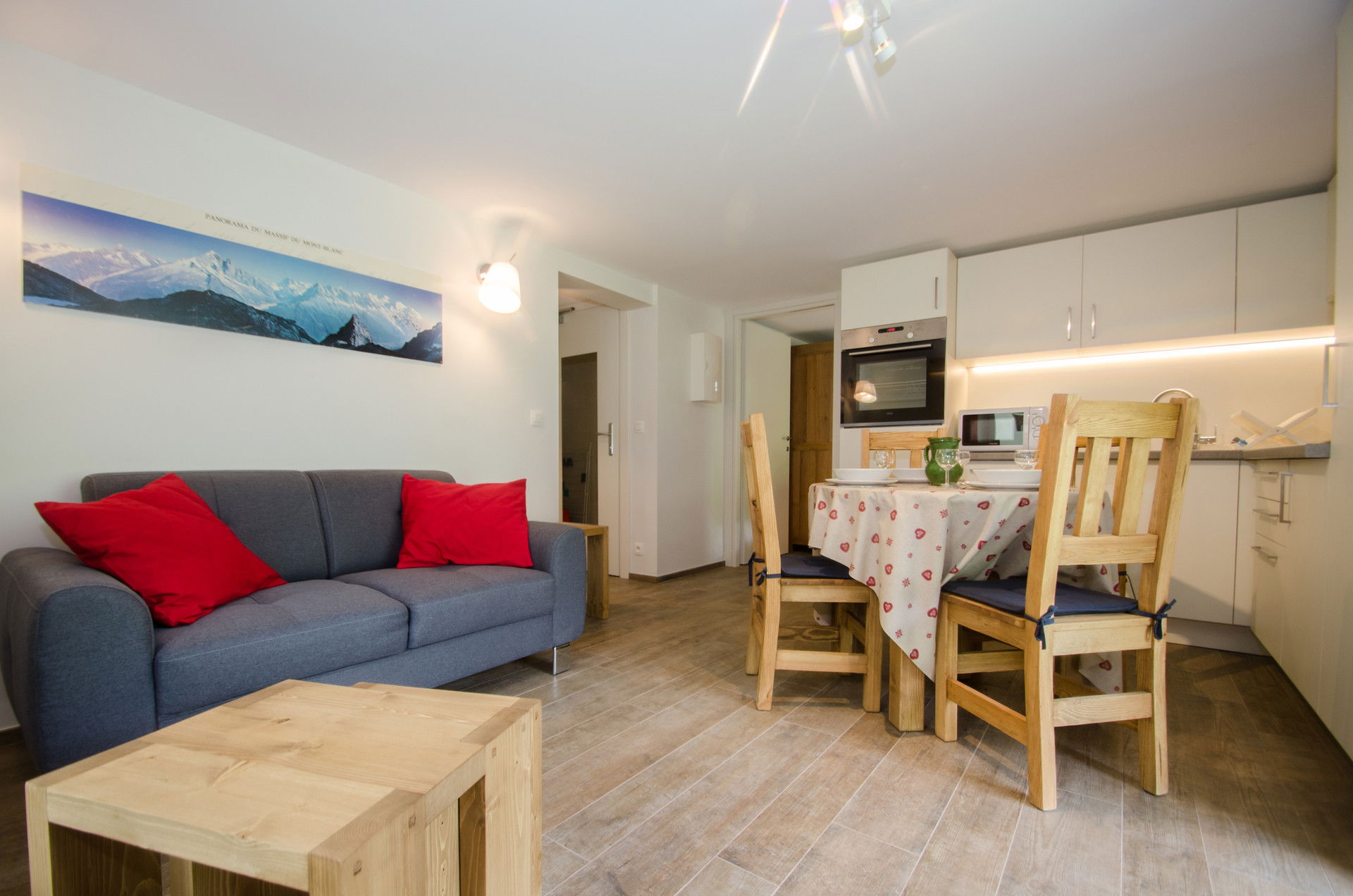 Cosy 45sqm apartment completely renovated and classified 3 stars, can welcome up to 4 people. Facing the chain of Mont-Blanc. It is located on the ground floor of a house, 150 meters away from the cable car Brévent, and 600 meters away from the pedestrian area of Chamonix.