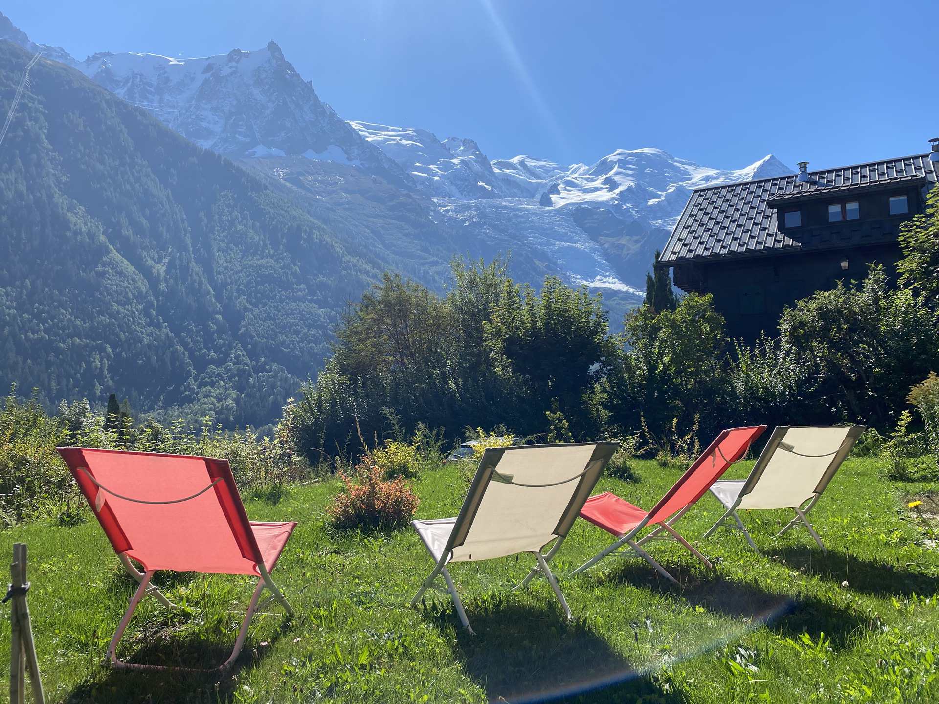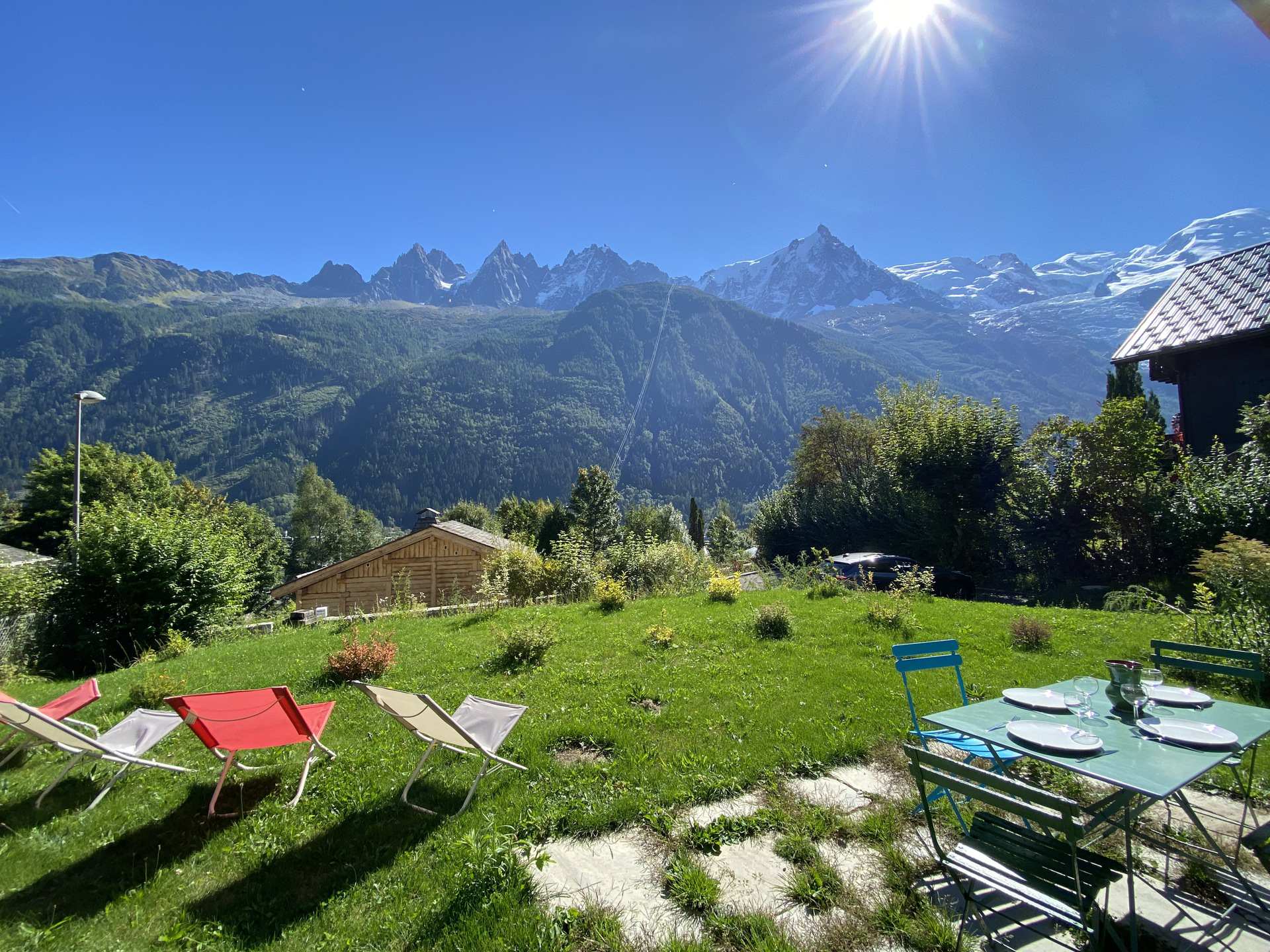 - Garden with magnificent view of Mont-Blanc (table, chairs, deck chairs and a parasol are at your disposal).