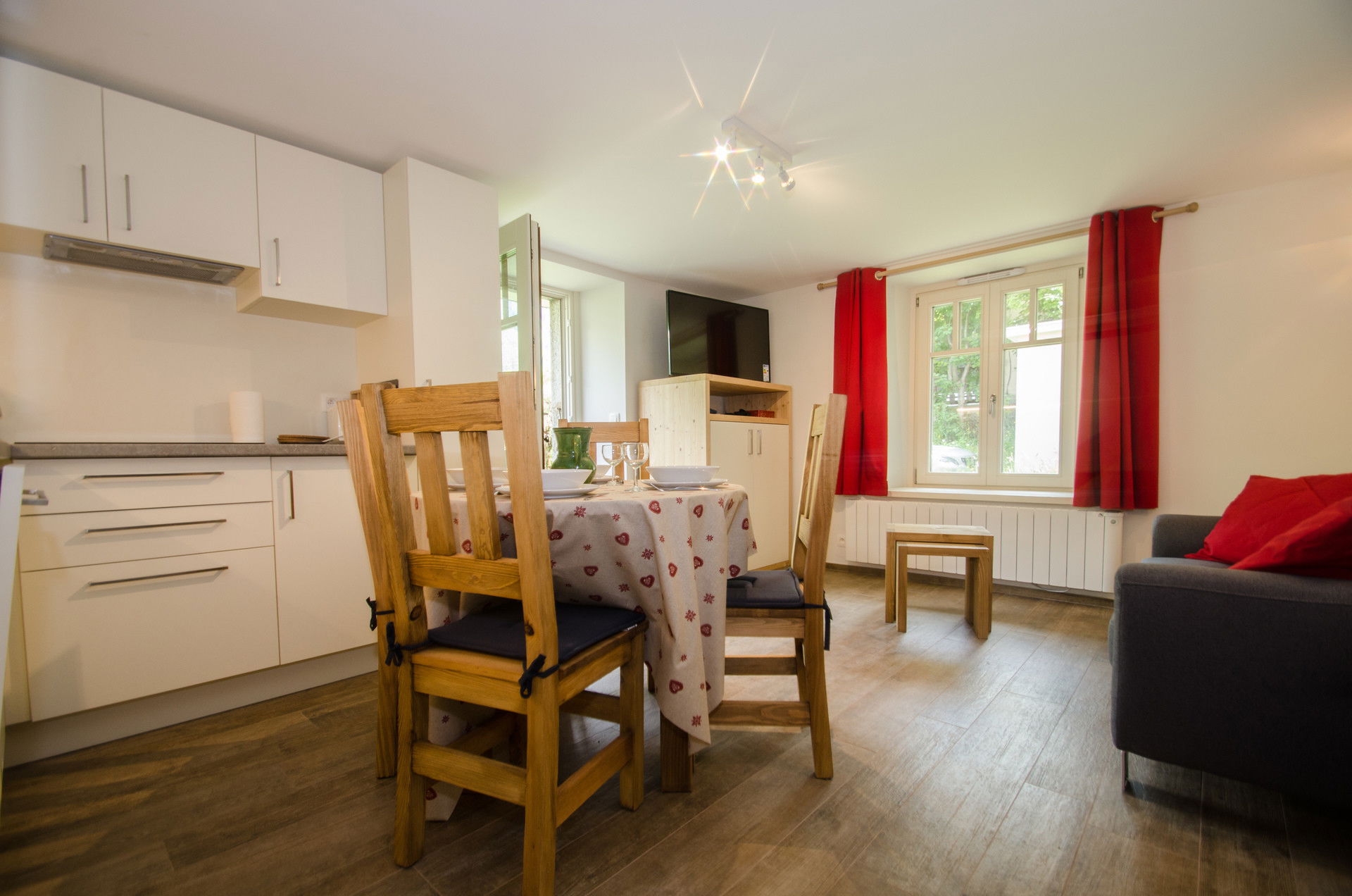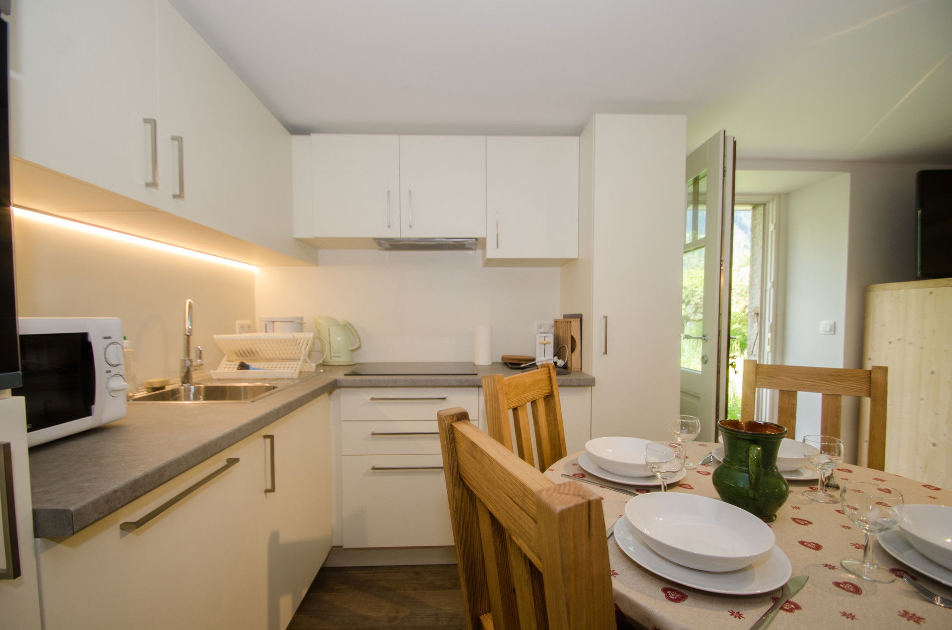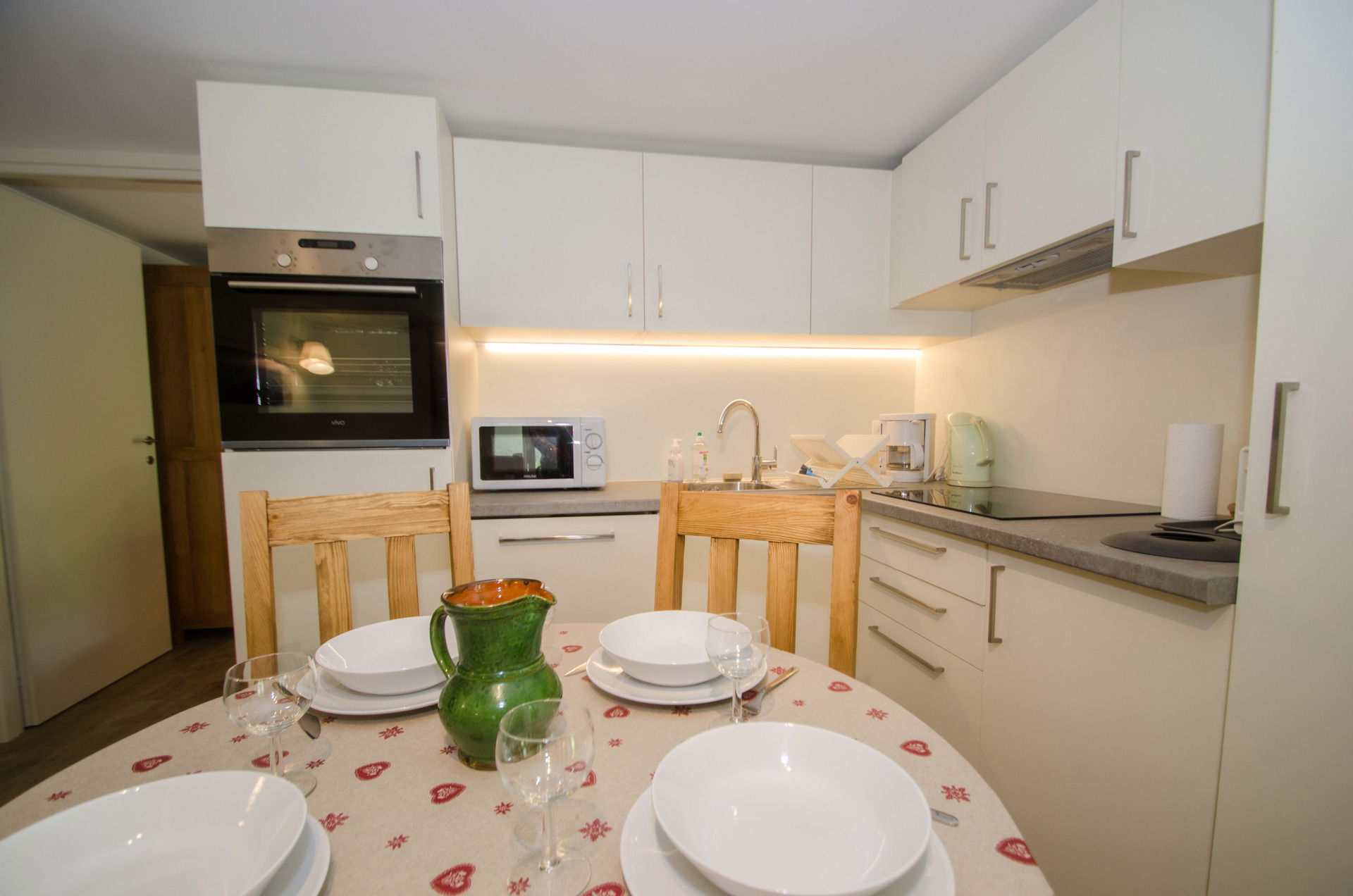 - Kitchen area equipped (oven, fridge, microwave, dishwasher, ceramic hob and extractor hood, filter coffee machine, raclette set)