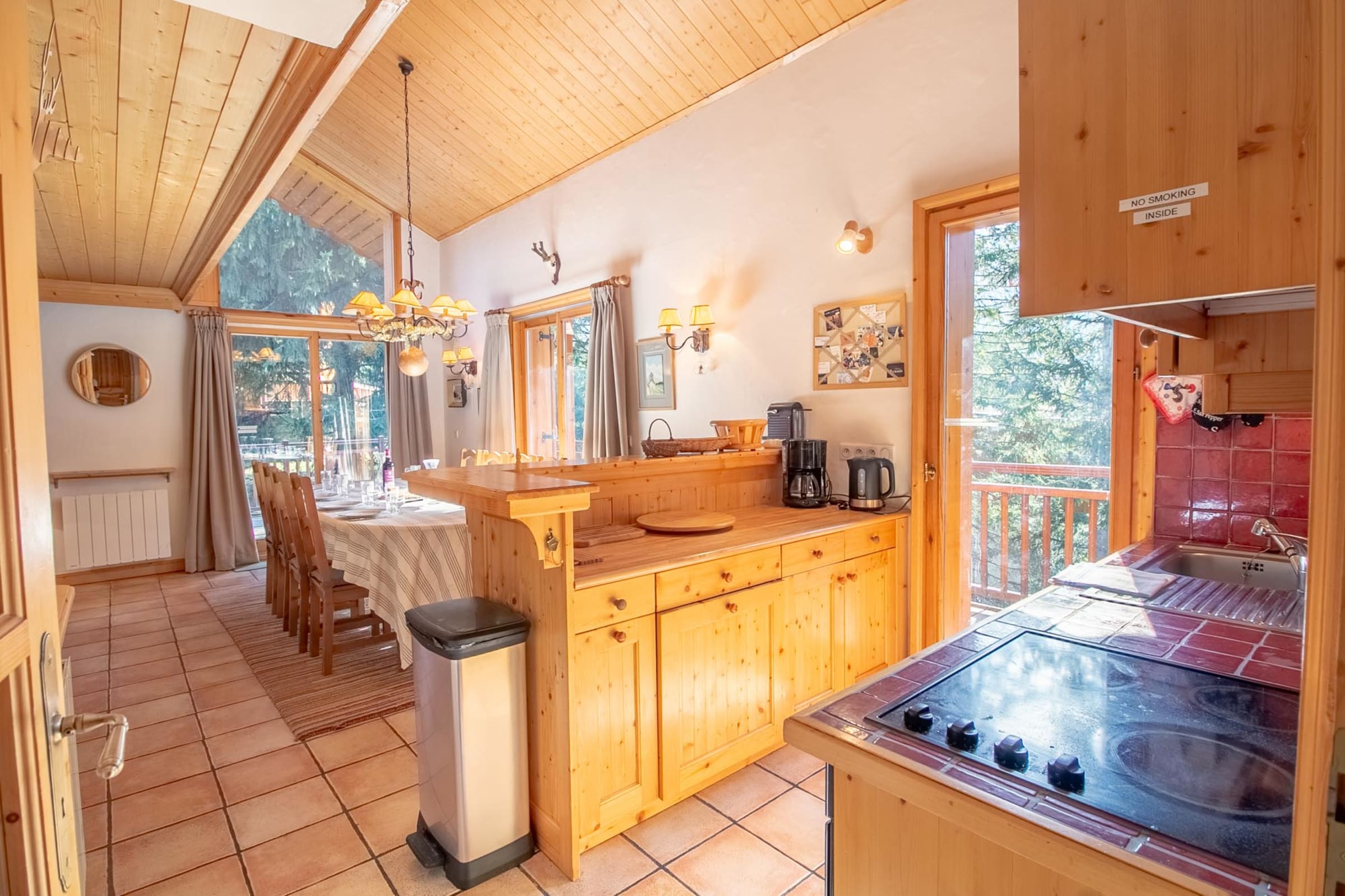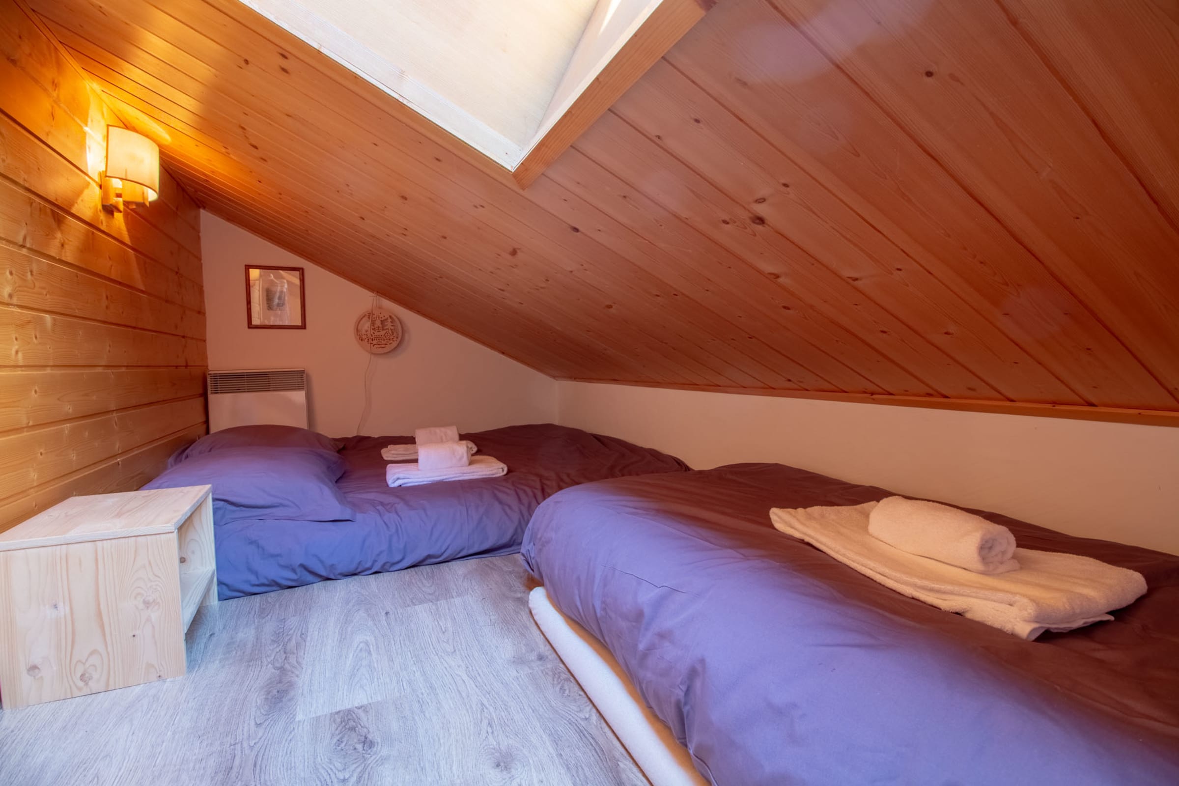 This beautiful chalet is perfect for family vacations. Made entirely of wood, you will appreciate the spacious rooms and the wonderful brightness that fills the interior. The large living room with its fireplace is perfect for unwinding after a day of skiing. The ample space around the chalet, coupled with trees that provide a sense of privacy, creates a welcoming ambiance. The chalet is designed to comfortably accommodate 8 people, but can easily host up to 11 people.