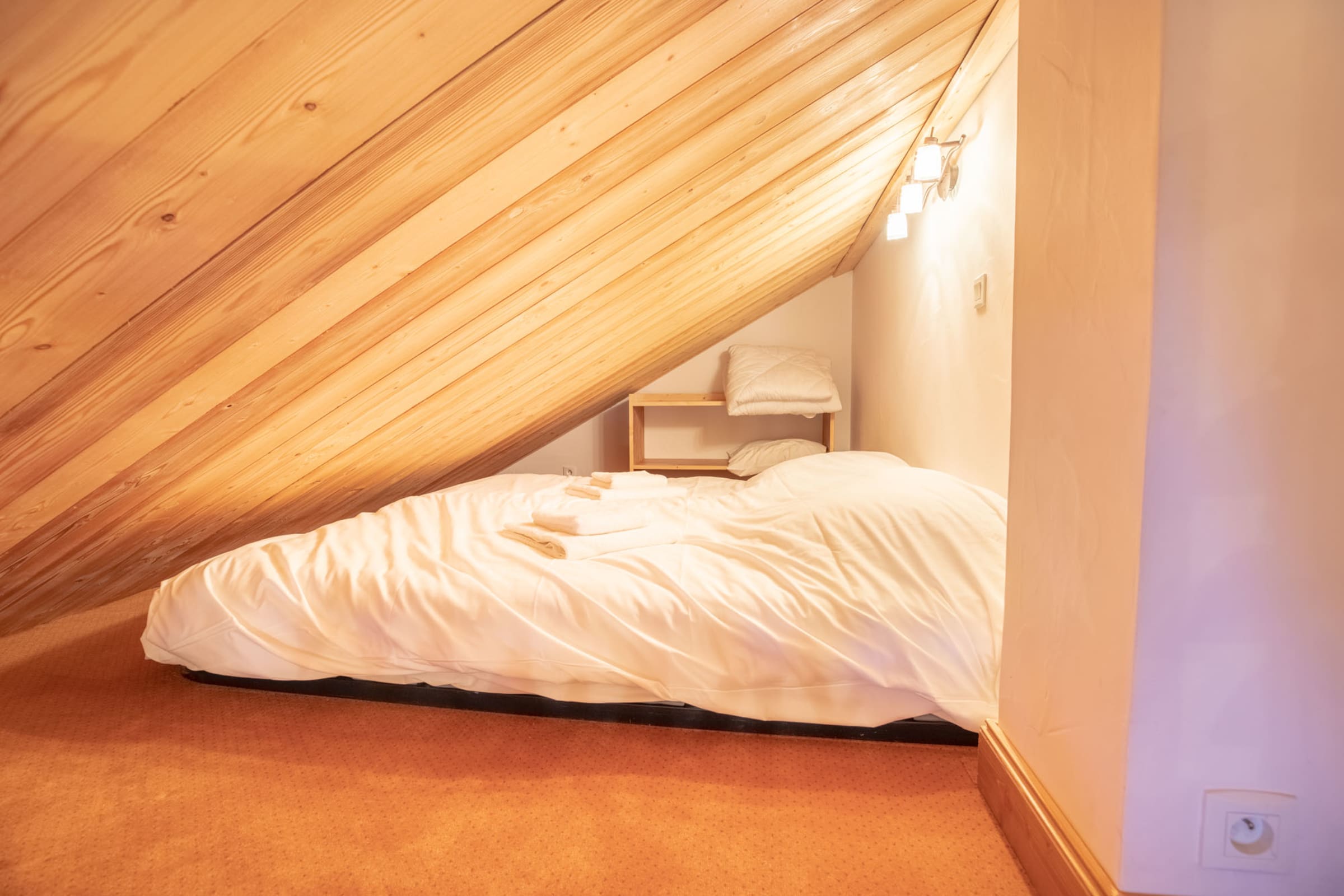 A bedroom with a 140cm double bed. A mezzanine completes the apartment which can accommodate up to 2 people (2 single beds), be careful there is not much height under the ceiling.