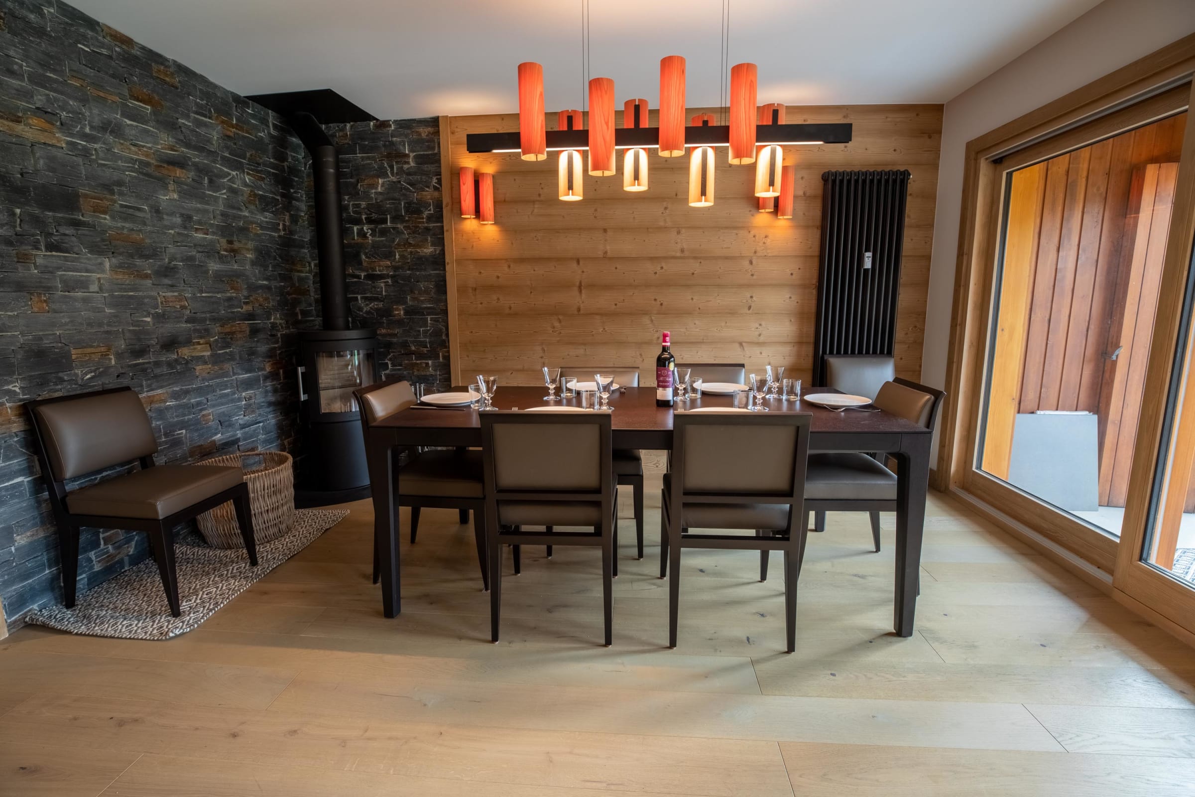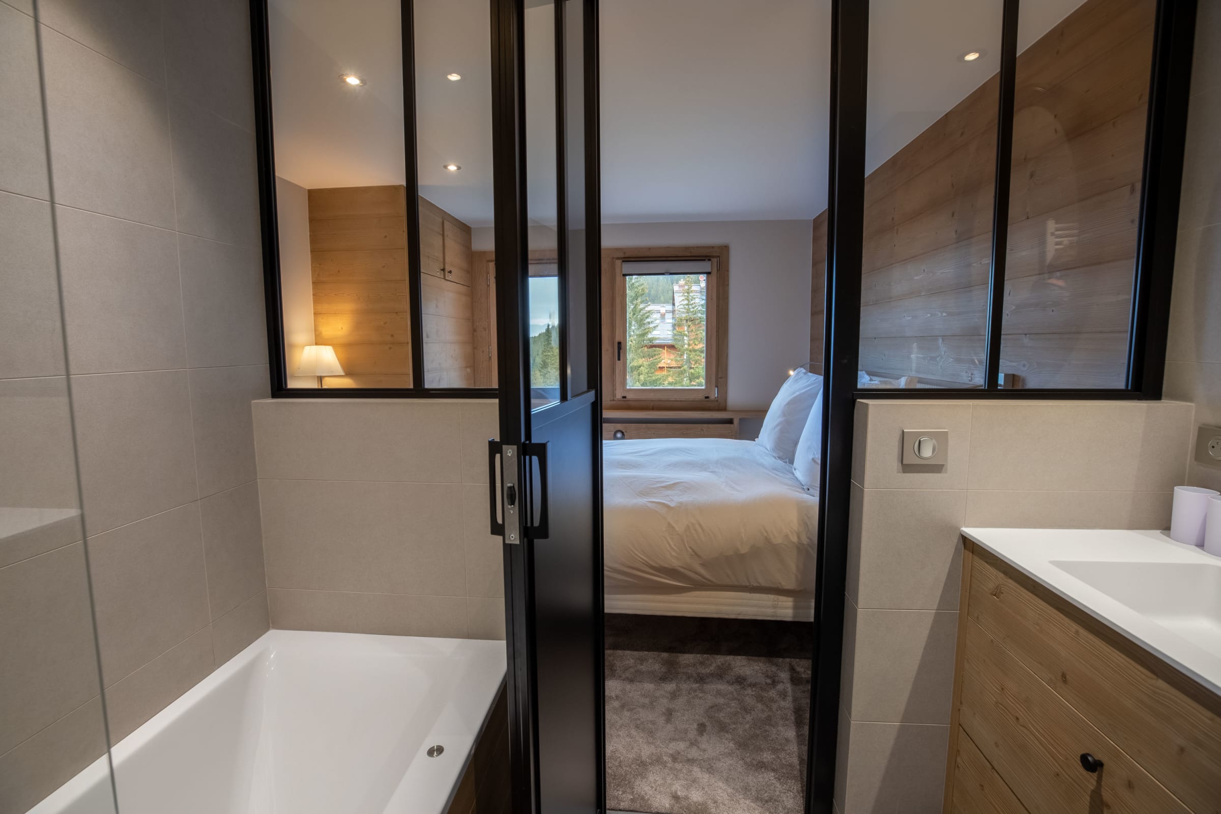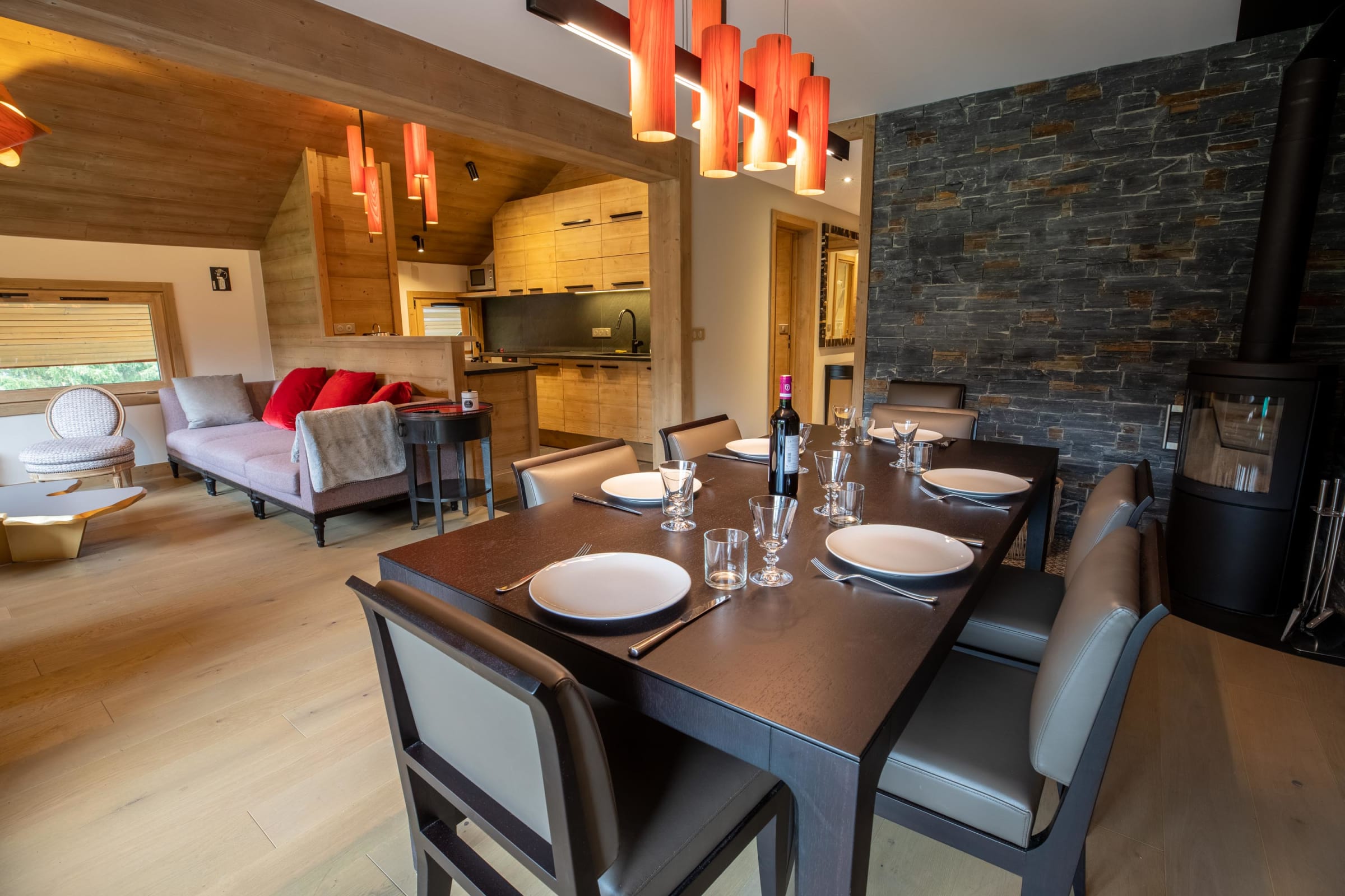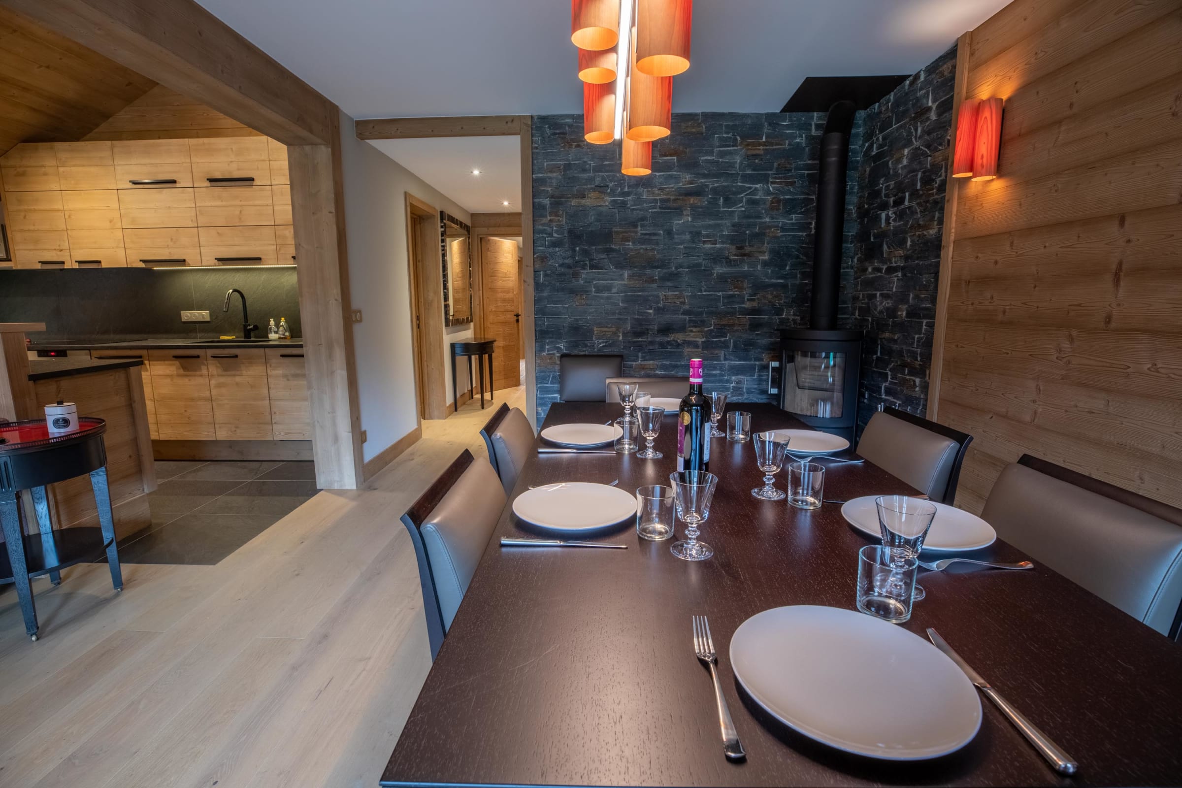 The apartment is composed of a fully equipped kitchen open to a large living/dining room. This room is very bright and particularly pleasant after a good day of skiing, you will also enjoy the wood stove.