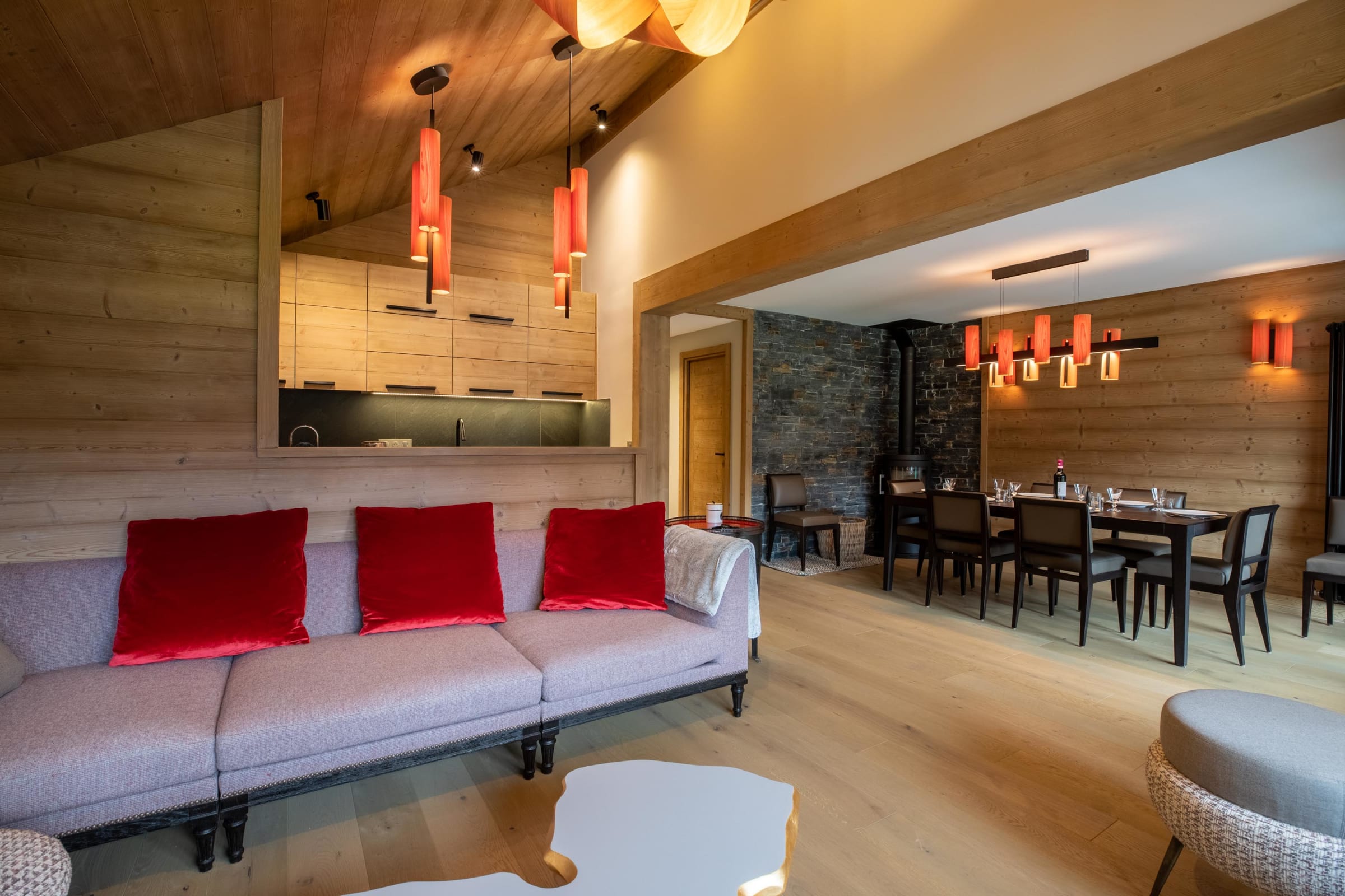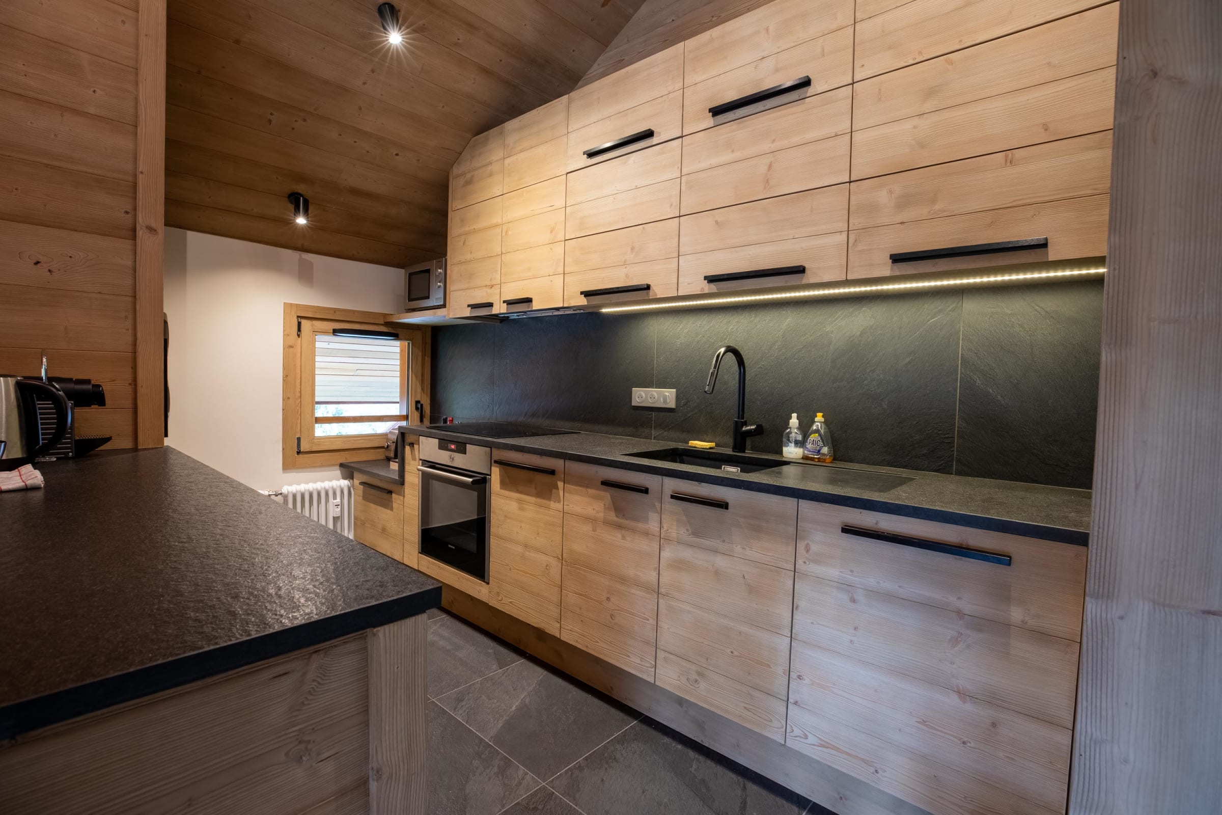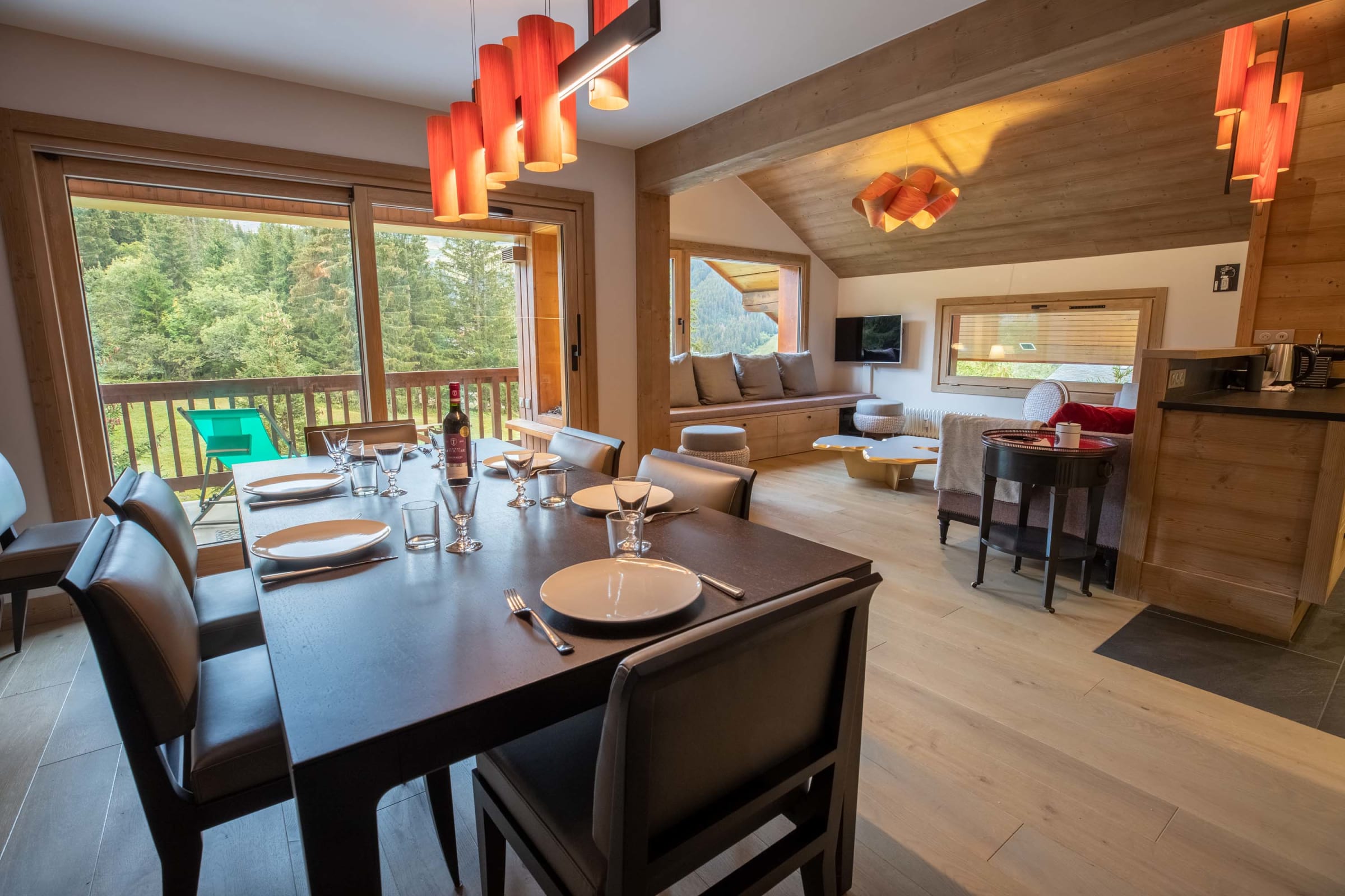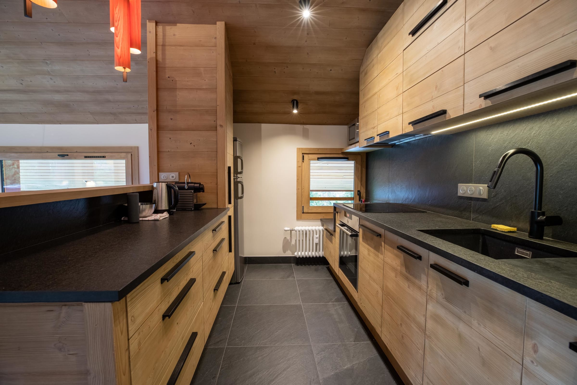 The apartment is composed of a fully equipped kitchen open to a large living/dining room. This room is very bright and particularly pleasant after a good day of skiing, you will also enjoy the wood stove.