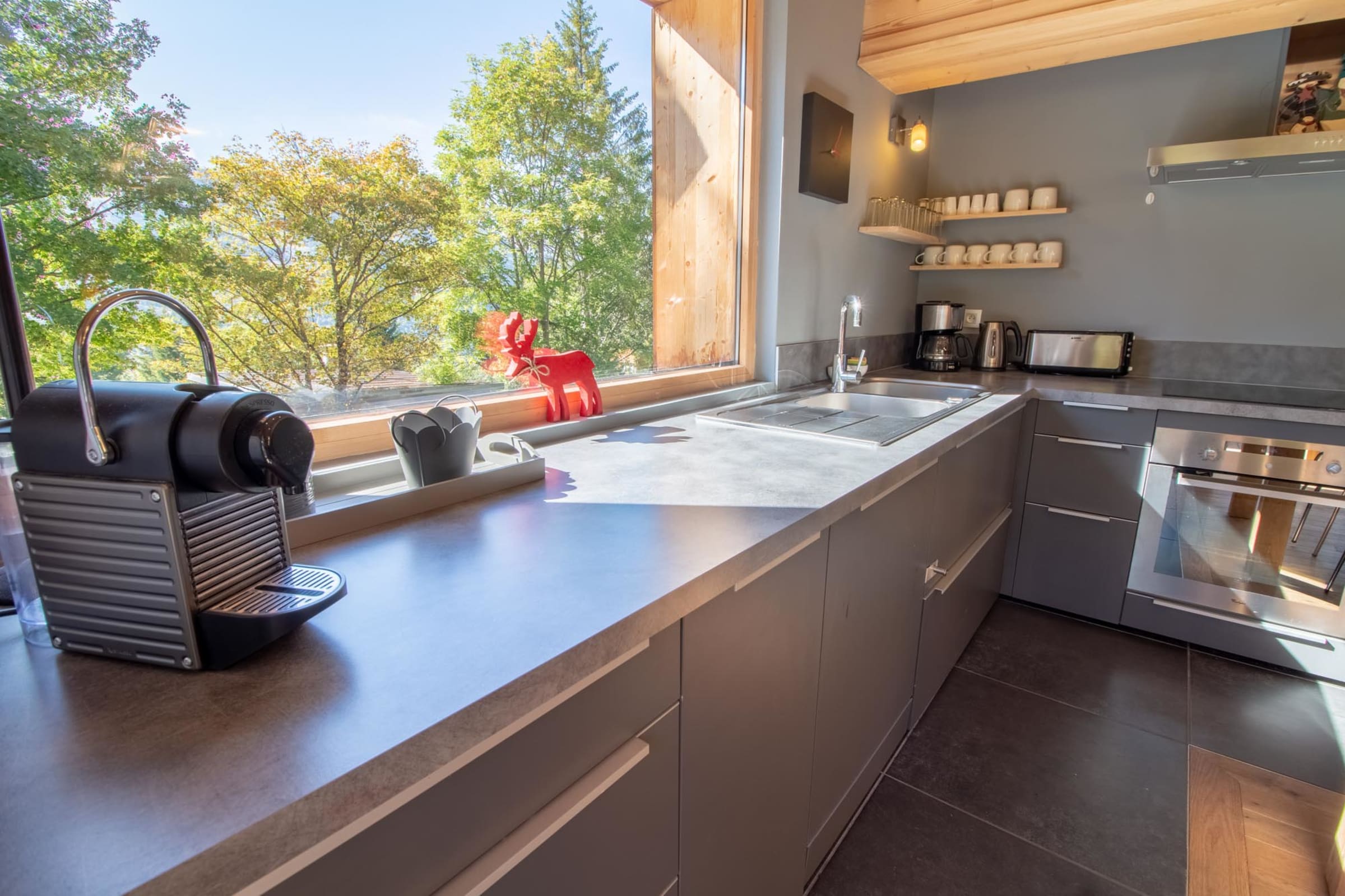 - a open kitchen with dishwasher, oven, big fridge, toaster, kettle, coffee machine (filter and Nespresso), micro-wave...