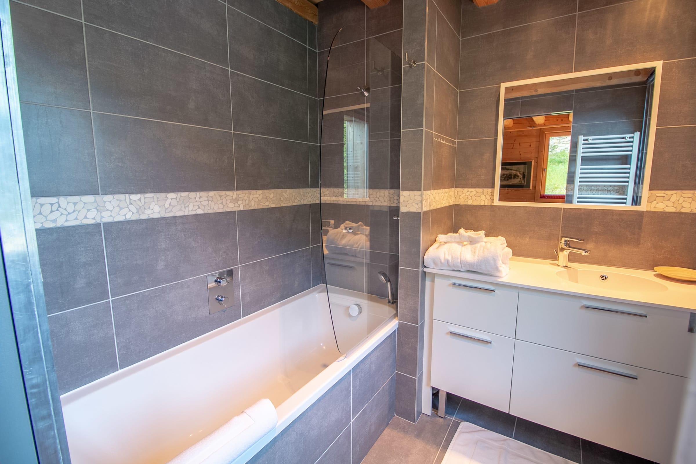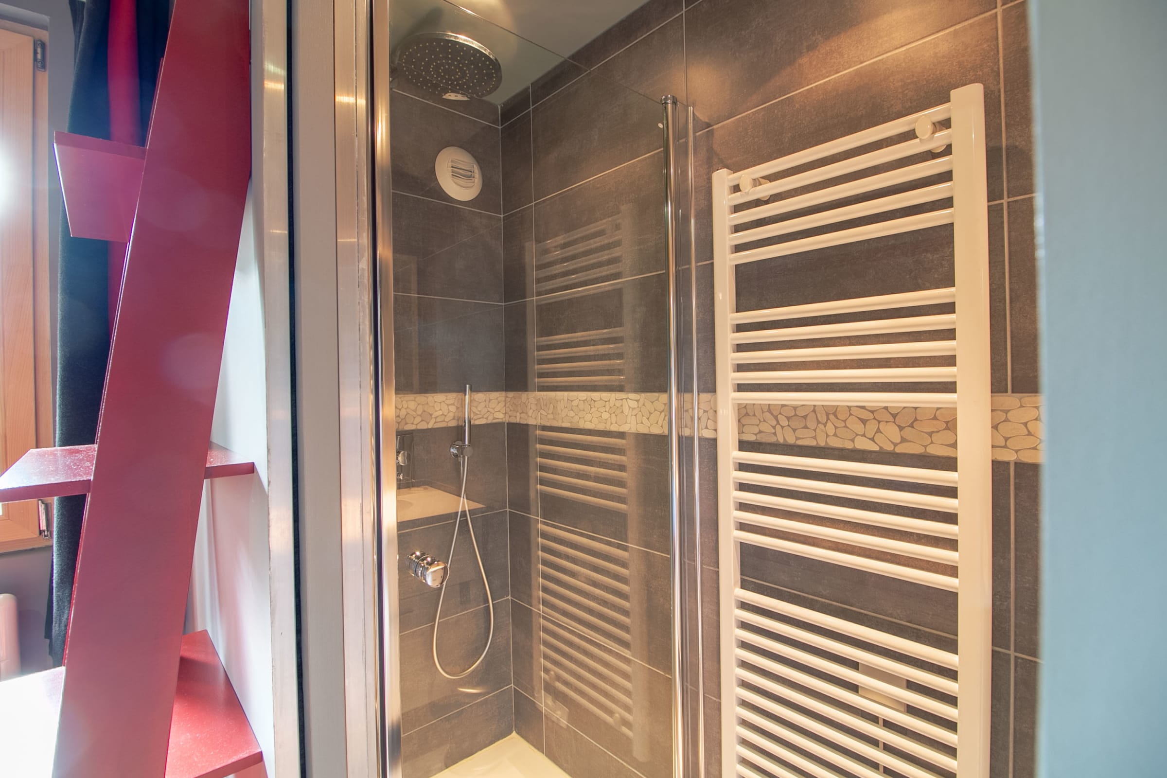 - a bedroom with bunkbed and with an en-suite bathroom (shower and washbasin)