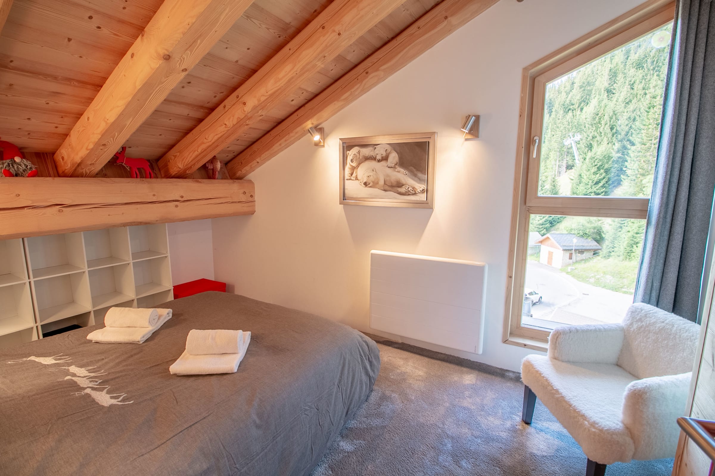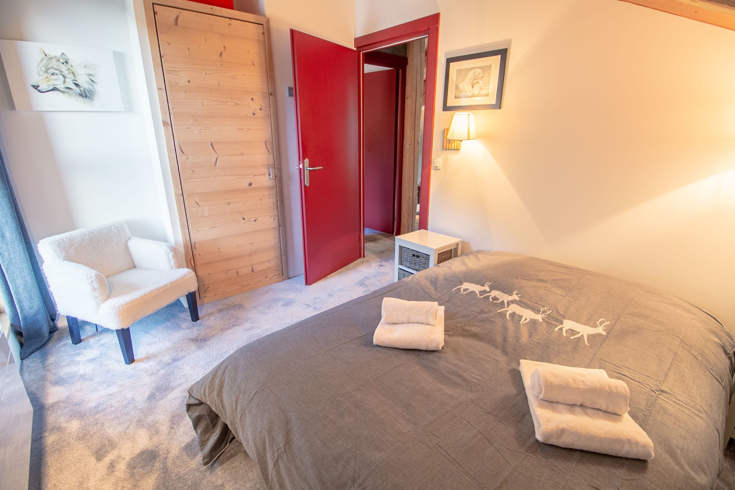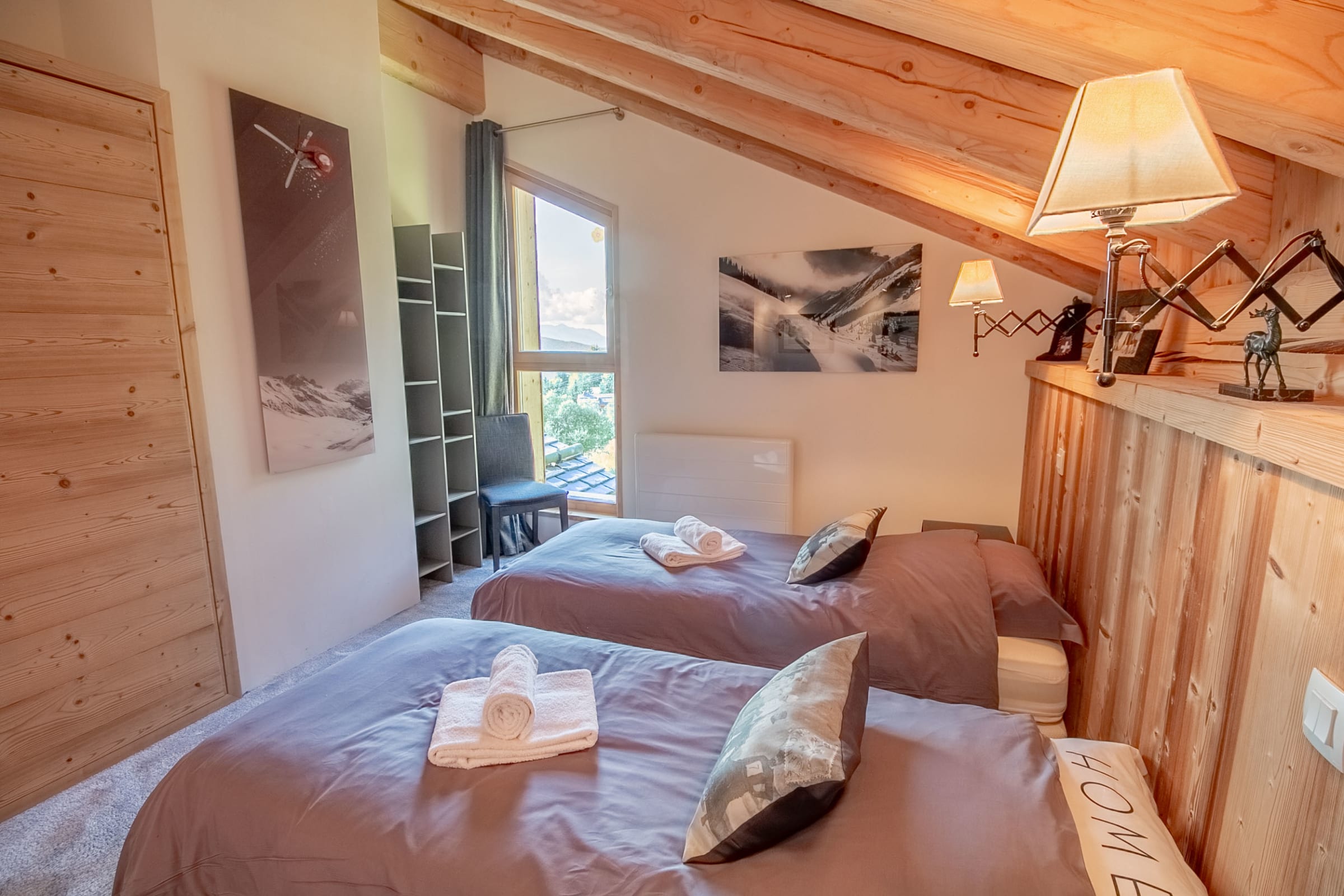 Magnificent penthouse apartment in an individual chalet close to Morel chairlift (350m), Chalet de L'Ours Duplex is a high-end location to spend holidays in Meribel.