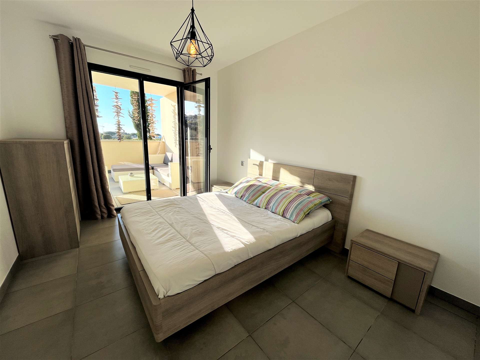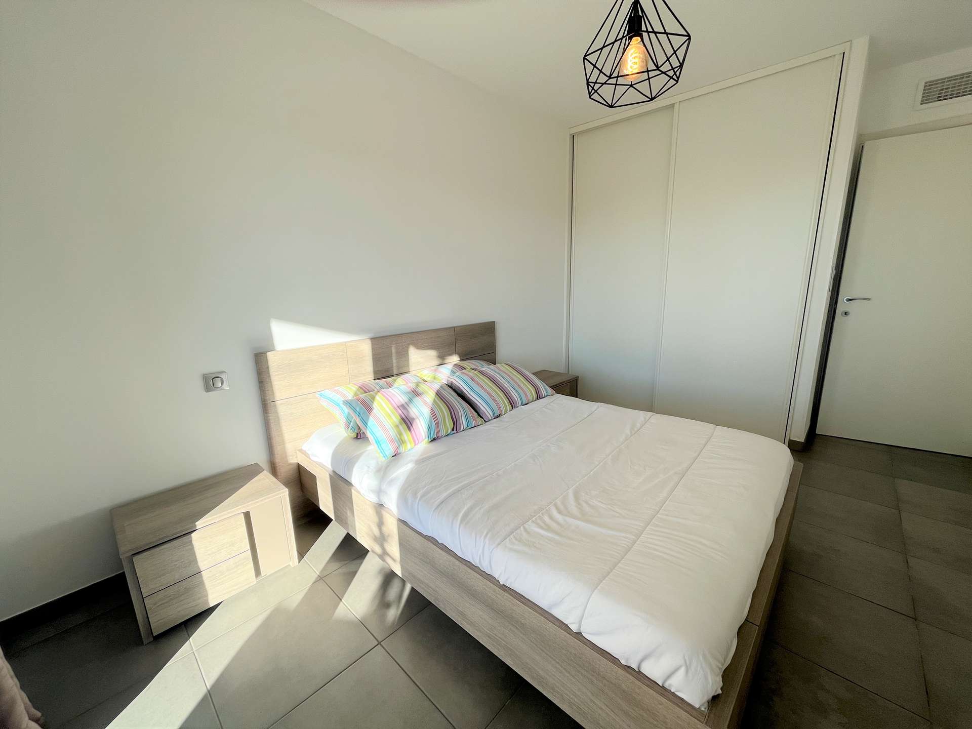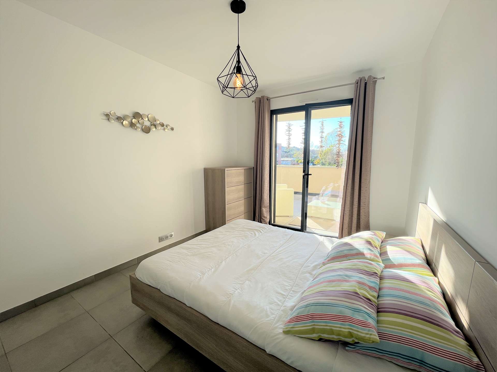 Porticcio (2A) - Résidence du Frassu - apartment N°305 2-room apartment - approximately 45 m² - up to 4 people In an idyllic setting, right in the center of the seaside resort of Porticcio, the Domaine du Frassu is in the immediate vicinity beaches, shops and boat anchorage. This new, air-conditioned apartment, located on the ground floor, is composed of a fully equipped kitchen open to the air-conditioned living room equipped with a rapido convertible sofa for 2 people (sleeps 140), all opening onto the terrace. An air-conditioned bedroom with a double bed 140 and storage space, a shower room and a separate WC complete the apartment. The advantage of this apartment: a beautiful furnished terrace of around 21m² with sea/garden view, numbered parking space. Internet included in the rental. End-of-stay cleaning, bed linen and towels are included in the price. Only kitchen towels are not provided.
