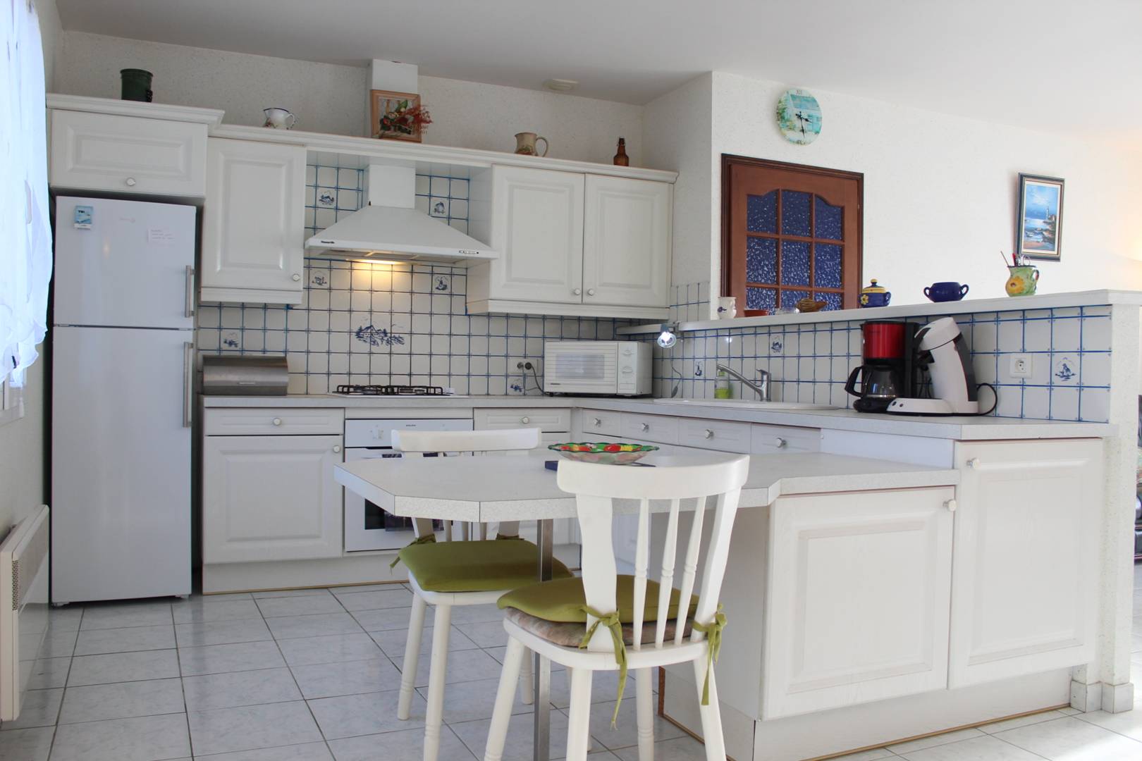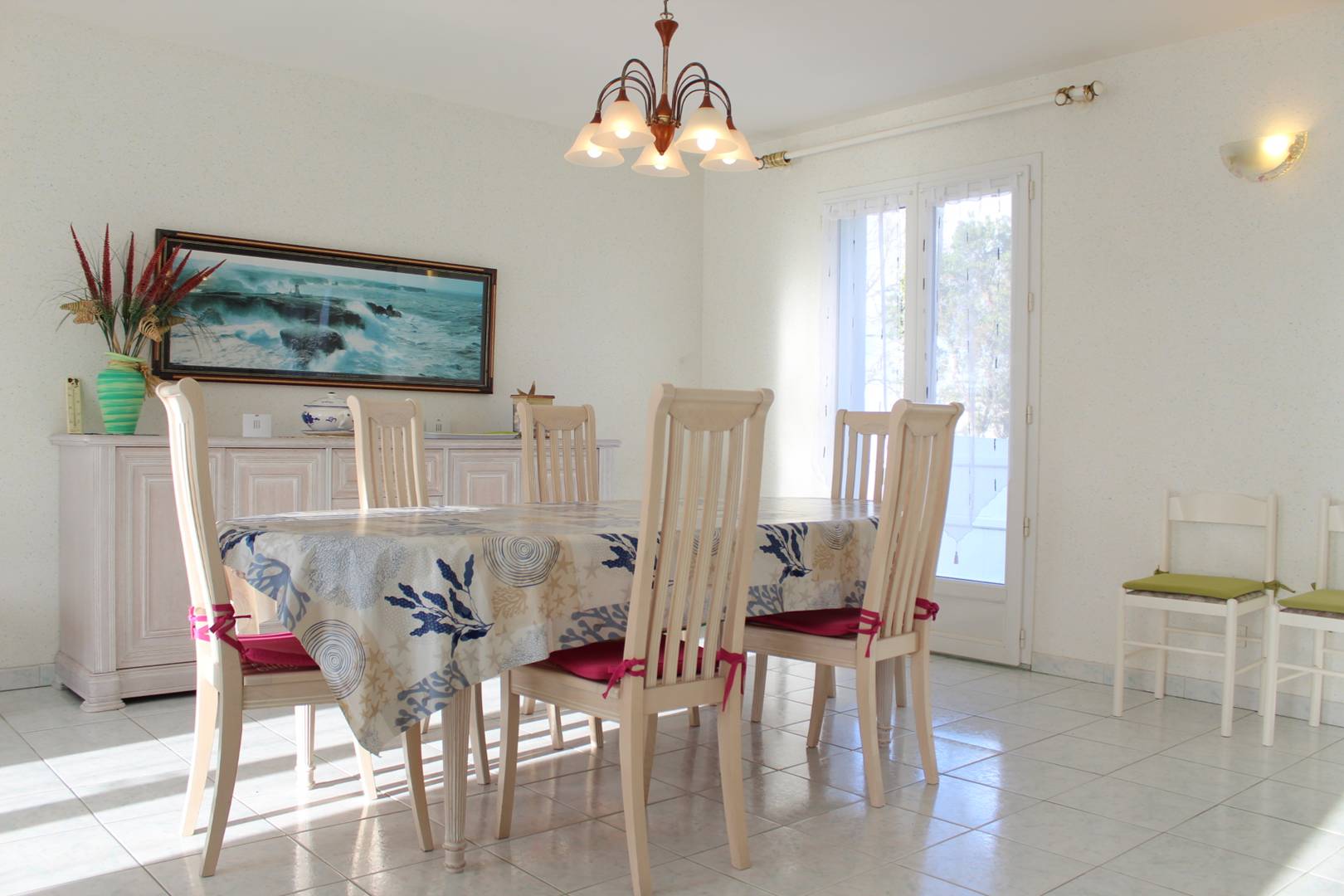 4-room house – approximately 90 m² – up to 6 people Pleasant holiday home close to the Port de la Cotinière consisting of a living room with kitchen open to the living room, a cellar with oven and washing machine , a separate toilet, a bedroom with two beds (140), a second bedroom with two beds (140), a bathroom with shower and double sink, a third bedroom with two beds ( 140), a bicycle garage. Outside, large enclosed garden with terrace and garden furniture. Parking on the property. The advantage of this rental by the sea: Close to the beach and shops, close to cycle paths and the Port de la Cotinière, cleaning included.