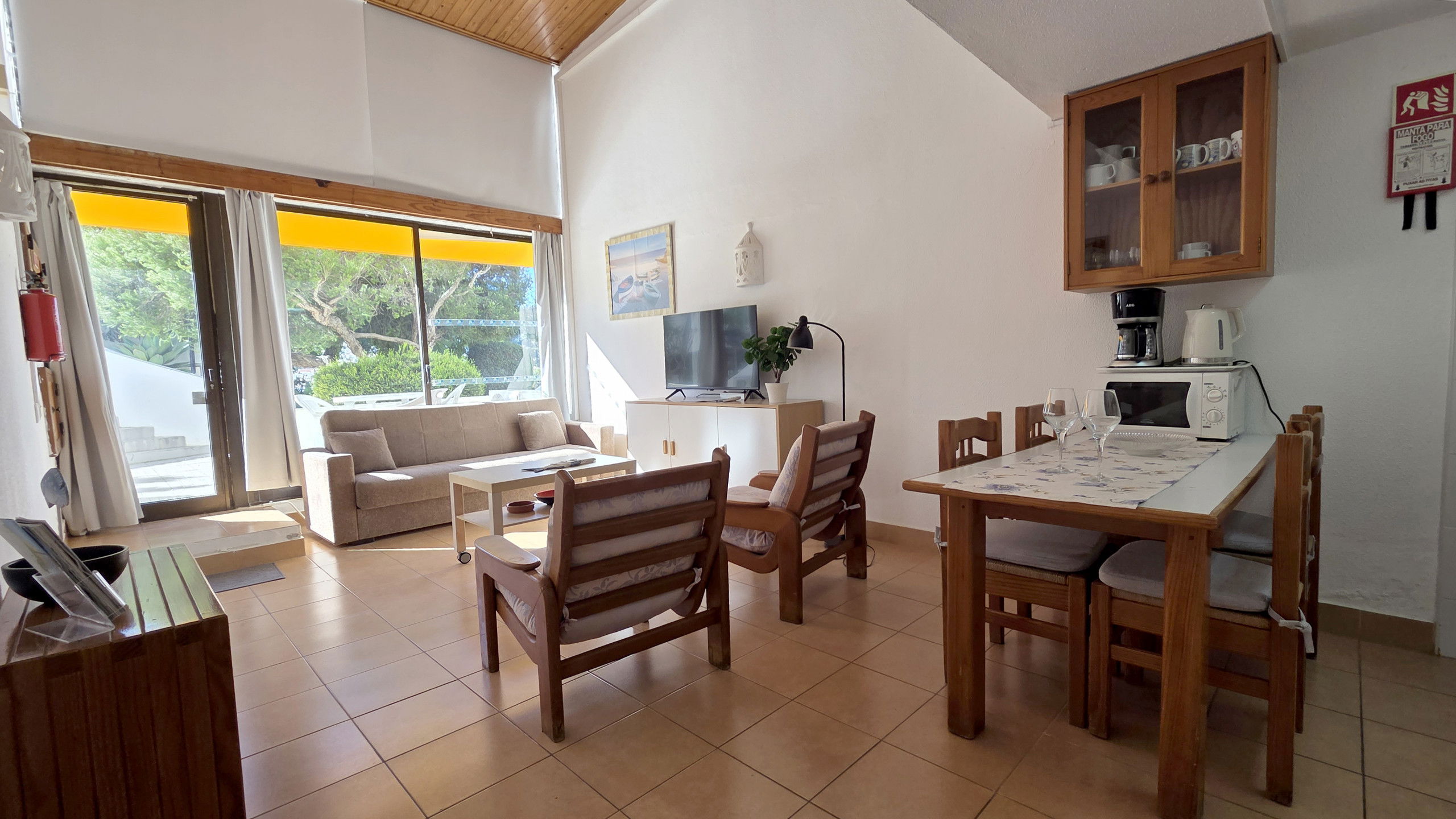 The apartment is a T1 Duplex that accommodates up to 4 people, ideal for families or small groups. It has a bedroom with two single beds and a sofa bed in the living room, ensuring comfort and flexibility during the stay.