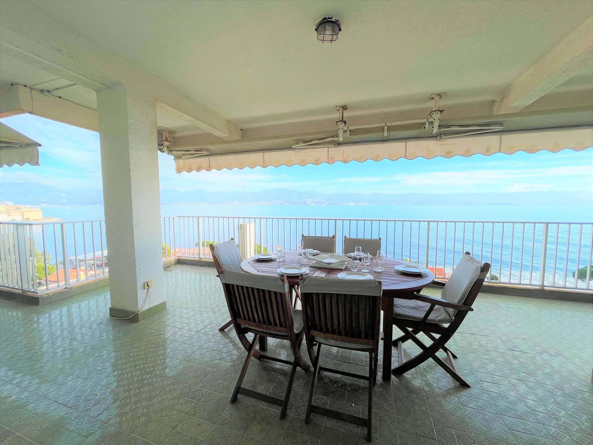 Terrace and wonderful view of the sea.