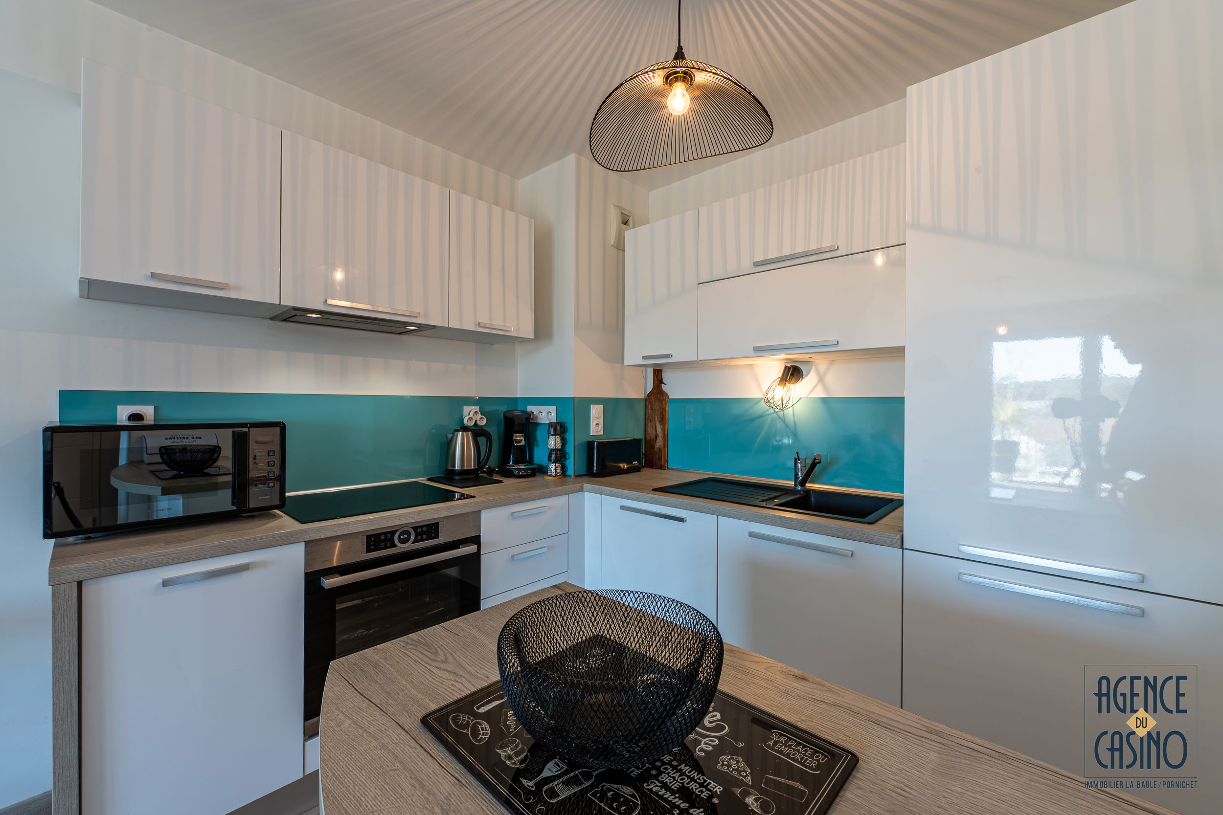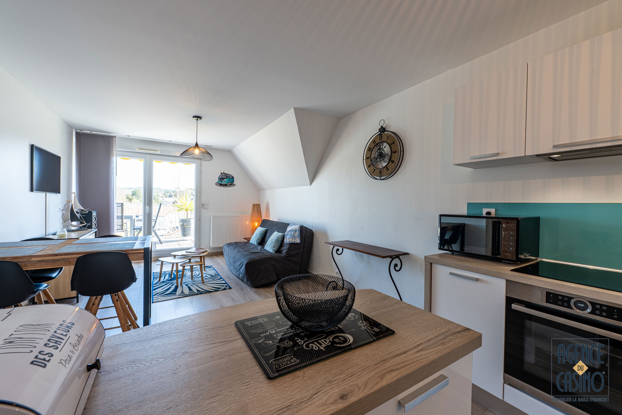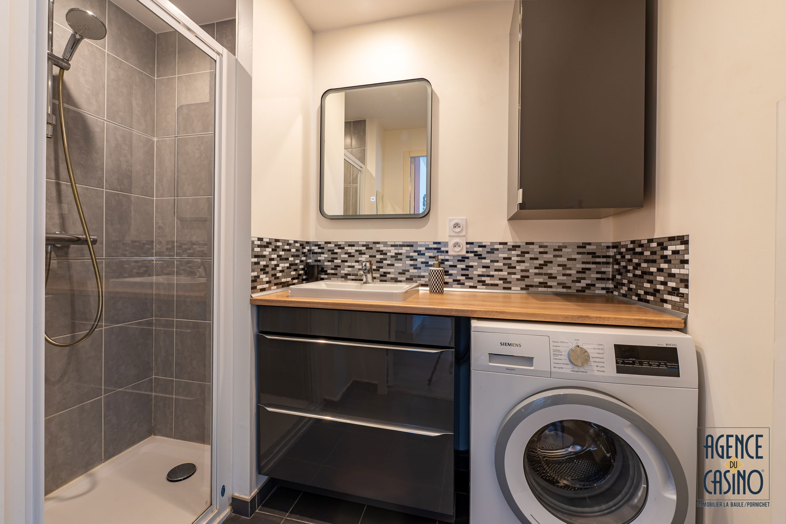 In a pretty new residence in a pleasant environment, come and enjoy this pretty 2-room apartment for your holidays. 18 minutes walk from the beach in a new residence this apartment includes: Entrance with large closet / wardrobe - WC - Living room with sofa bed BZ 160/190, flat screen TV, enclosure and open onto South / South-East terrace with awning - Open kitchen with microwave, oven, induction hob, extractor, toaster, kettle, Senseo coffee maker, fridge/freezer, dishwasher - Bedroom with 140/190 bed with cupboard opening onto the terrace - Bathroom with shower and washing machine. Underground car park n°18.