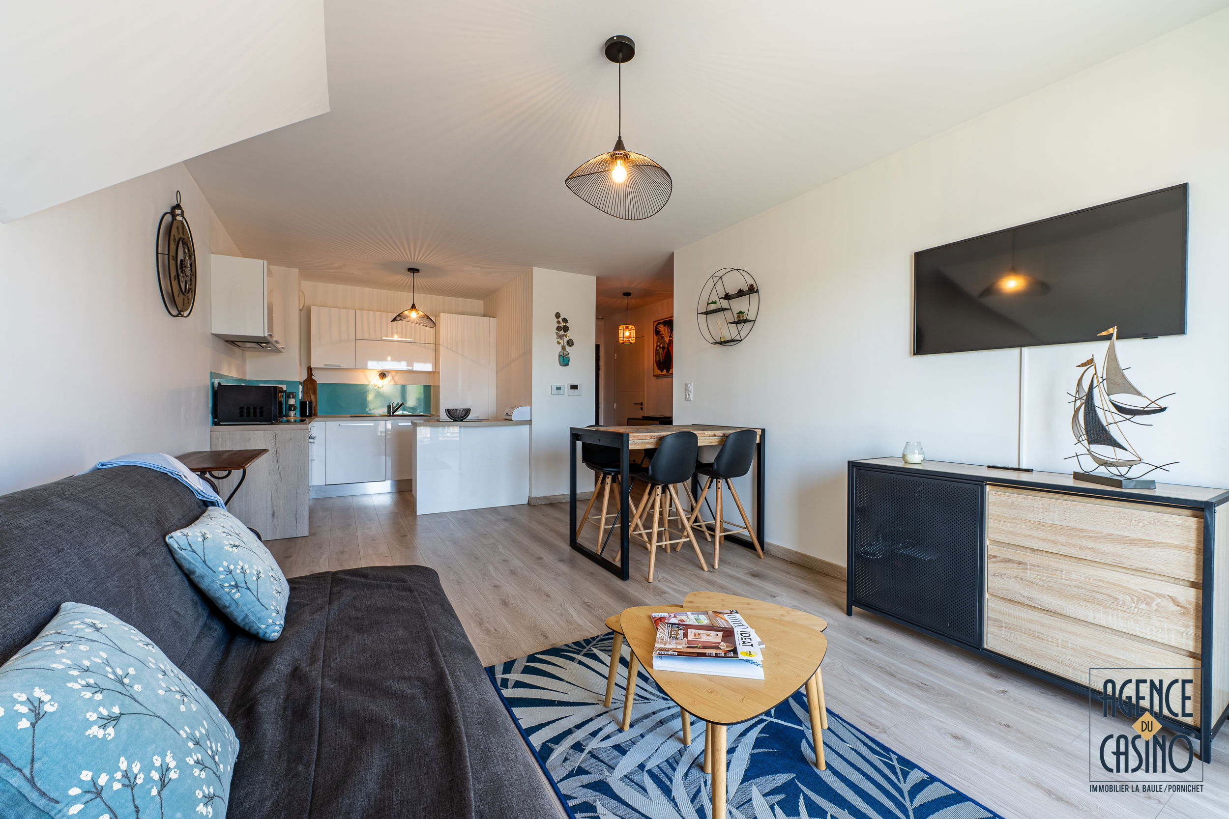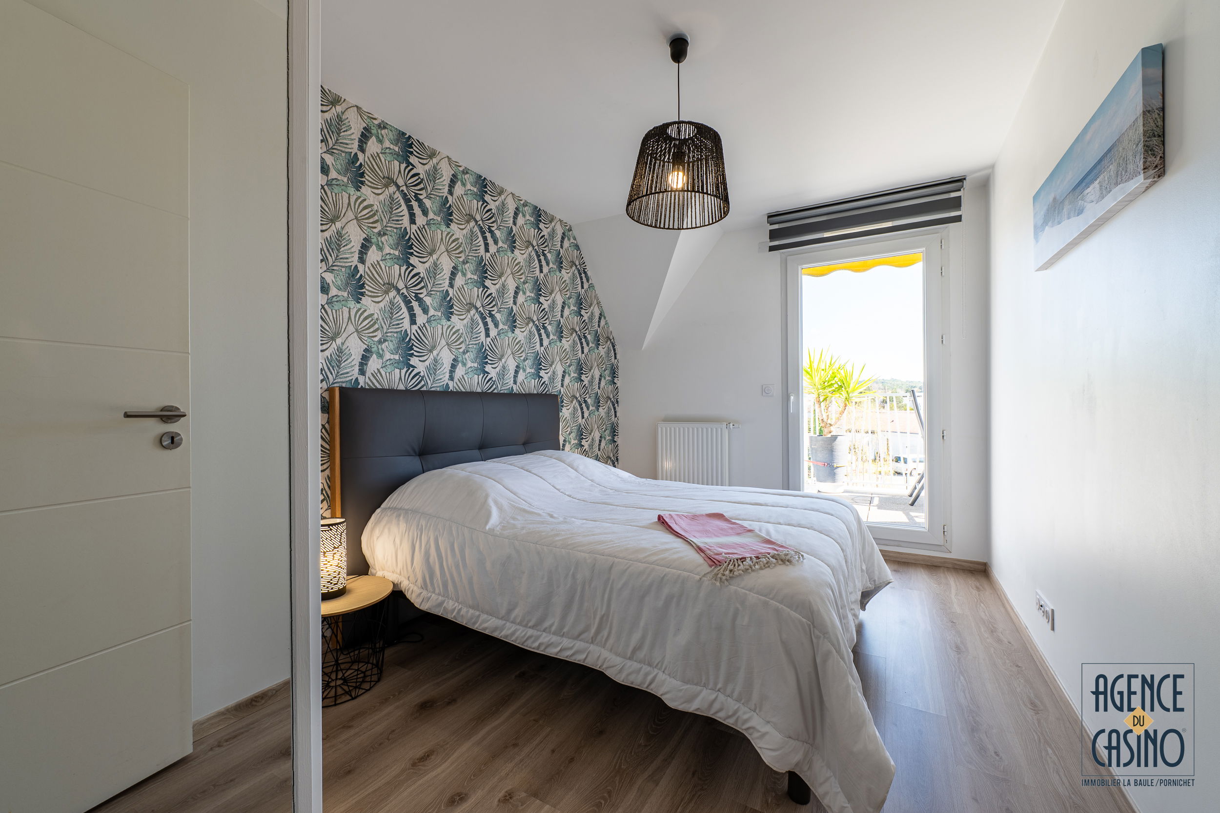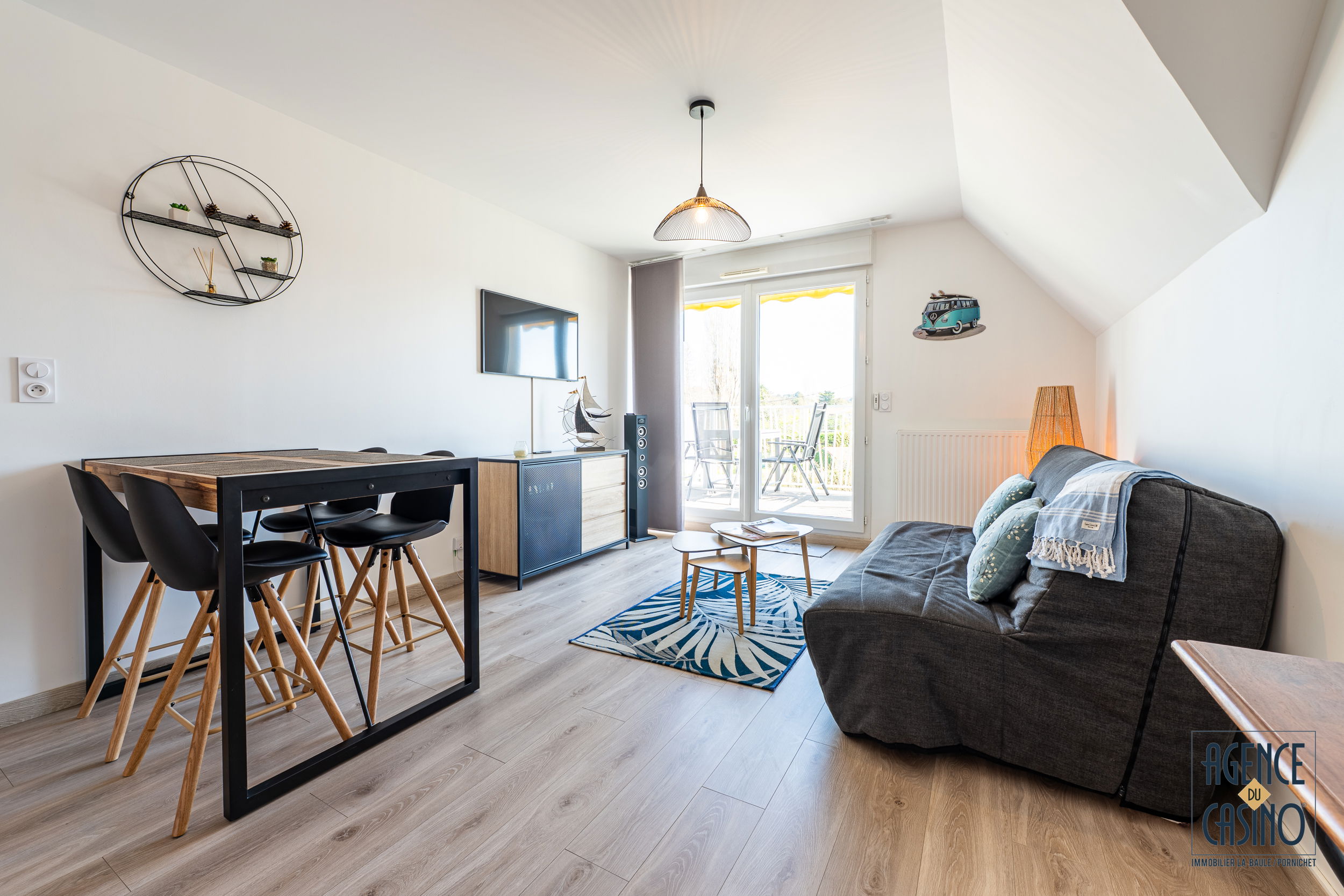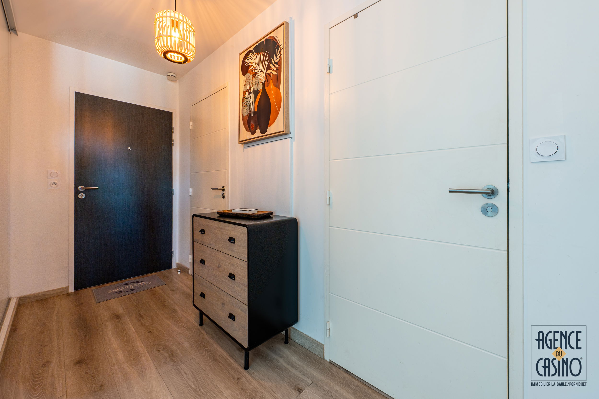 In a pretty new residence in a pleasant environment, come and enjoy this pretty 2-room apartment for your holidays. 18 minutes walk from the beach in a new residence this apartment includes: Entrance with large closet / wardrobe - WC - Living room with sofa bed BZ 160/190, flat screen TV, enclosure and open onto South / South-East terrace with awning - Open kitchen with microwave, oven, induction hob, extractor, toaster, kettle, Senseo coffee maker, fridge/freezer, dishwasher - Bedroom with 140/190 bed with cupboard opening onto the terrace - Bathroom with shower and washing machine. Underground car park n°18.