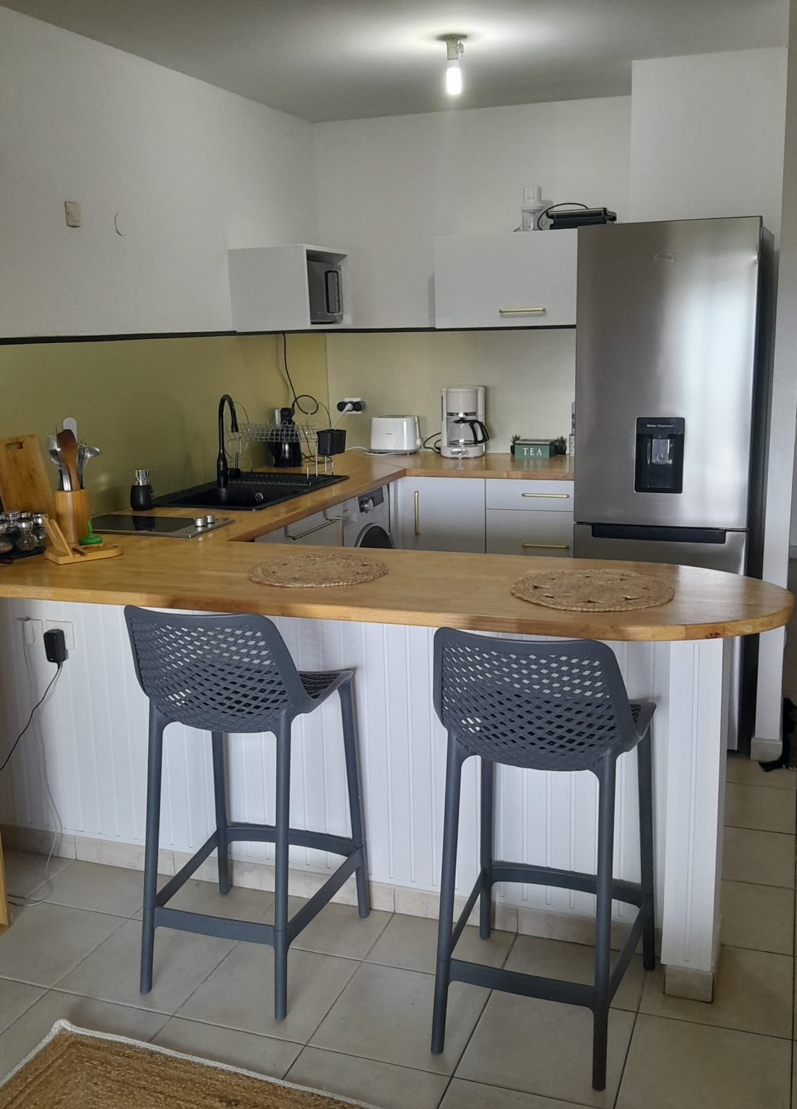 Very nice apartment furnished with taste and care. A very well equipped American kitchen with bar overlooking the living room. A beautiful terrace with sea view to enjoy the outside comfortably and in all quietness with a BBQ. An air-conditioned room furnished with a bed in 160. An airy shower room with toilet.