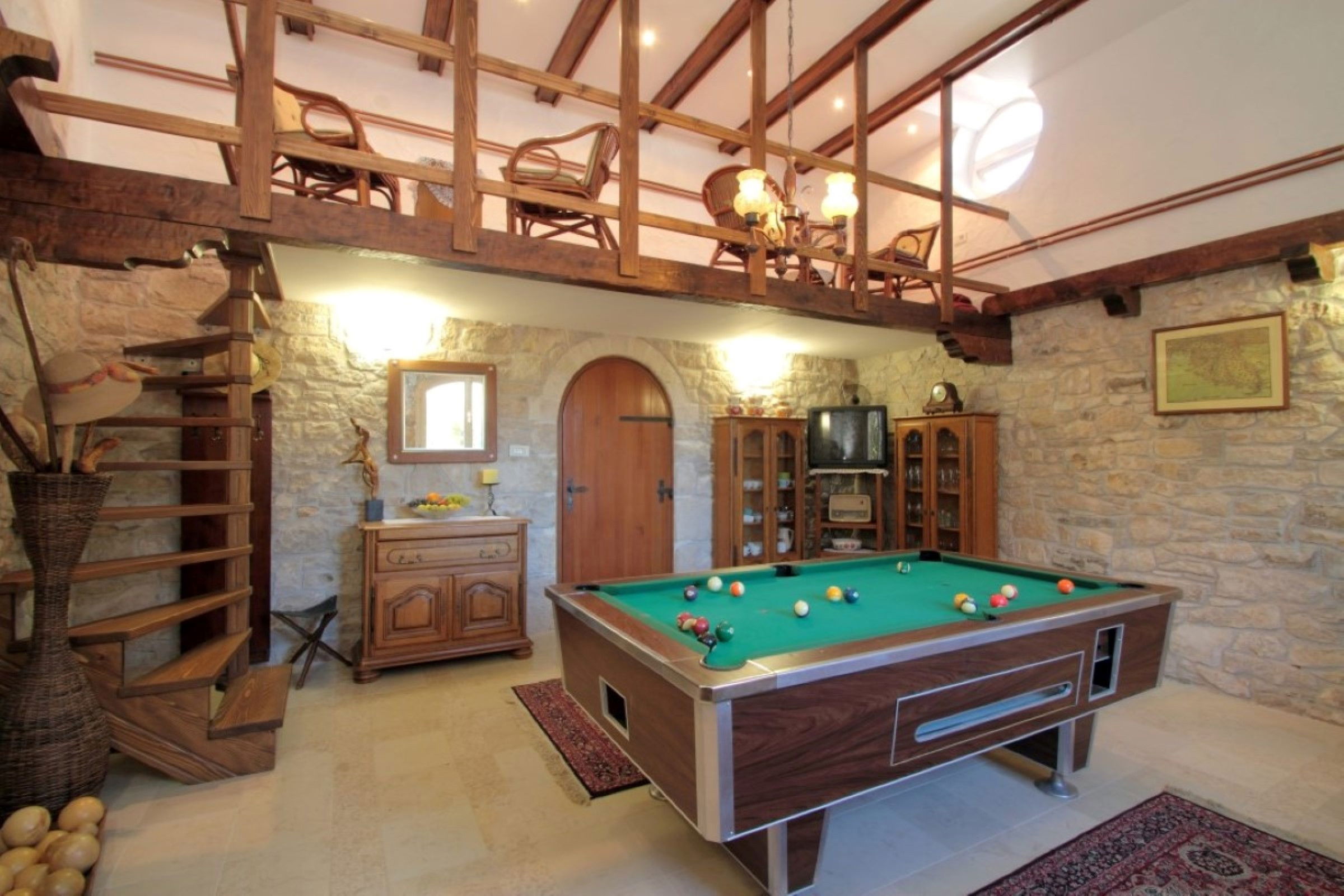 - **Living area:** Cozy living room with **pool table** and **dartboard** for fun evenings