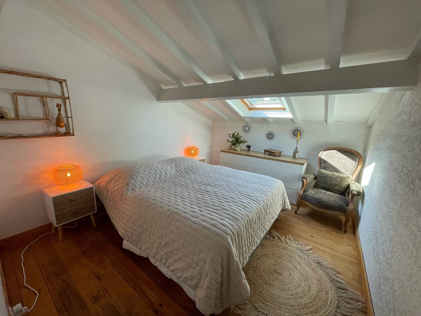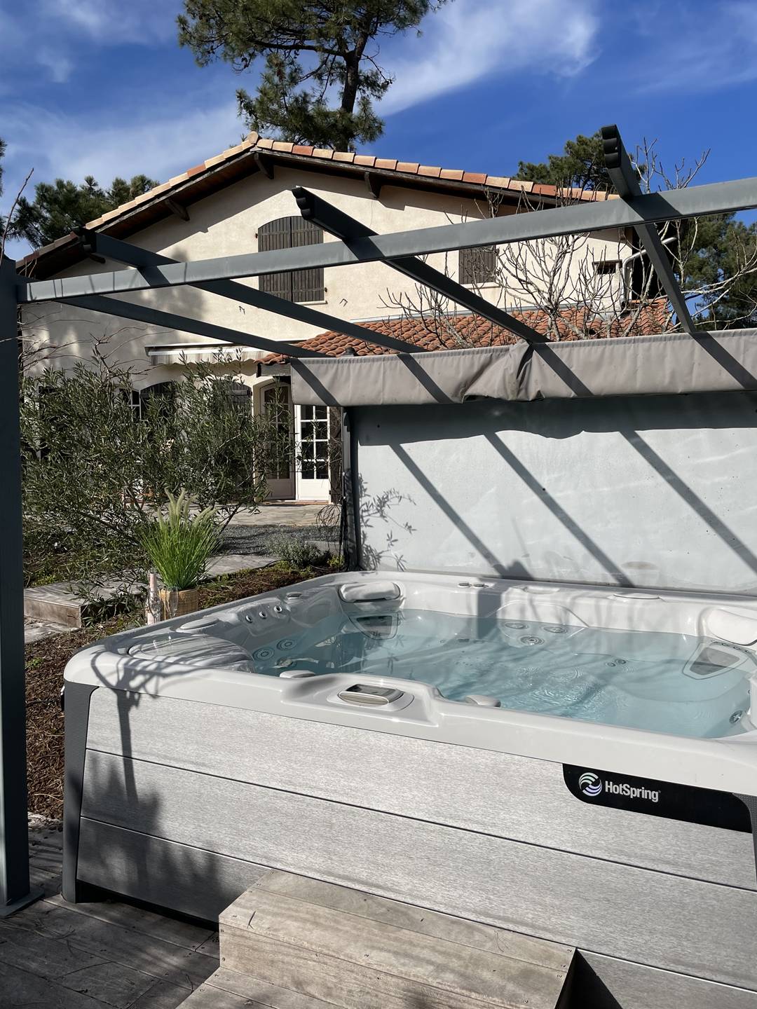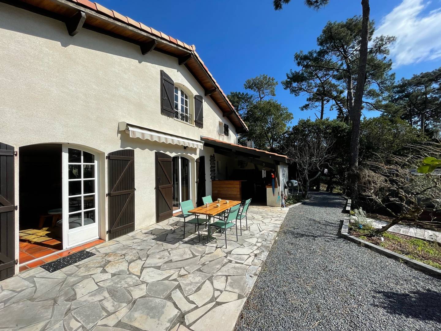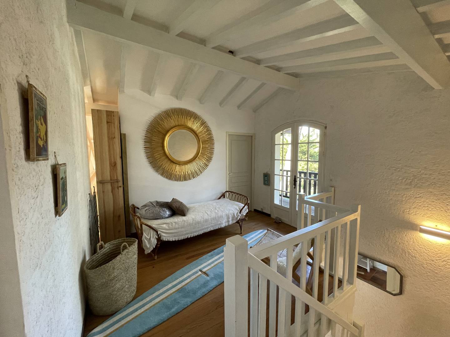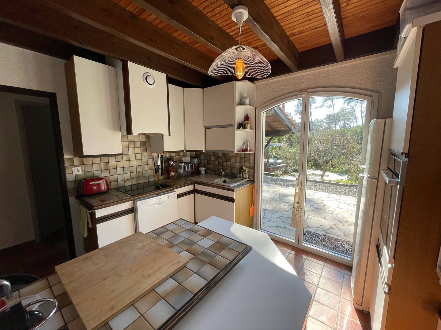 On the floor, you have 4 attic bedrooms: 3 with double beds 160 cm and 1 single bed 90 cm (+ umbrella bed + high chair), an independent toilet with washing machine, and a patio overlooking balcony facing north. The house is in height without vis-à-vis, and you benefit from an ideal exposure to enjoy the sun all day. Enjoy your terrace with outdoor kitchen, jacuzzi for 7 people (high-end HotSpring massages), bowling and table tennis. This accommodation also includes a secure parking space. Reach shops, restaurants, surf schools at 500m, the beach at 500m, the golf at 1.5km and the lake at 5km (REF 05029). ANCV holiday checks accepted. BED AND TOILET LINEN IS NOT PROVIDED.