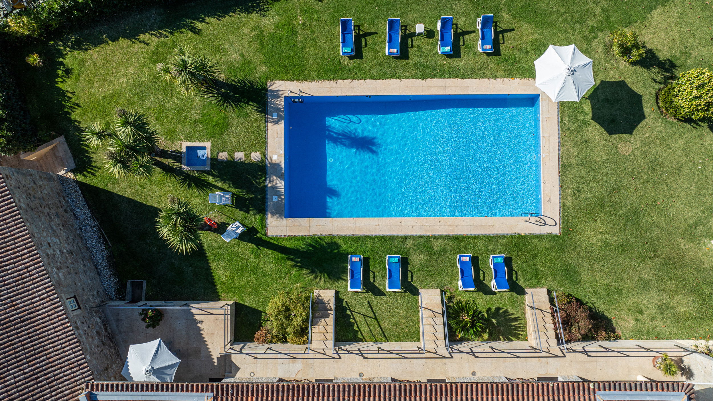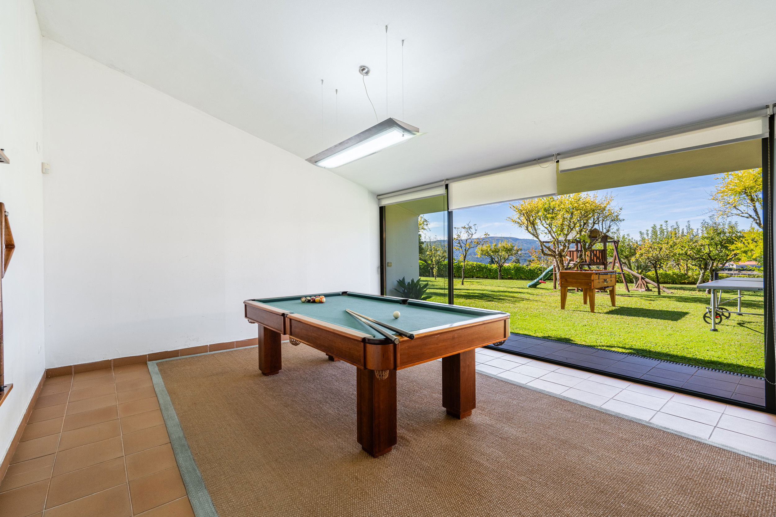 Ample sunbathing terraces, lawns and flowerbeds surround the pool (12 X 6.5 metres). The depth is from 1.45 to 2.20 metres. Pool side shower, excellent covered barbecue area, toilet, games room with pool table, table tennis and football table. Private parking.
