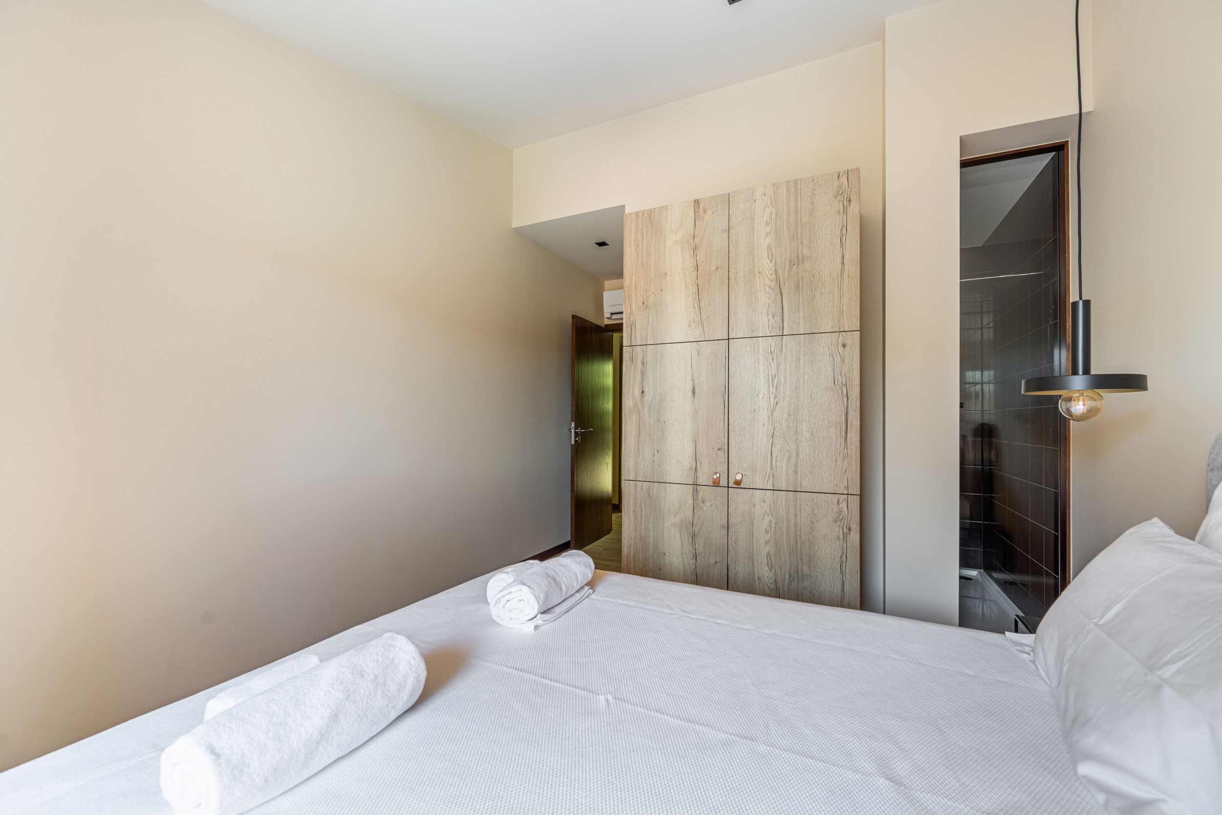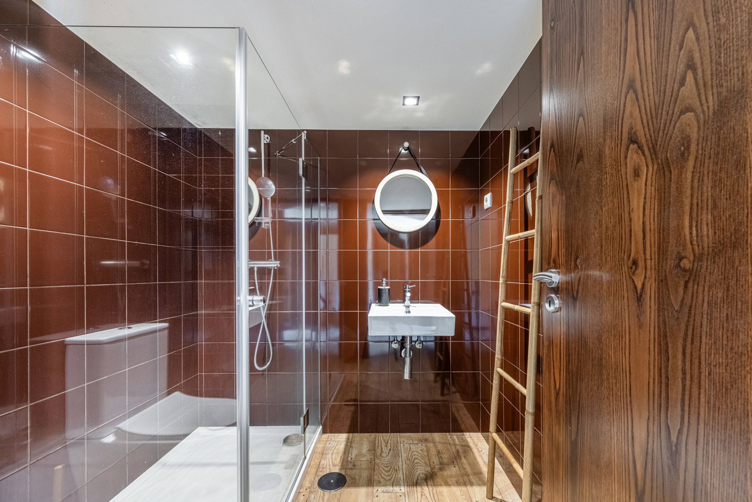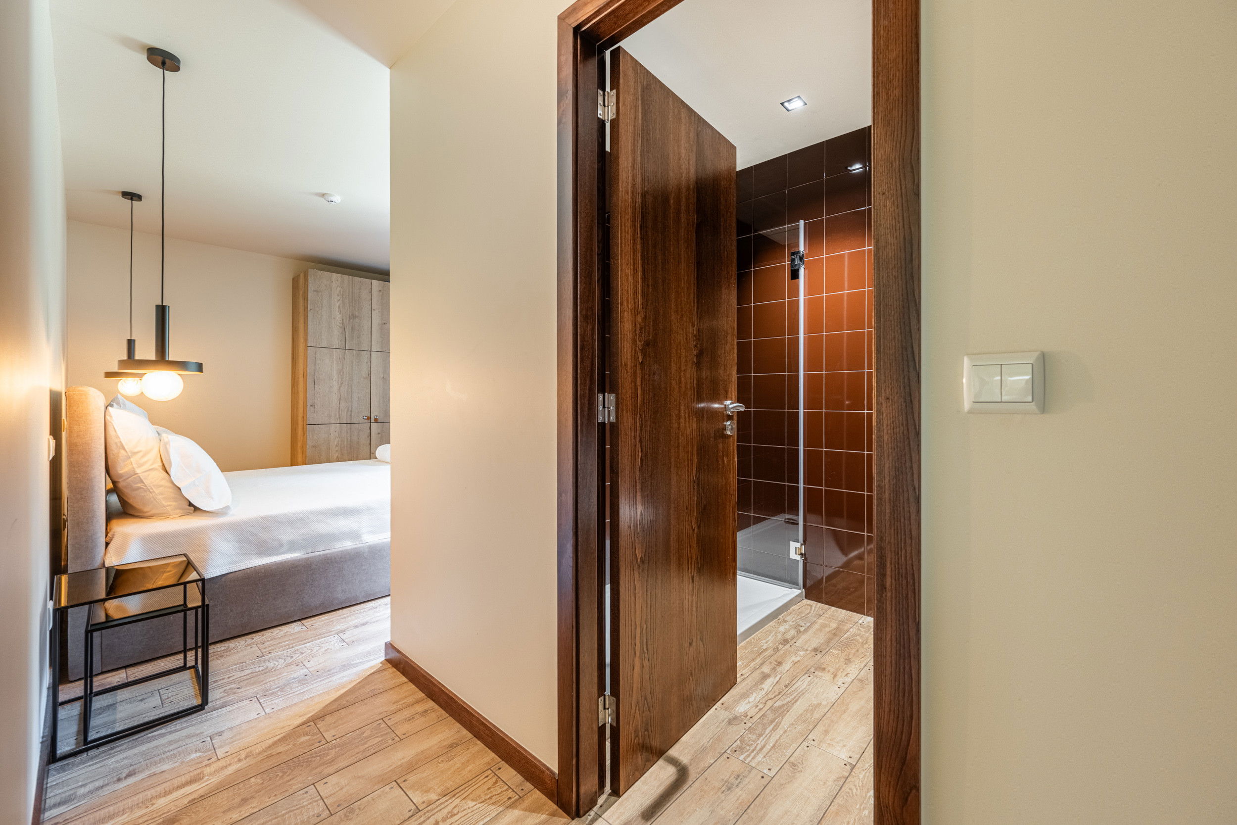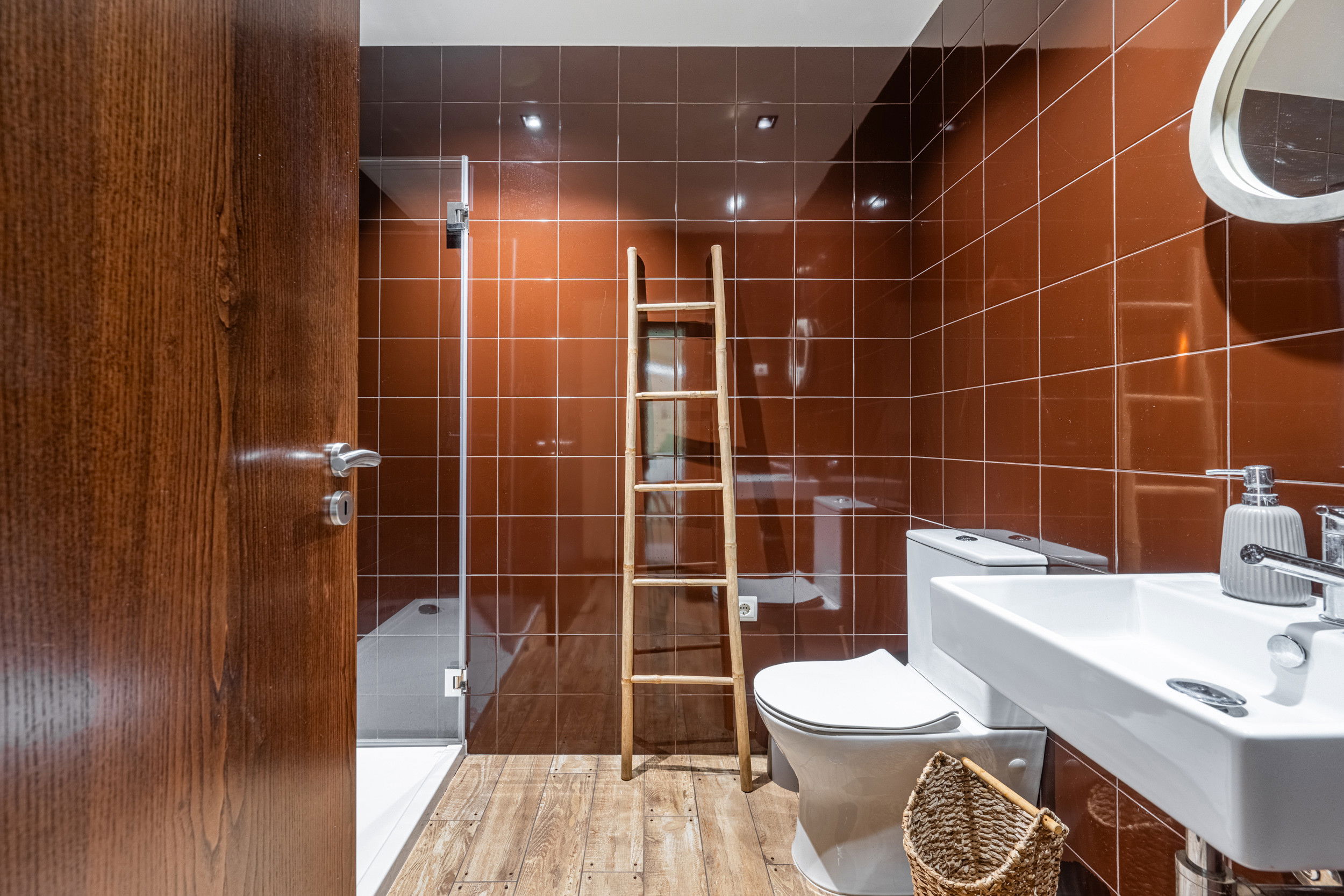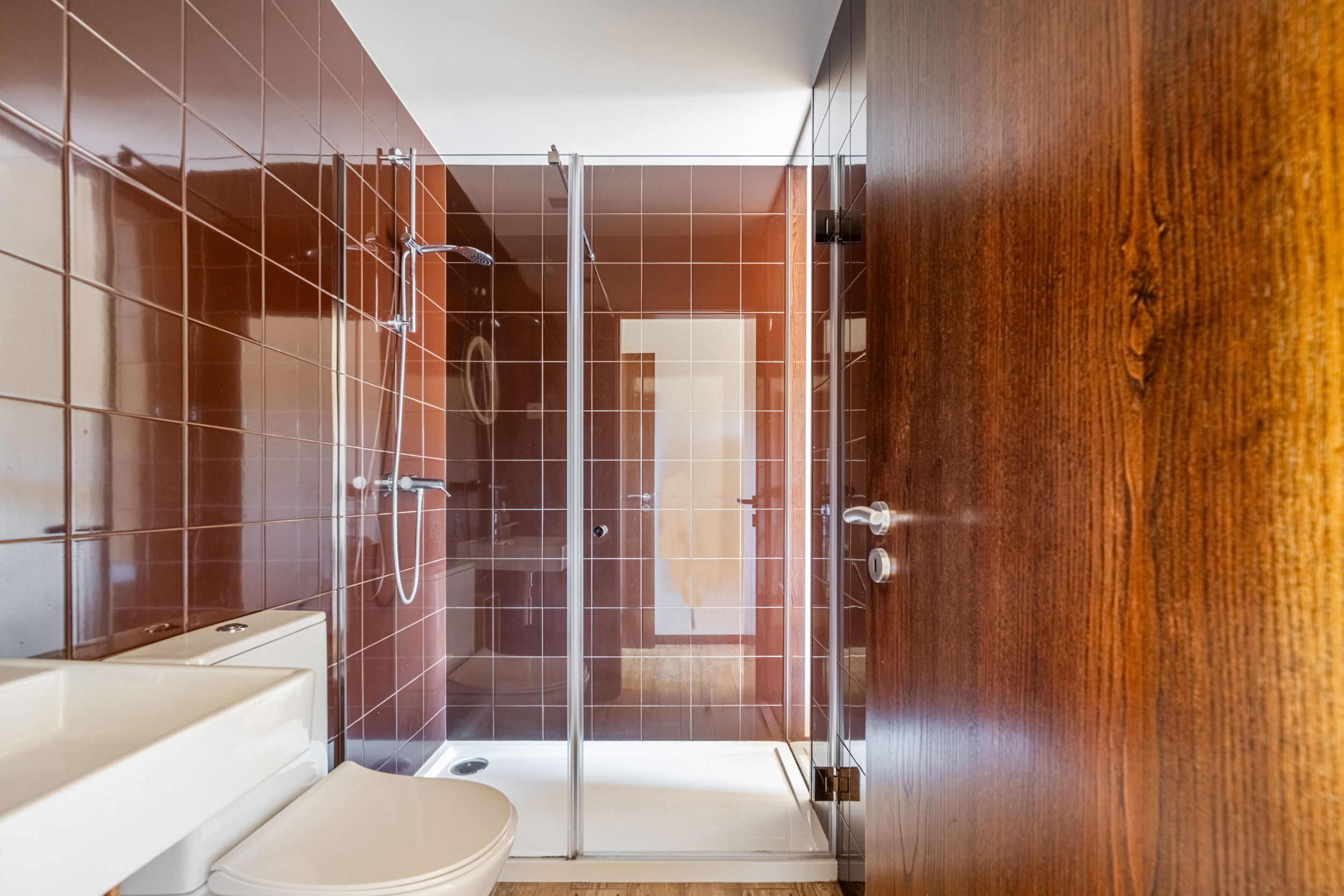 Lower floor: Fully fitted modern open plan kitchen with dining table and doors opening onto a south facing terrace ideal for alfresco meals. Comfortable and tastefully decorated living room with TV. Guest toilet. Upper floor: 3 double bedrooms each with an ensuite shower room. Large family suite with double bed and flight of steps leading to a mezzanine floor with 2 individual beds making the room suitable for 4 people. Private shower room.