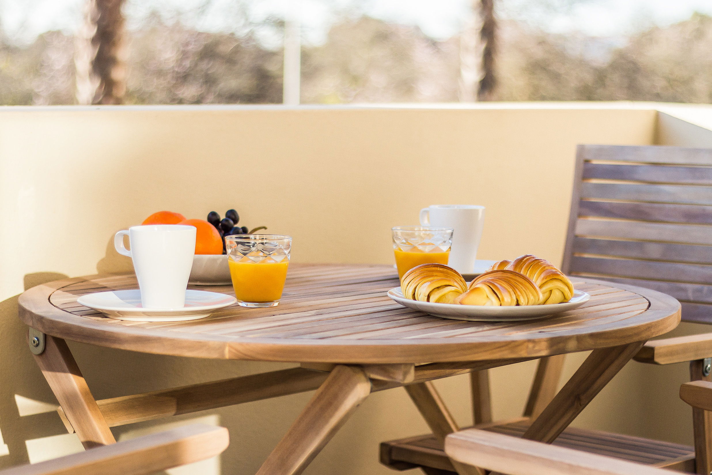 ✔ West-facing balcony with garden furniture, overlooking the outside of the complex