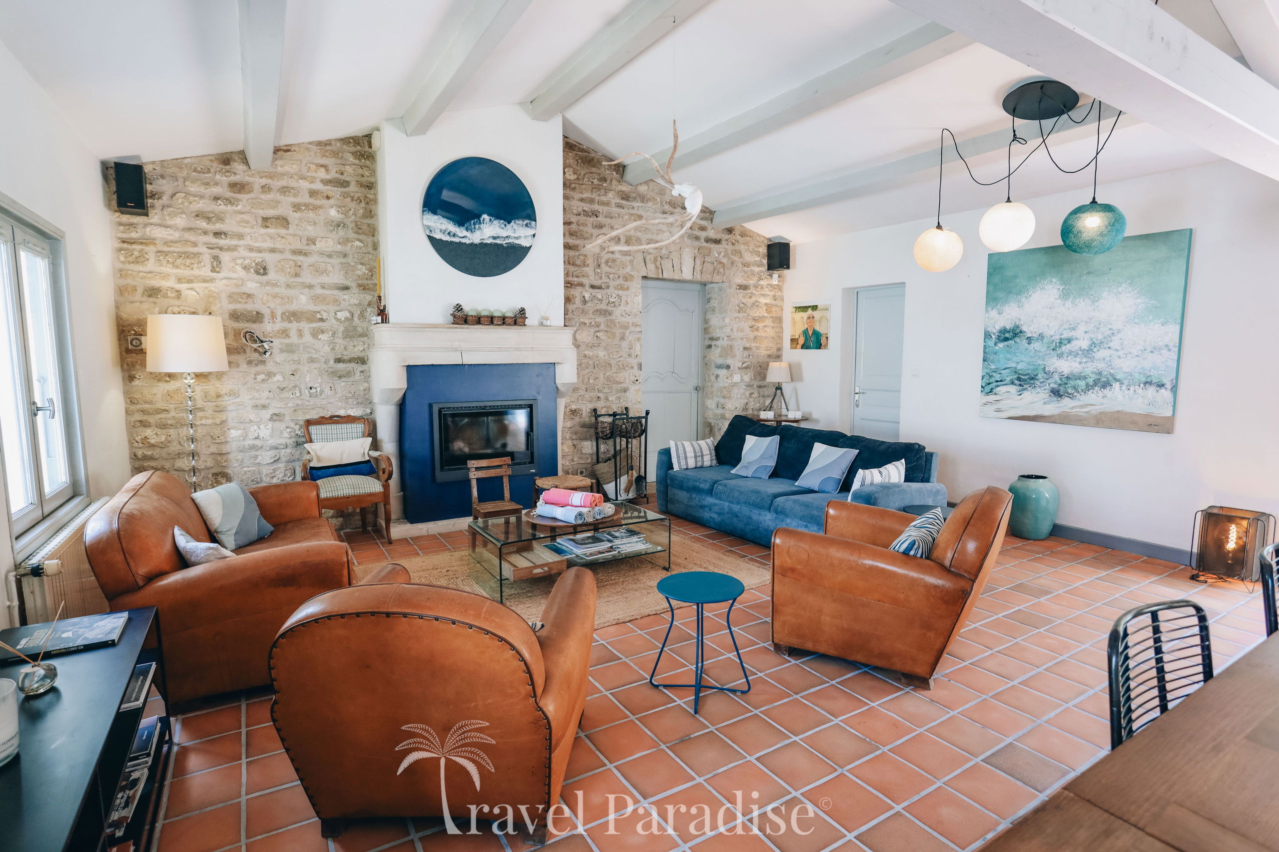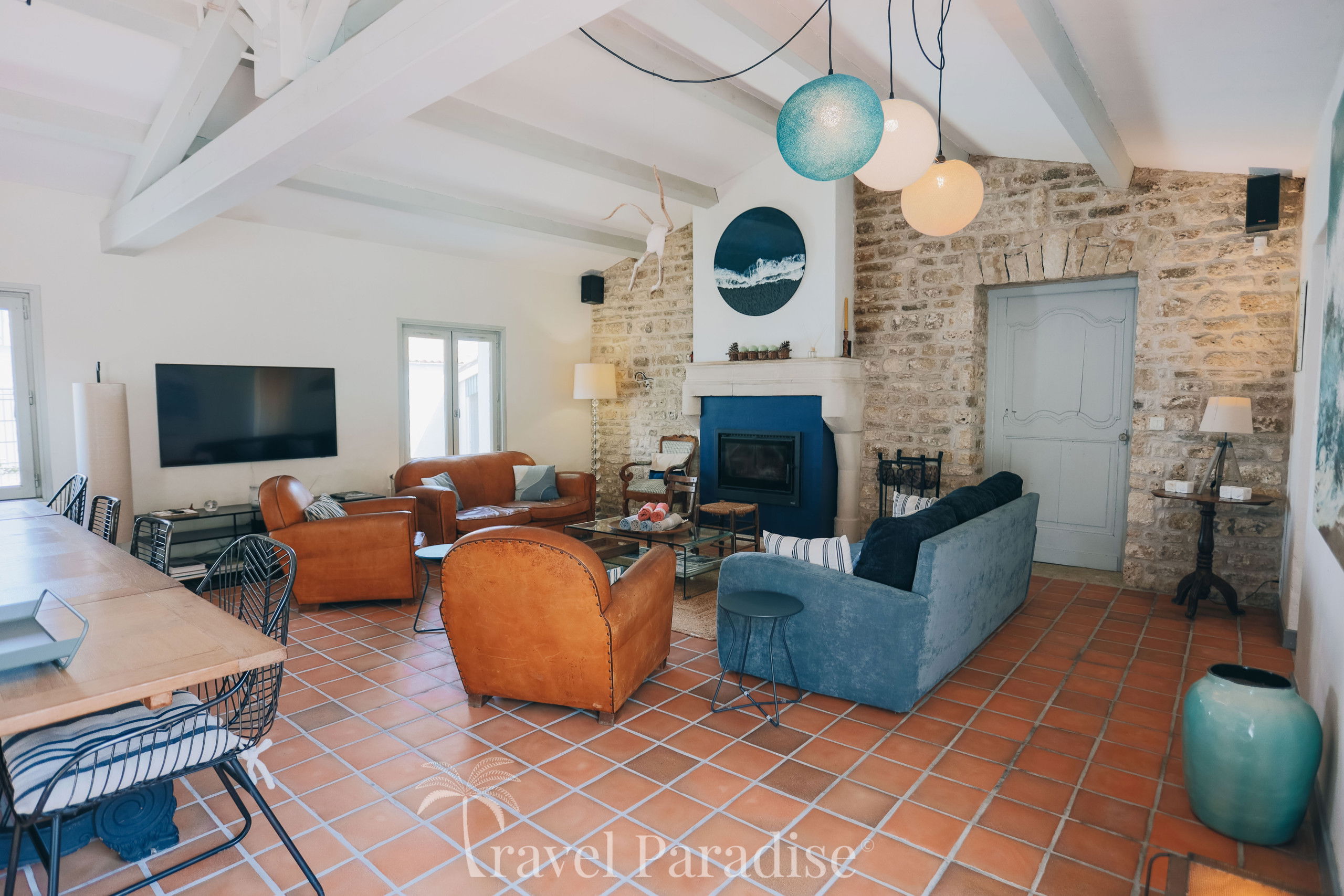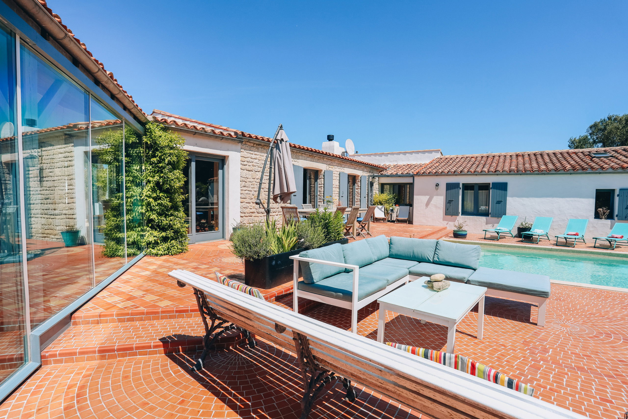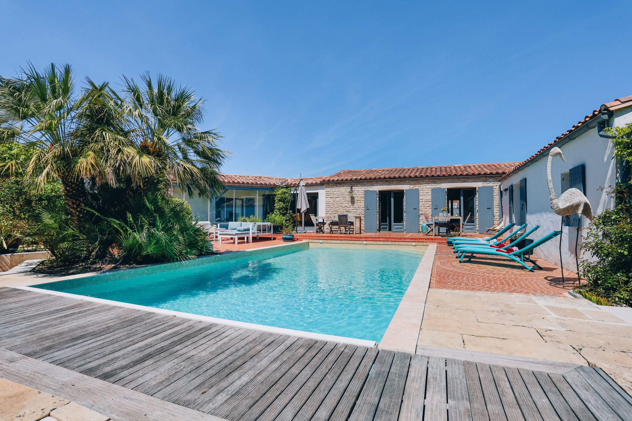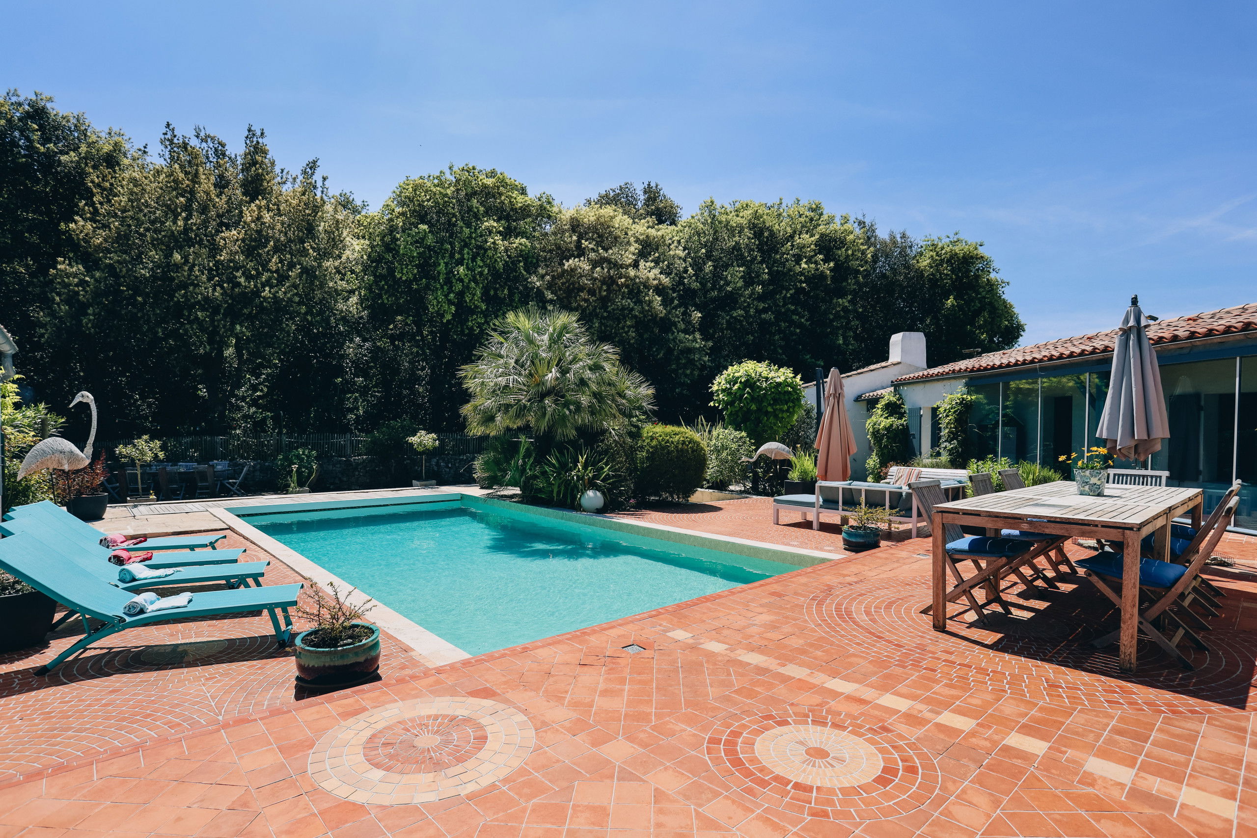 Villa Foulquier, located on the Ile de Ré in a green setting in Rivedoux, will satisfy you for a luxury rental with its heated swimming pool. The numerous outdoor terraces, the relaxation areas and the large garden will allow you to enjoy the sunny days in this artist's house.