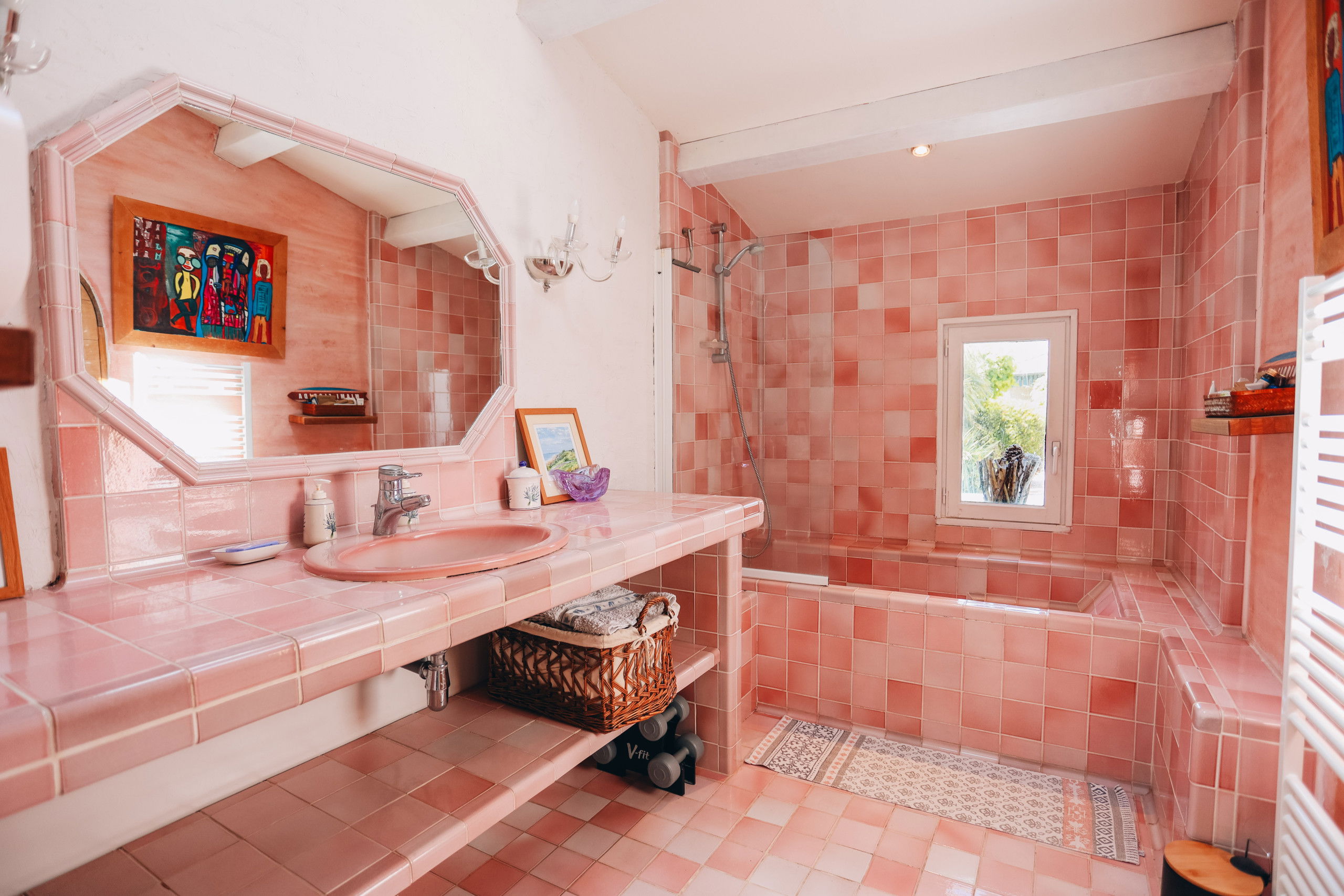This house, entirely on one level and approximately 400m², has many artistic touches with its tree-lined and flowery paths, the mosaic swimming pool, the terrace in the shape of a boat with its barbecue as a fireplace and much more.