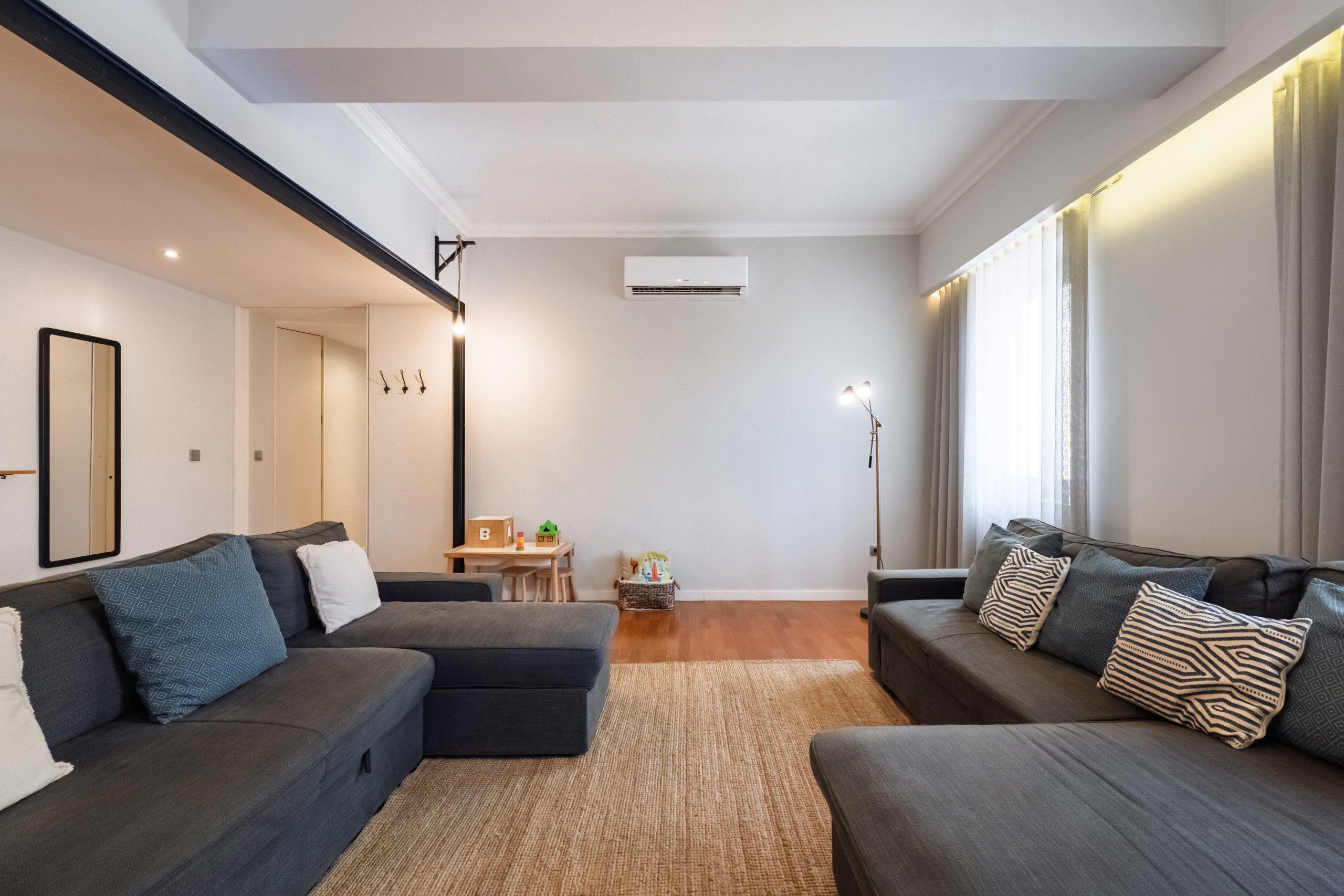 The dining room and living room have the necessary comfort for dinners and social gatherings with family or friends. The sofas are also a solution for more numerous groups and can be prepared as sofa beds. This apartment is equipped with high-speed Wi-fi, 5 TVs, satellite TV and air conditioning.