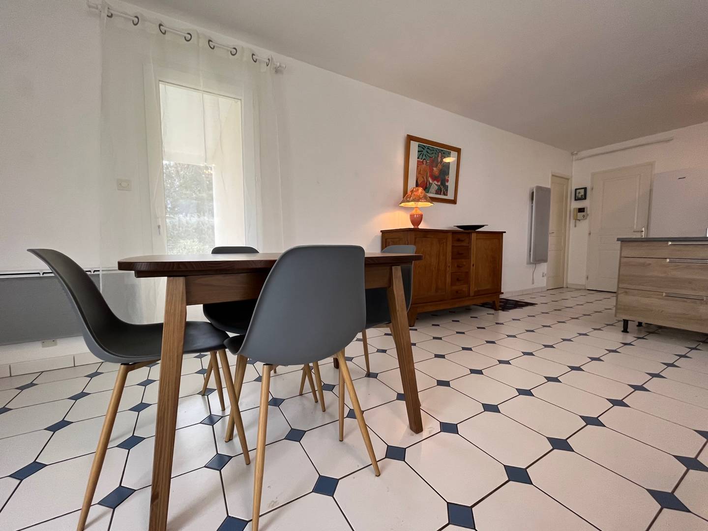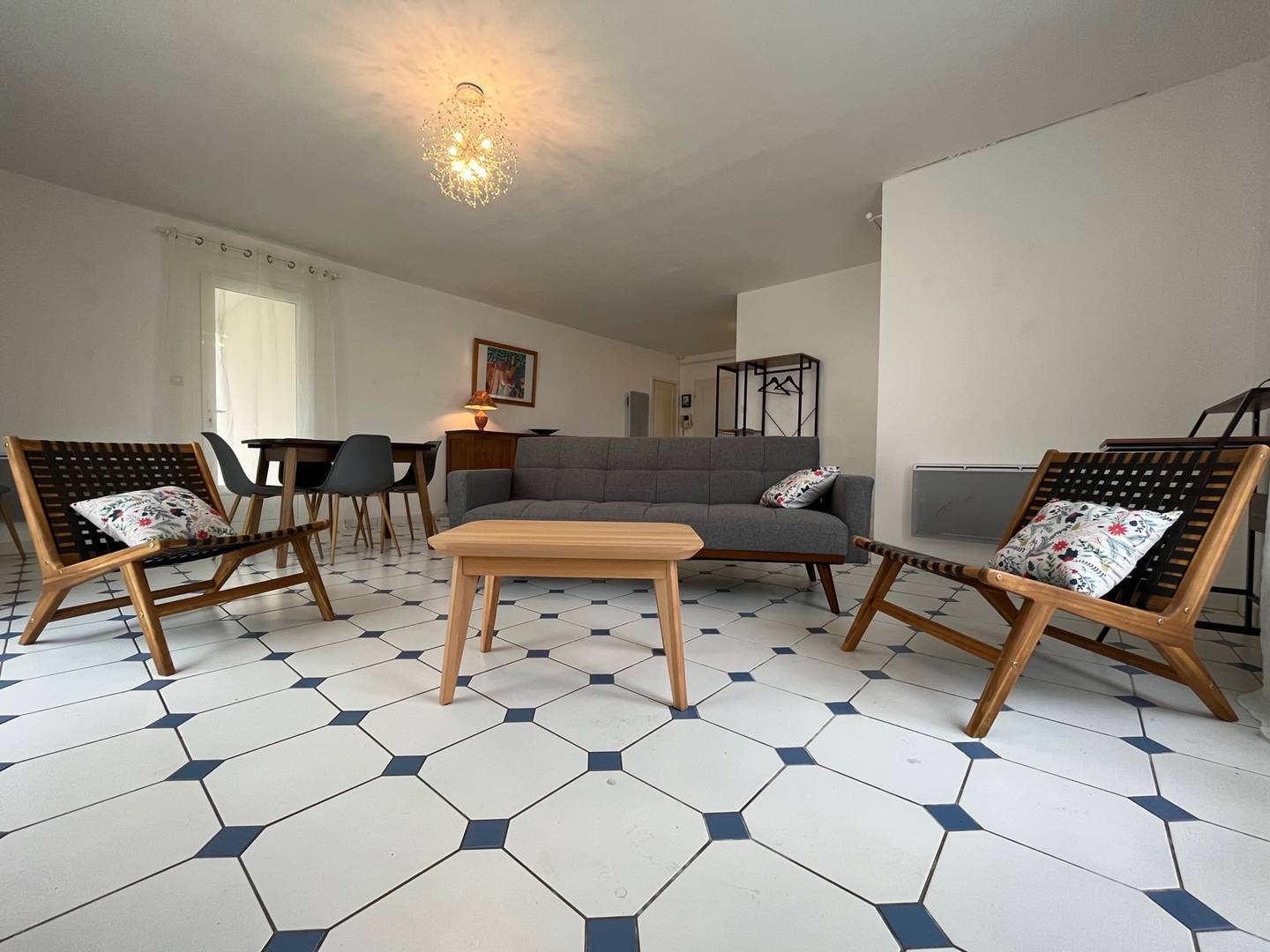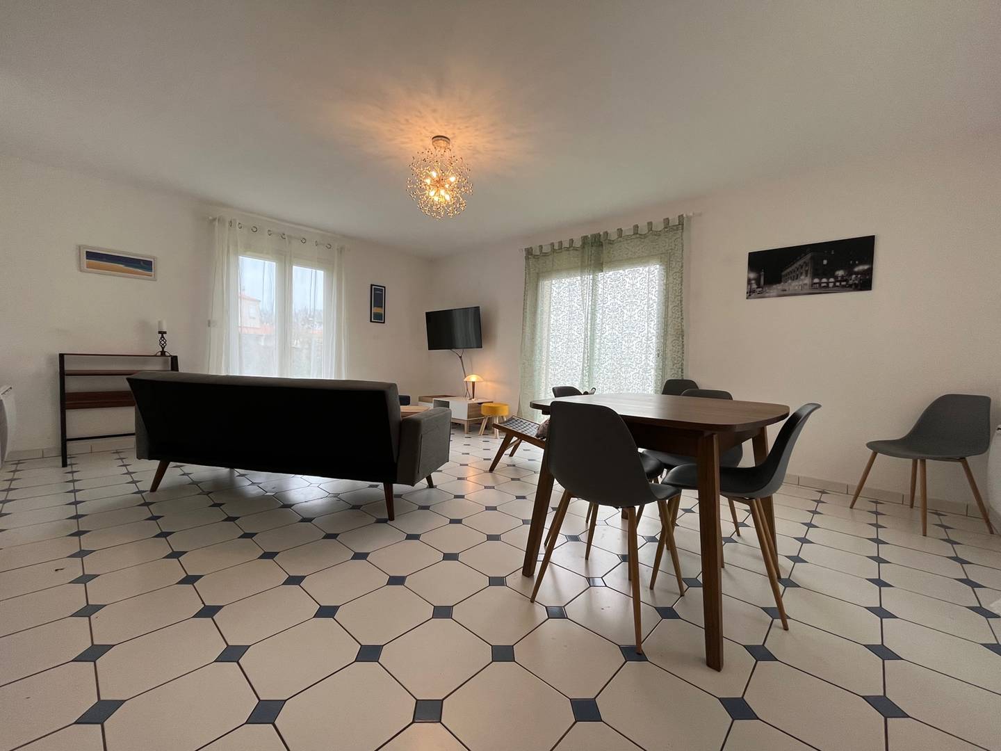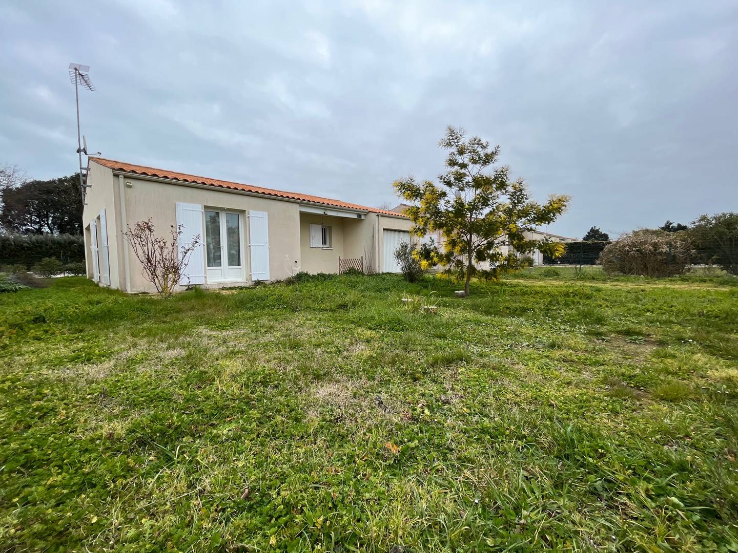 Saint Georges d'Oleron (17) - Chéray 3-room house - approximately 80 m² - up to 5 people Pleasant house with new furniture (2023) in the heart of the village consisting of an entrance to the living room with a convertible sofa bed (120), an open fitted and equipped kitchen, a bedroom with a double bed (140) and storage, a second bedroom with two beds, a bunk bed (2x90) and a large closet with wardrobe , a bathroom and separate toilet, a garage for storage only with washing machine and dishwasher. Outside a small covered terrace and an enclosed garden with garden furniture and barbecue. Parking on the ground. The plus of this rental by the sea: close to shops and cycle paths, recent furniture, cleaning included.