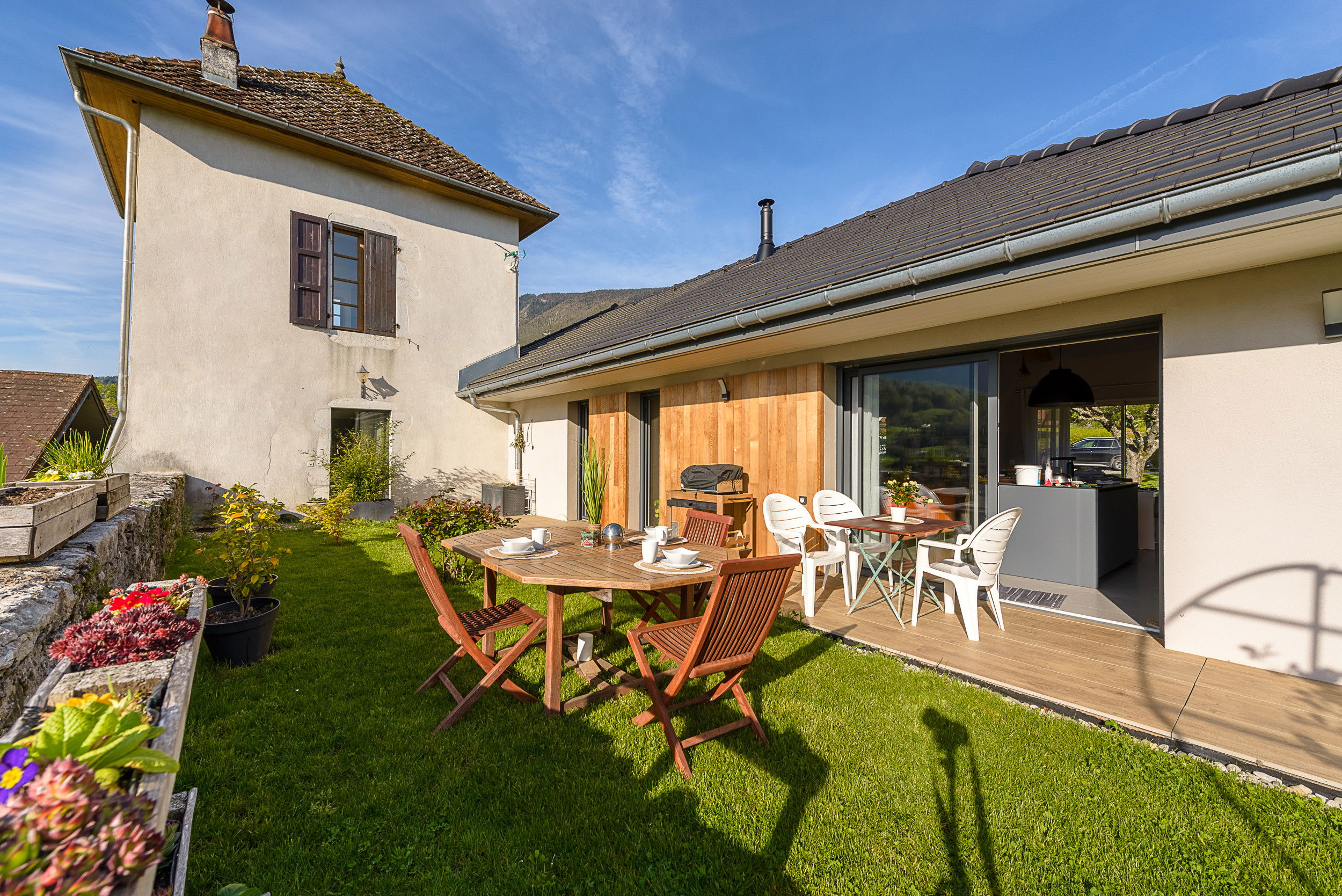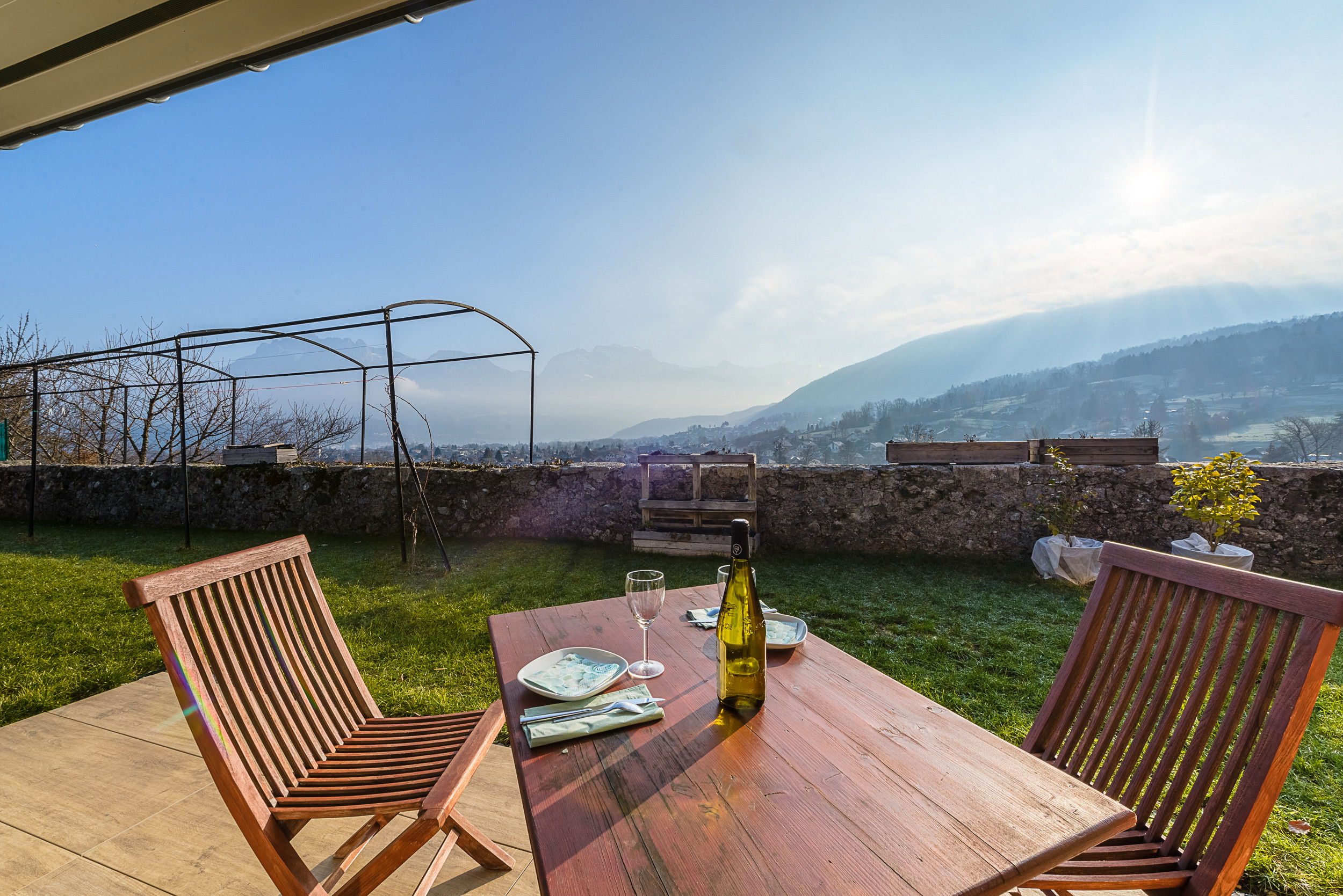 Ideally located in Saint-Jorioz, you will be able to enjoy the sunrise from early morning while having your breakfast on the terrace. But also cooler evenings, enjoying a cocktail with family or friends while admiring the lake view. And all this thanks to its two terraces on either side of the house.