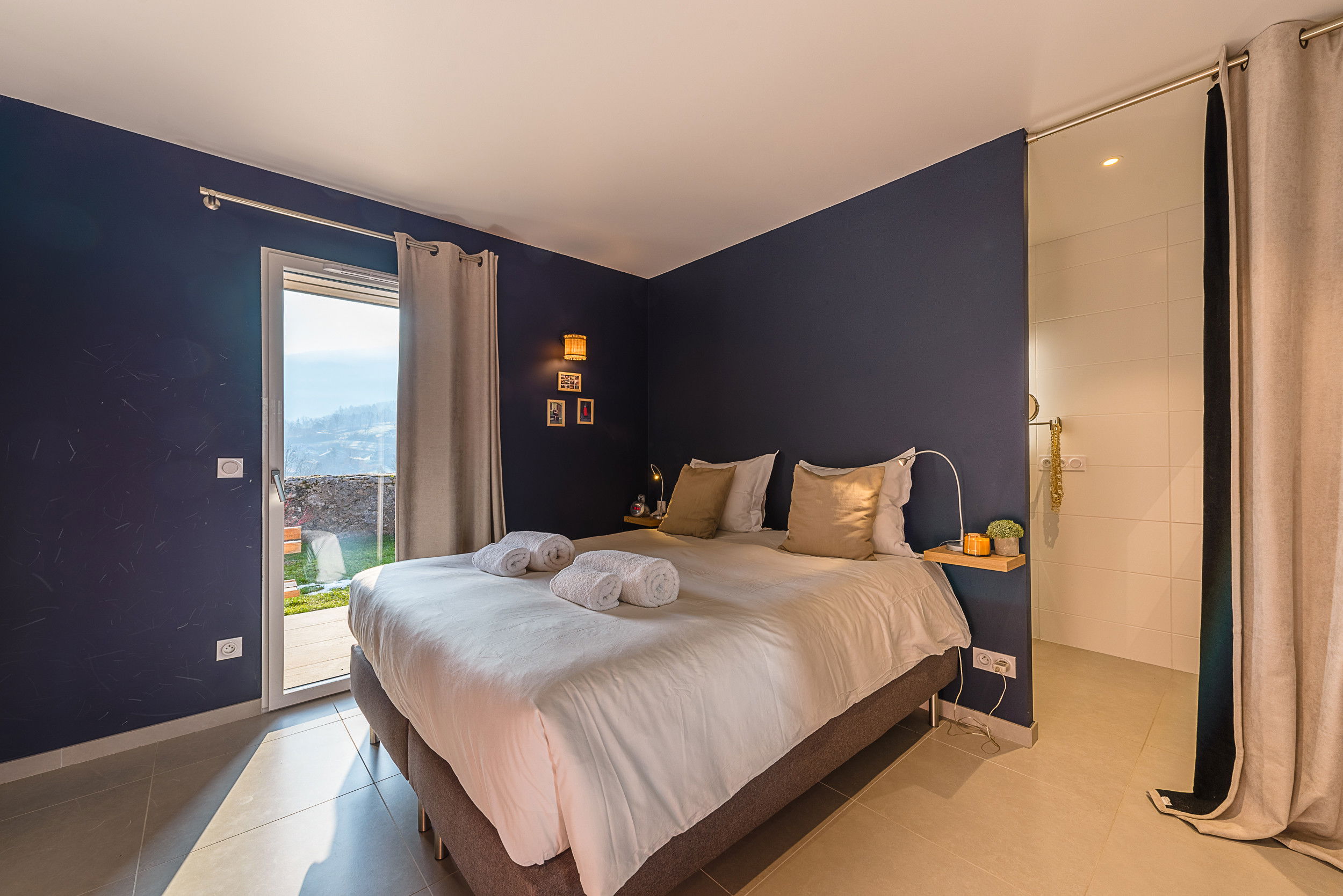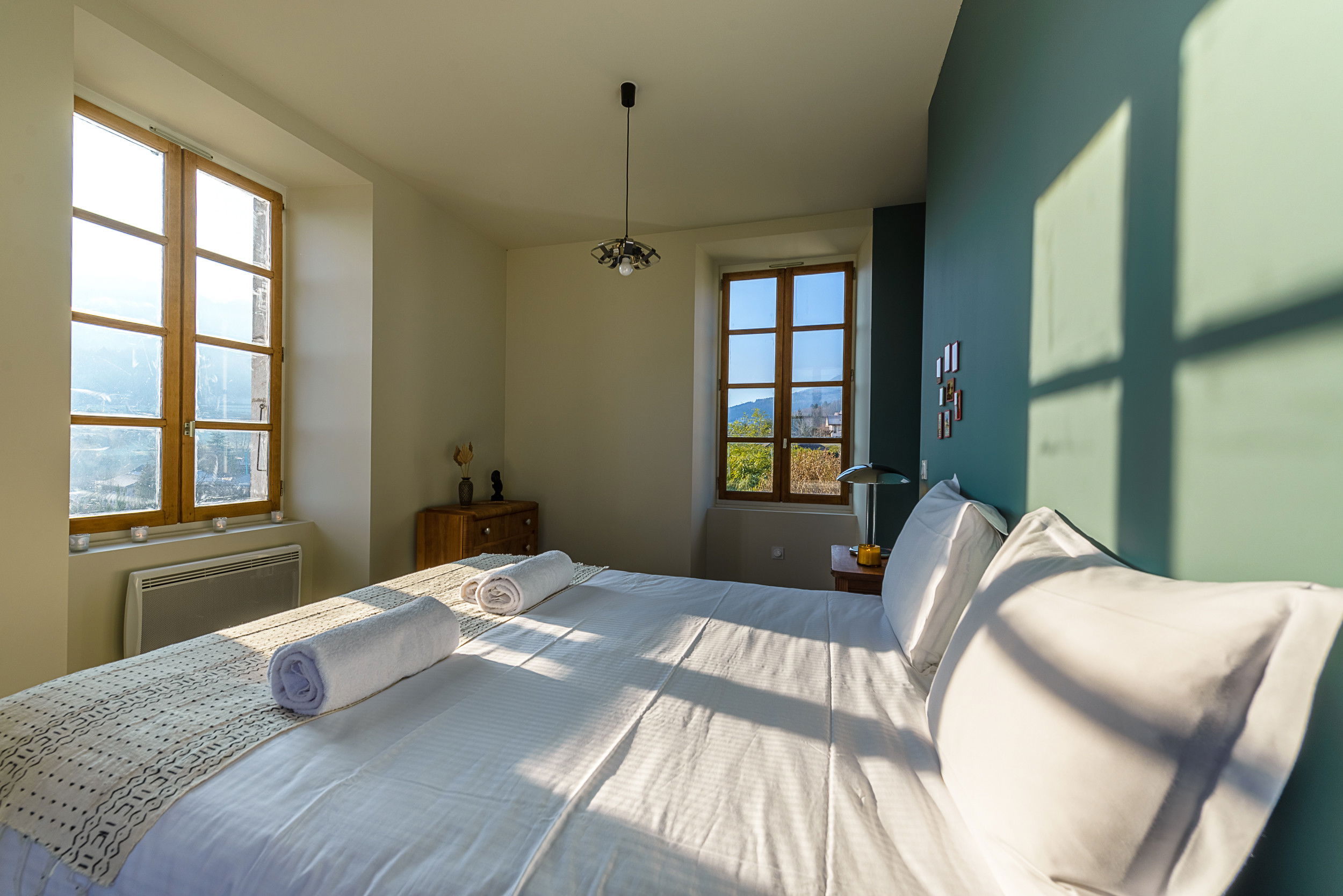 - Bedroom n°2 : double queensize bed (160x200cm) with a superb view of the garden and its surrounding mountains