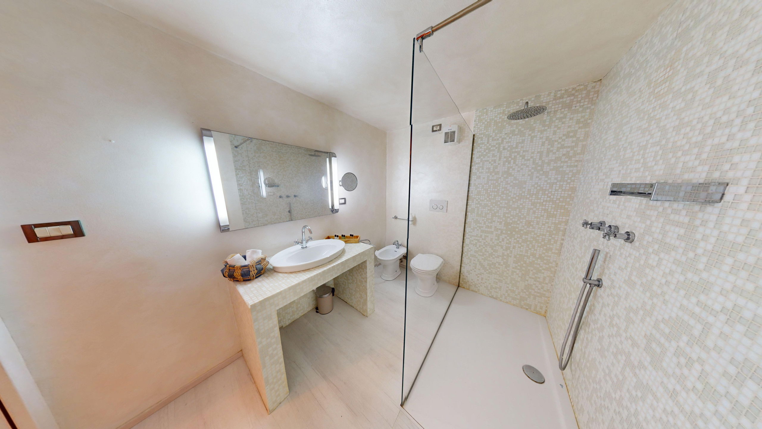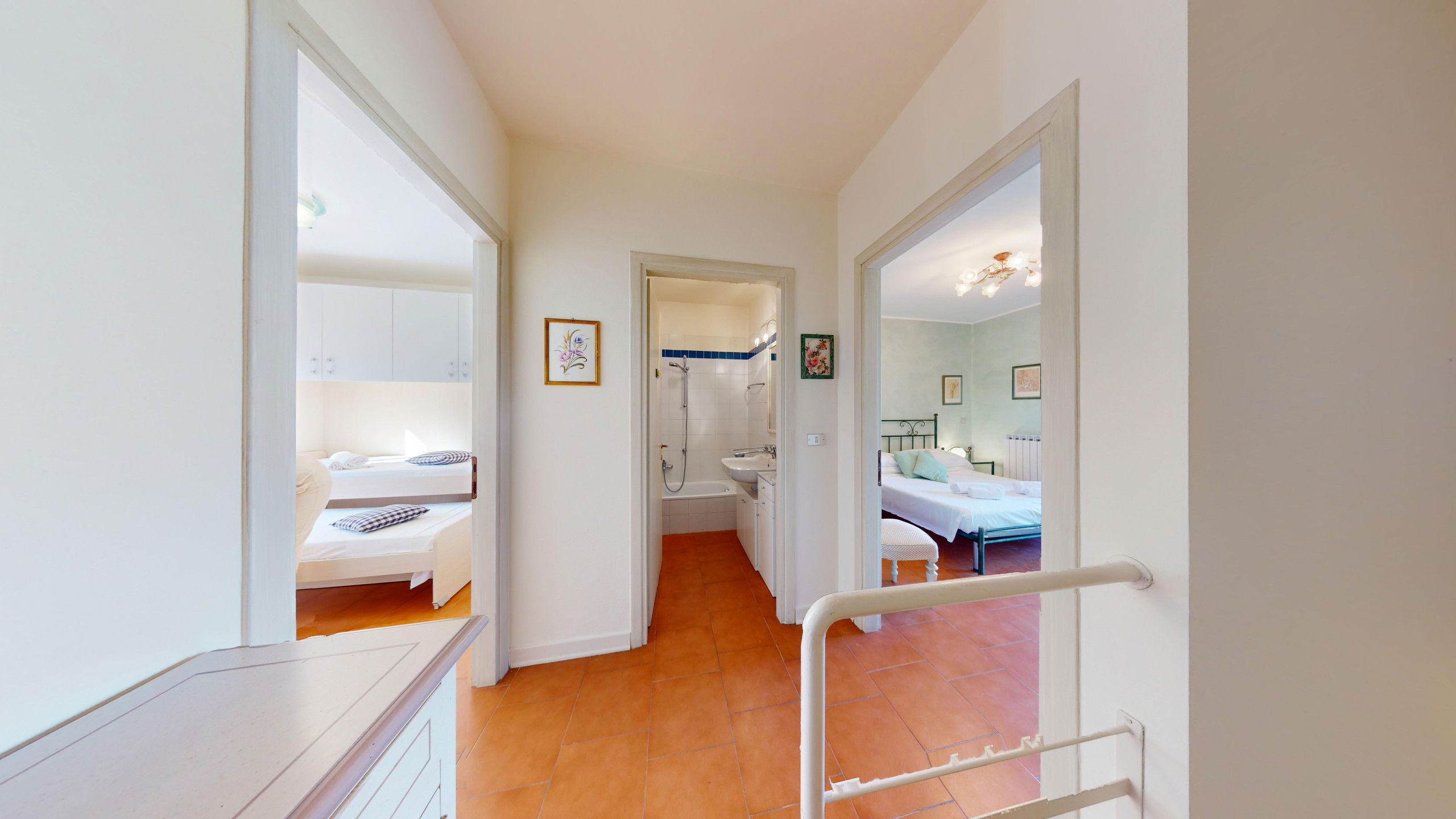 On the second floor there is the sleeping area with a double bedroom for children and a small private balcony overlooking the residence, a bathroom with tub and the double bedroom with a large terrace overlooking the lake.